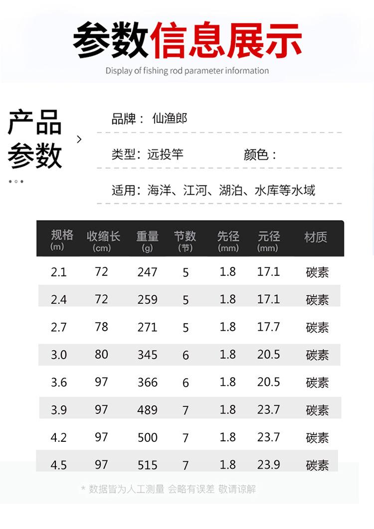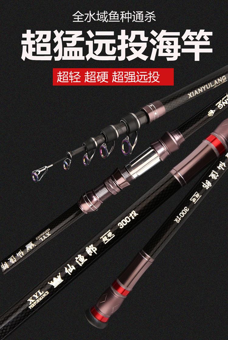 Caña de pescar retráctil al por mayor de fábrica, caña de pescar de carbono de largo alcance, caña de pescar de 2,1 a 4,5 metros, caña grande, equipo de pesca