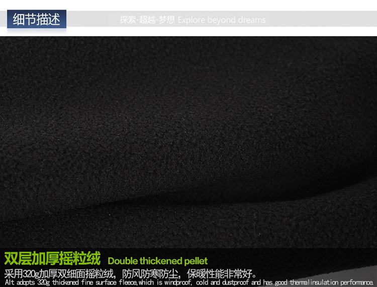 Material del producto: Capa exterior: tejido de seda Baiku de secado rápido Capa interior: tejido polar fino cepillado doble grueso de 320 g