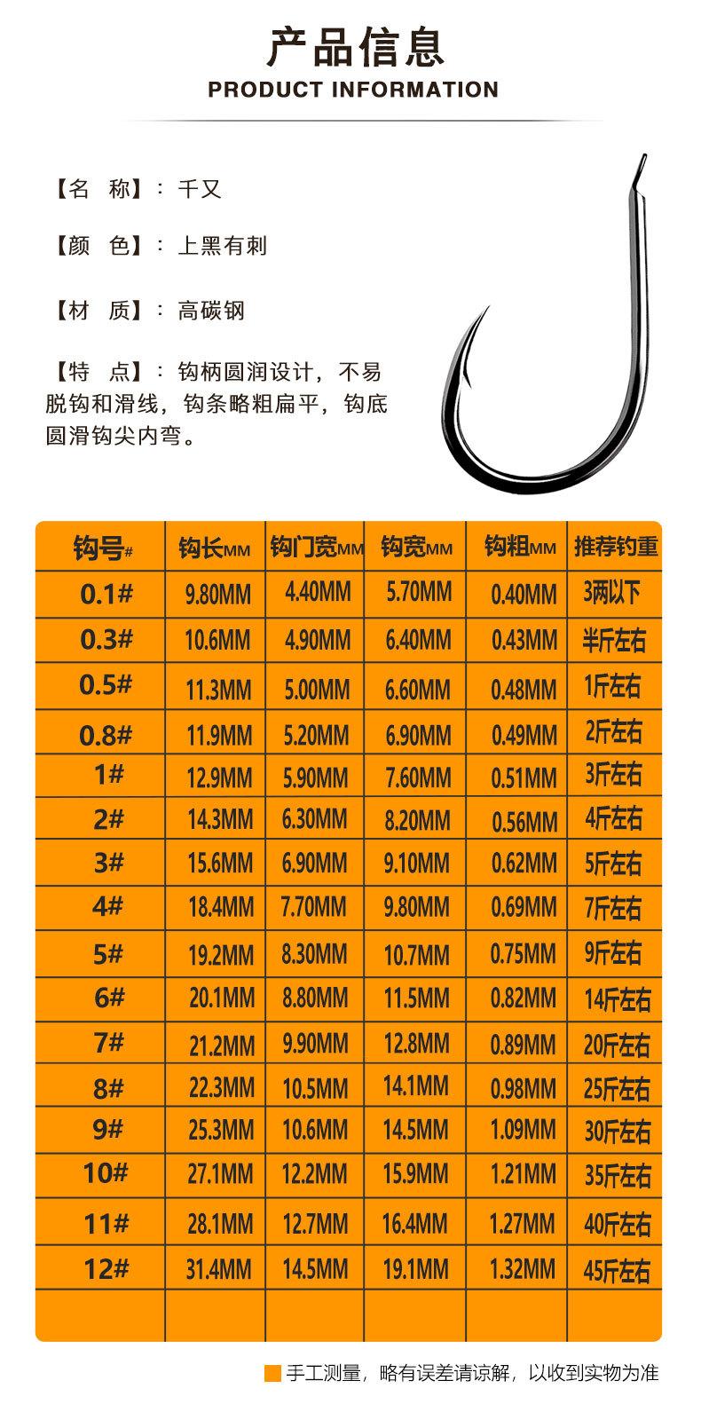 Los anzuelos vienen en diferentes tamaños, formas y grosores. El grosor del anzuelo está relacionado con su tamaño. Normalmente, el tamaño del anzuelo es proporcional a su grosor; es decir, cuanto mayor sea el tamaño, más grueso será y mayor será su resistencia a la tracción. Por el contrario, cuanto menor sea el tamaño del anzuelo, más delgado será y menor será su resistencia a la tracción. Sin embargo, no todos los anzuelos pequeños son delgados y tienen poca resistencia. Sabemos que la fuerza de tracción depende principalmente del material del anzuelo. Cuanto mejor sea la calidad del alambre de acero, mayor será la resistencia a la tracción. Además, un ángulo razonable y científico del anzuelo también puede mejorar su resistencia a la tracción. Tomemos como ejemplo el anzuelo Ise-ni. El grosor de la punta del anzuelo es diferente, lo que hace que el anzuelo grueso y el delgado tengan funciones diferentes. Los anzuelos gruesos se utilizan principalmente para capturar peces más grandes. Por ejemplo, los peces carnívoros feroces como la carpa negra, la carpa herbívora, la carpa común, la carpa plateada y la carpa cabezona en agua dulce, o el besugo negro y el besugo rojo en agua salada, tienden a ser agresivos y poderosos. Si se pescan con anzuelos delgados, es fácil que se enderecen, se rompan y el pez escape. El carpín y el pargo son cautelosos al alimentarse, son pequeños, se resisten poco y tienen bocas pequeñas. El uso de anzuelos delgados puede ser eficaz. Las ventajas de los anzuelos delgados son su buena ocultación, su gran capacidad de perforación y su pequeño tamaño. Pueden usarse para capturar peces astutos en estanques con resultados ideales. Las ventajas de los anzuelos gruesos son su alta resistencia a la tracción y su dificultad para soltarlos después de capturar el pez. La desventaja es su baja capacidad de perforación, lo que puede provocar que los peces se vuelvan cautelosos y afectar la tasa de picadura. No son adecuados para pescar peces más pequeños.