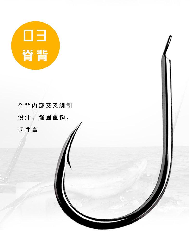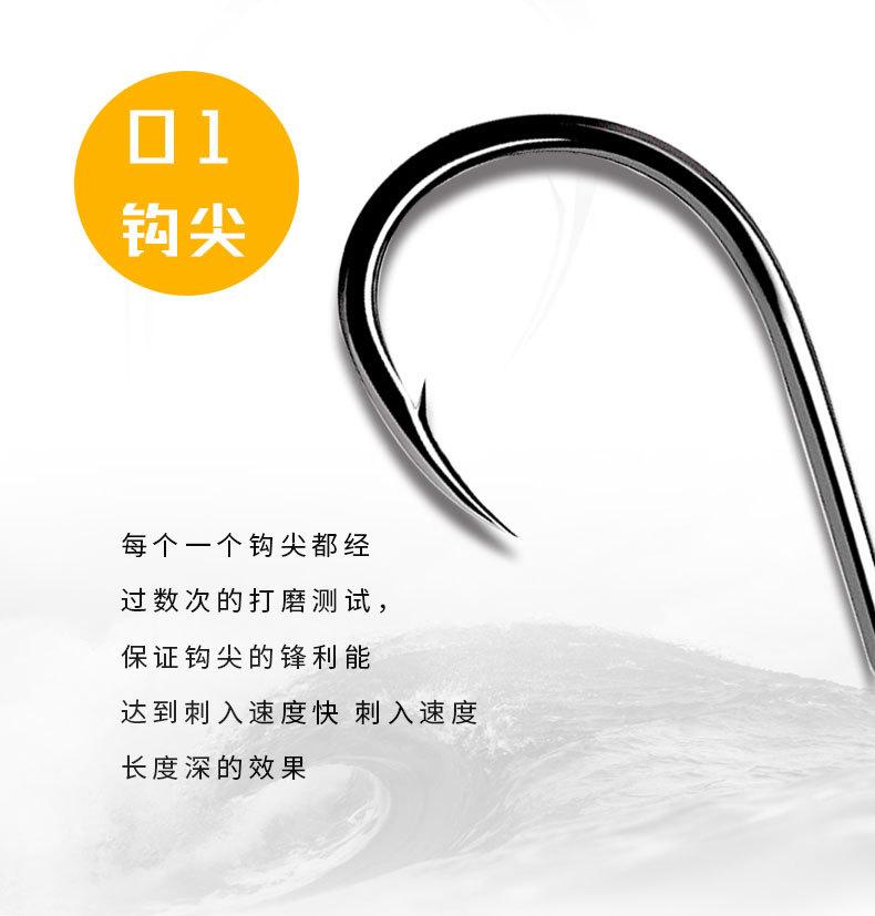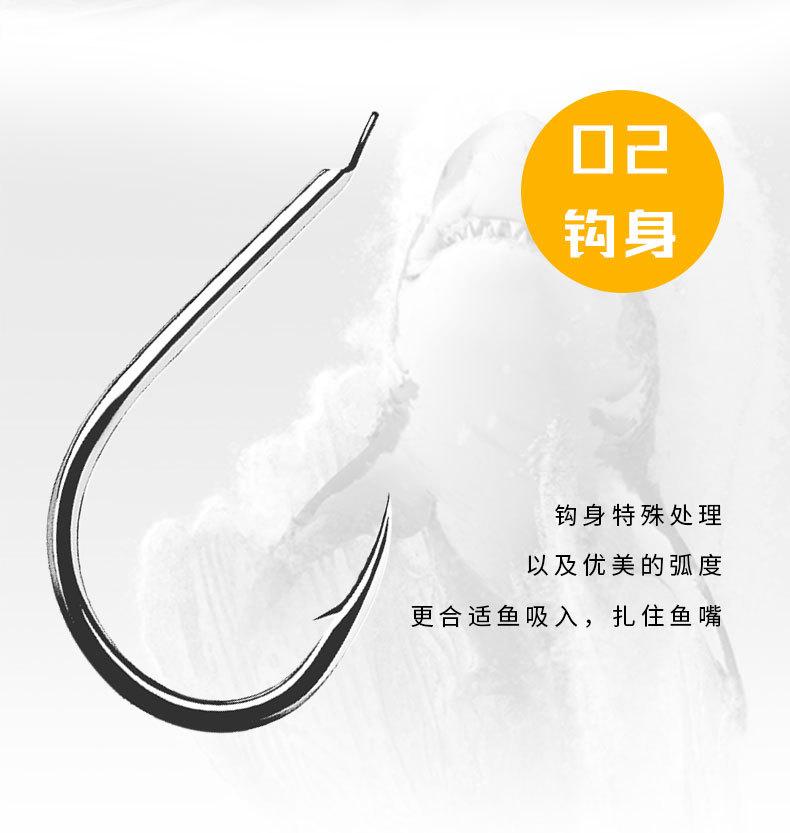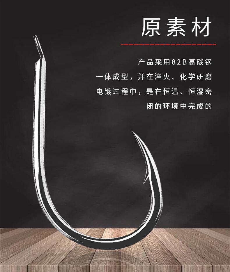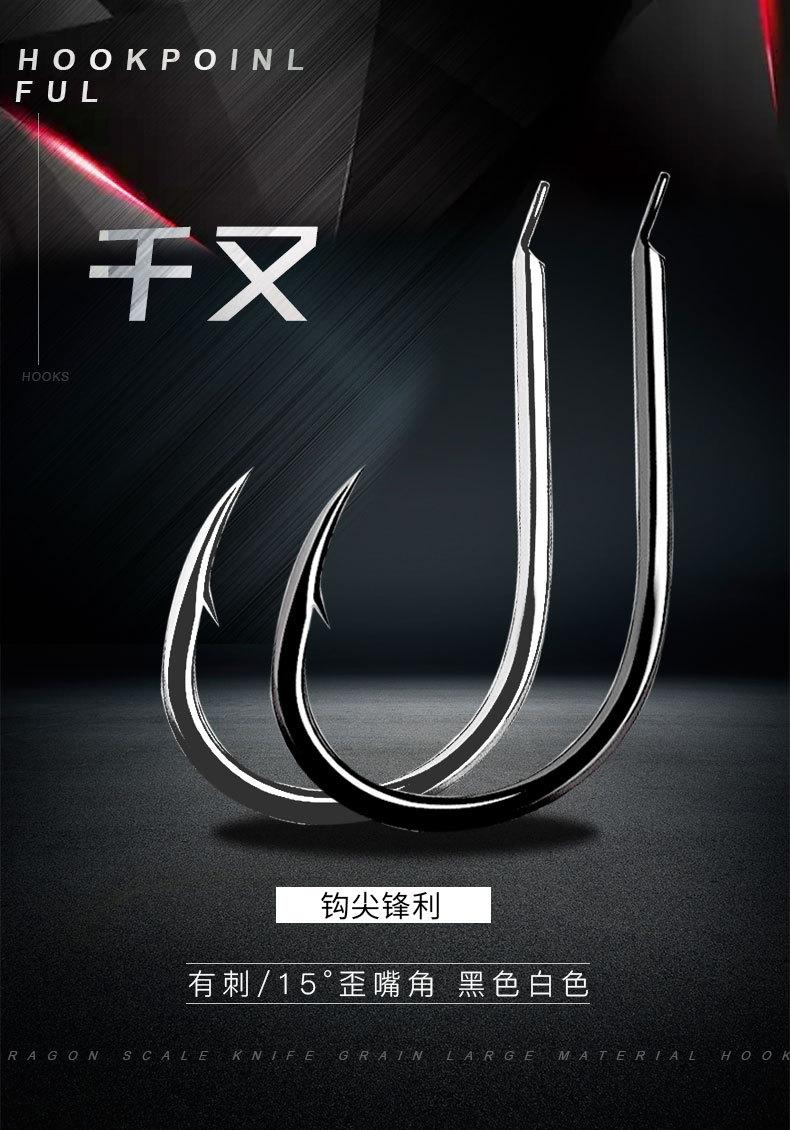 Manga: Este tipo de anzuelo no tiene púas. La punta es afilada, el mango es largo, el anzuelo es delgado y el cuerpo es ligero. Es adecuado para peces pequeños que se alimentan por succión. Es rápido de atrapar y de morder. Se utiliza principalmente para capturar carpas blancas, pequeños peces blancos, etc.