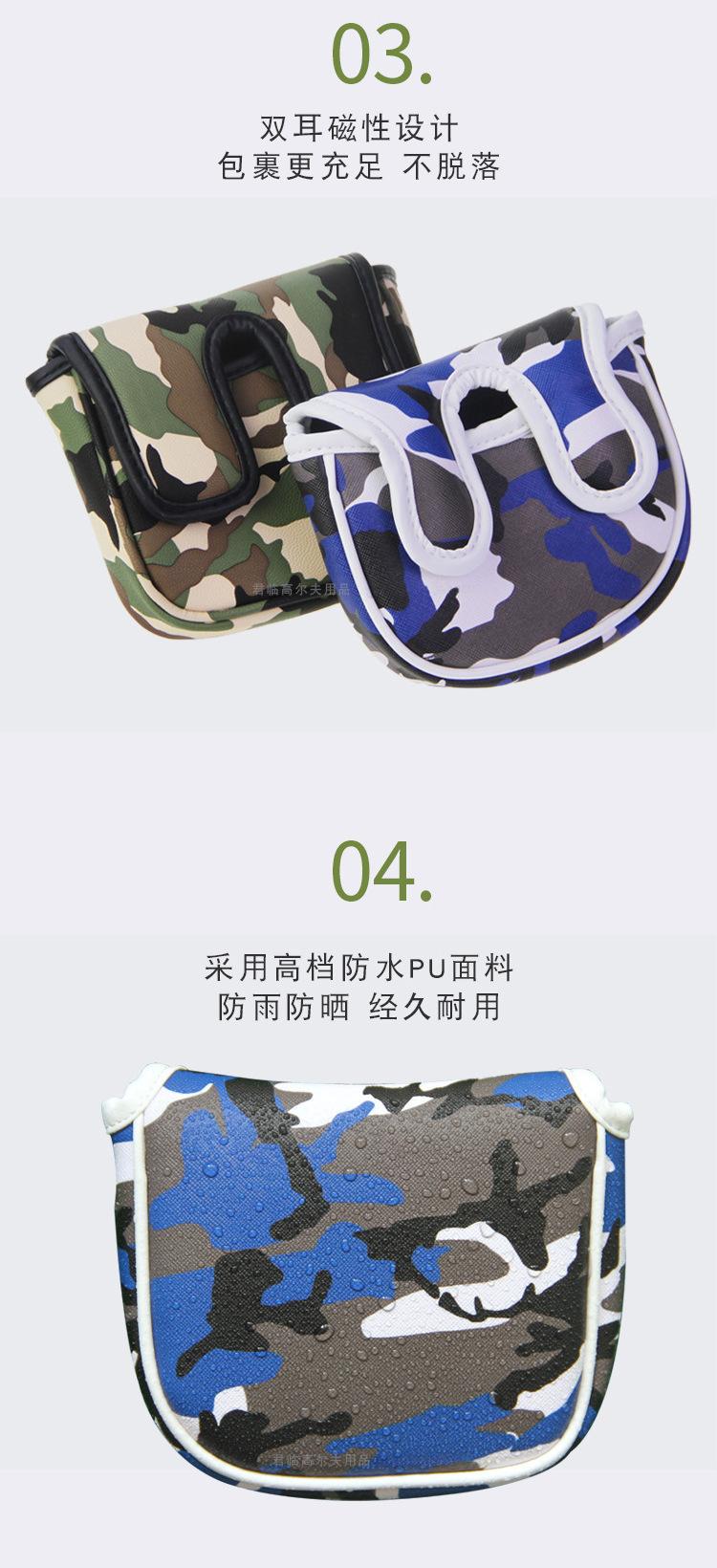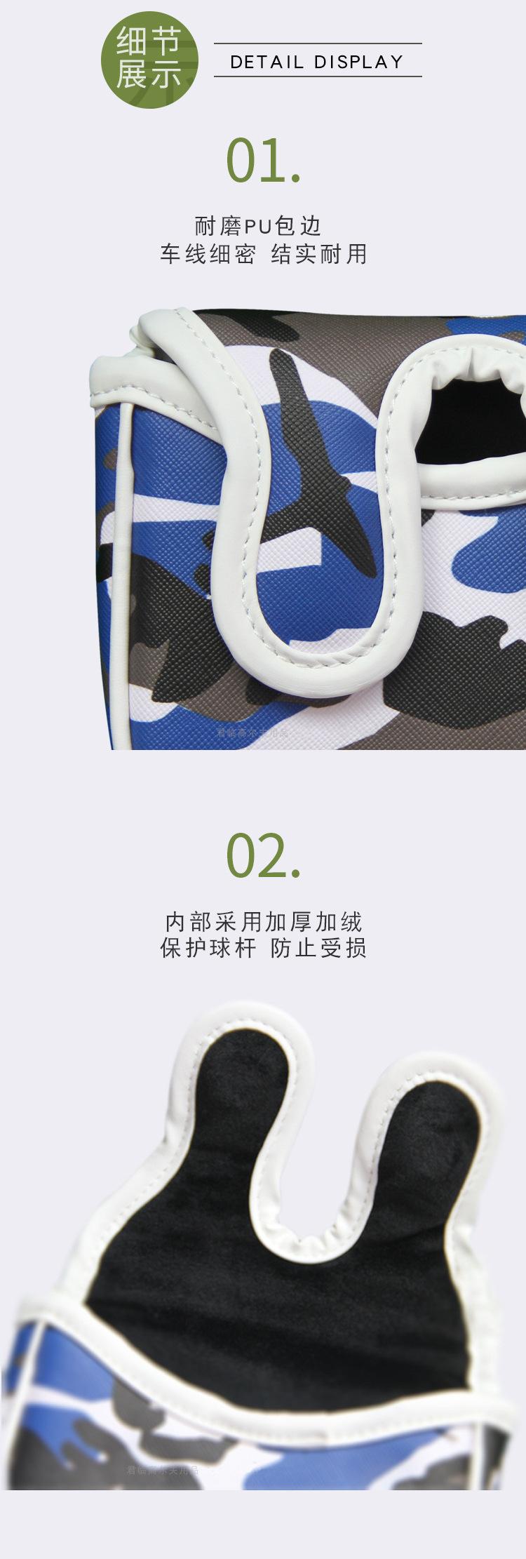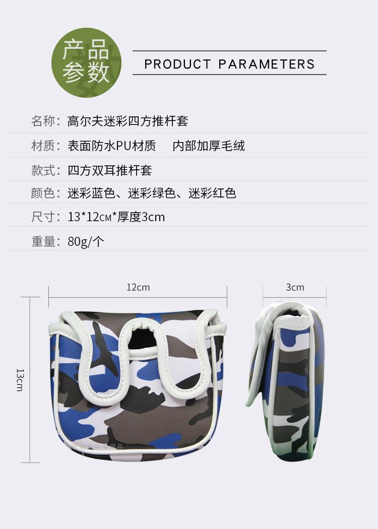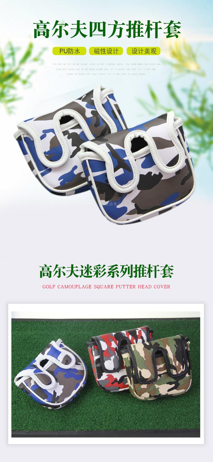 Cubierta cuadrada de empuje para golf PU impermeable protector solar cubierta para varilla de bola con magnético cubierta protectora para varilla de empuje de golf camuflaje azul