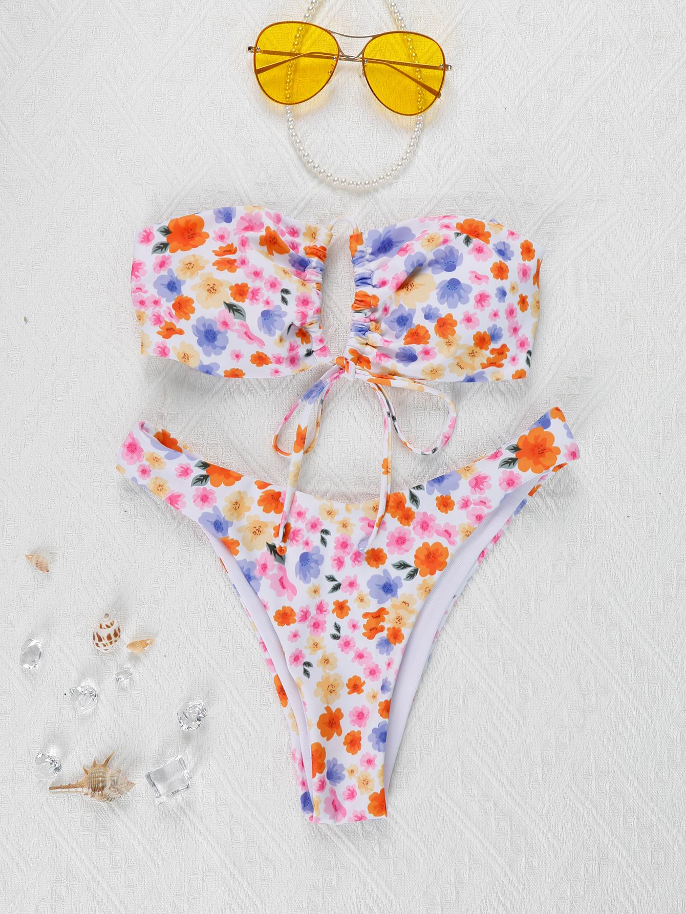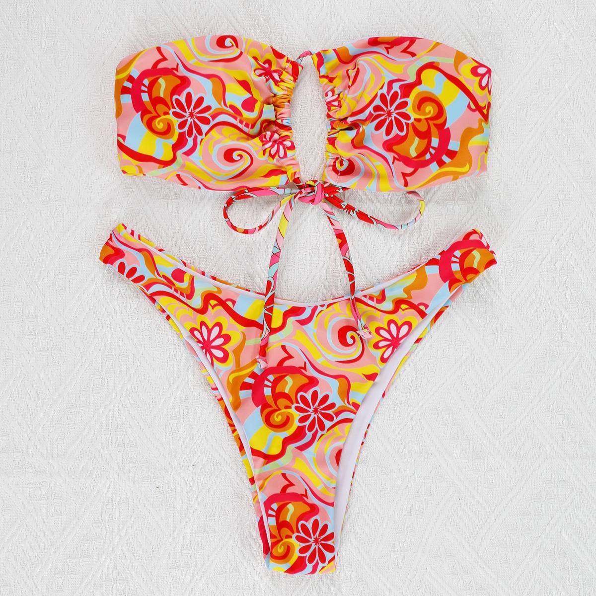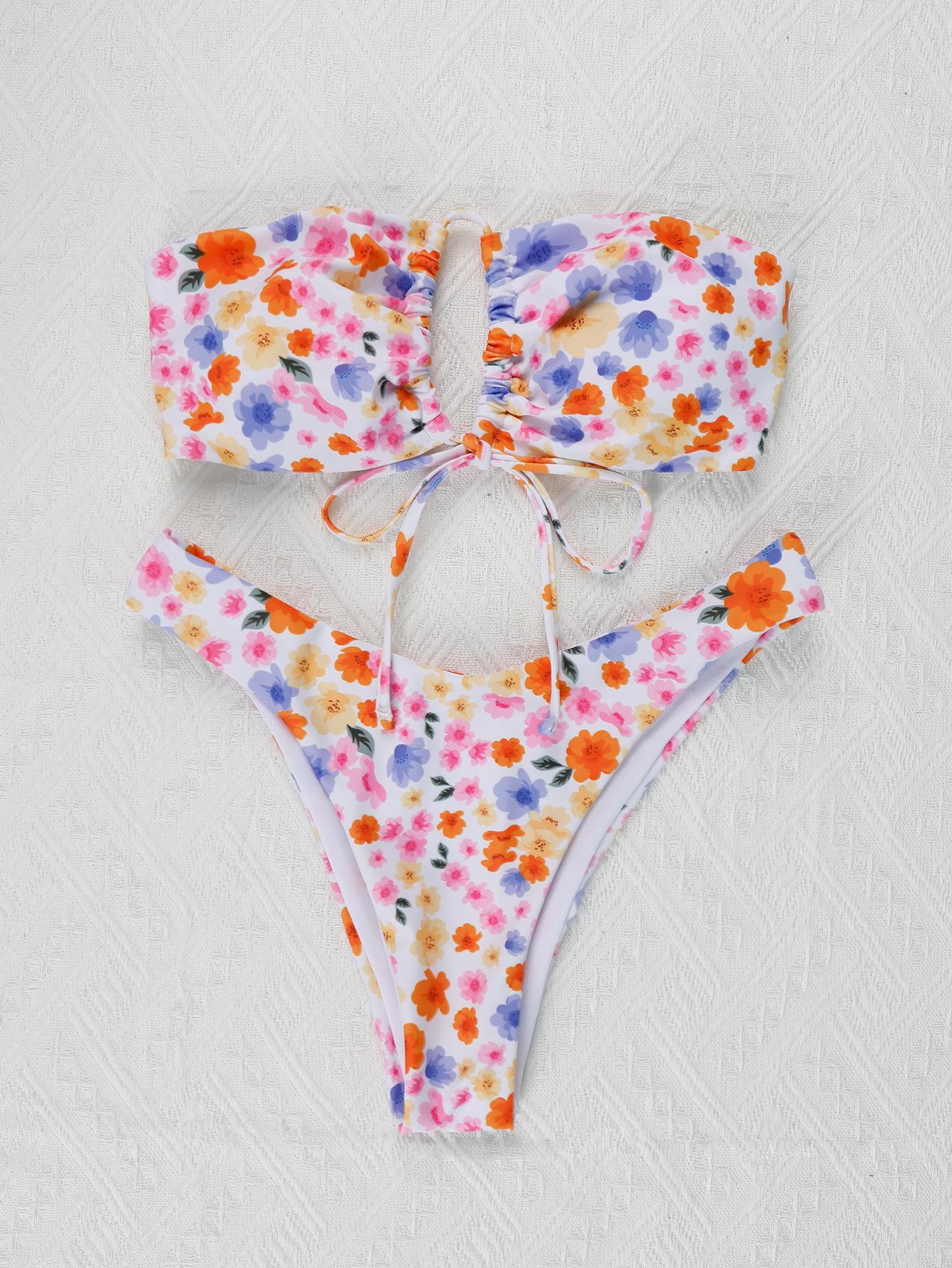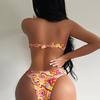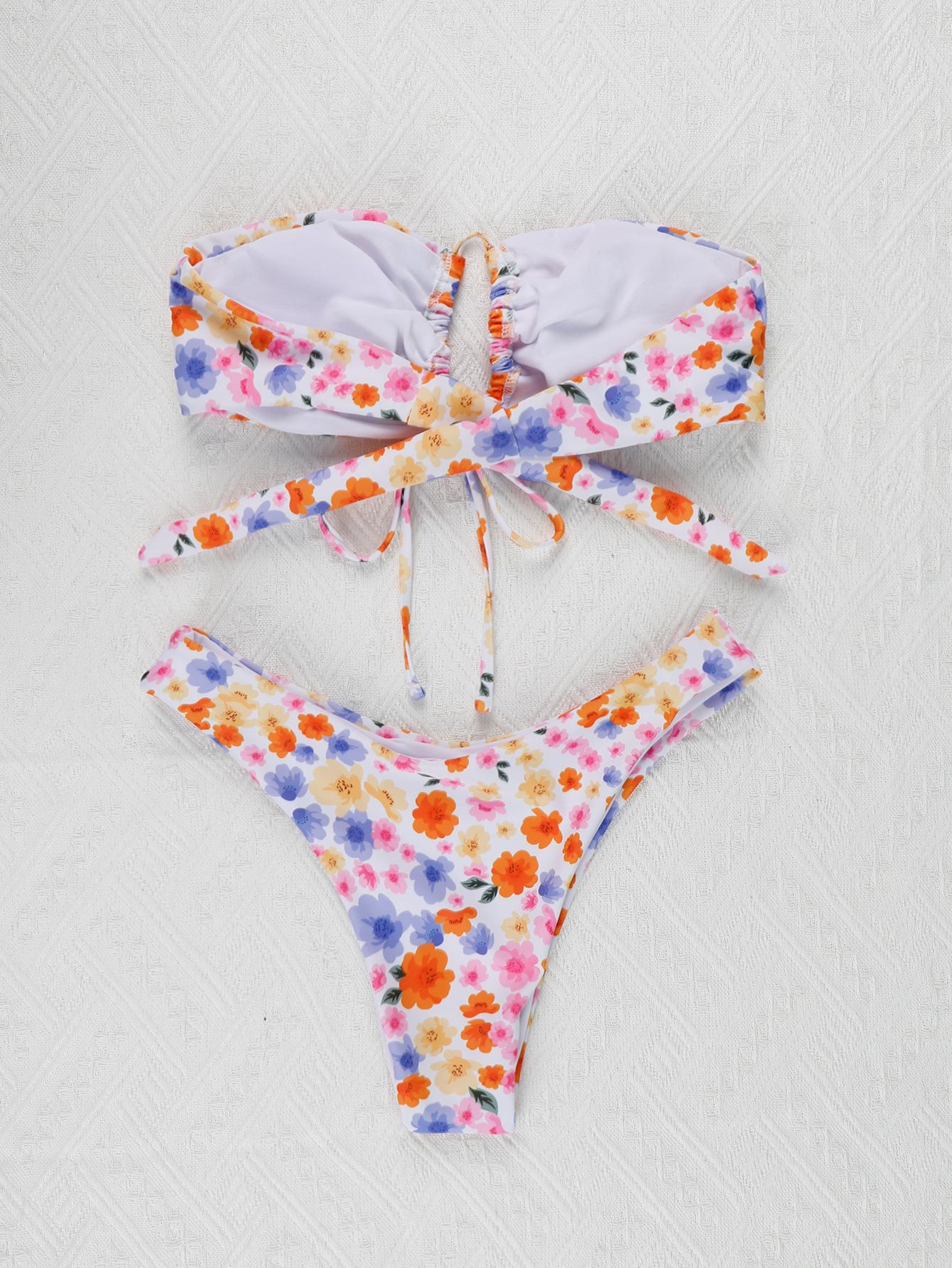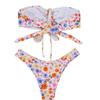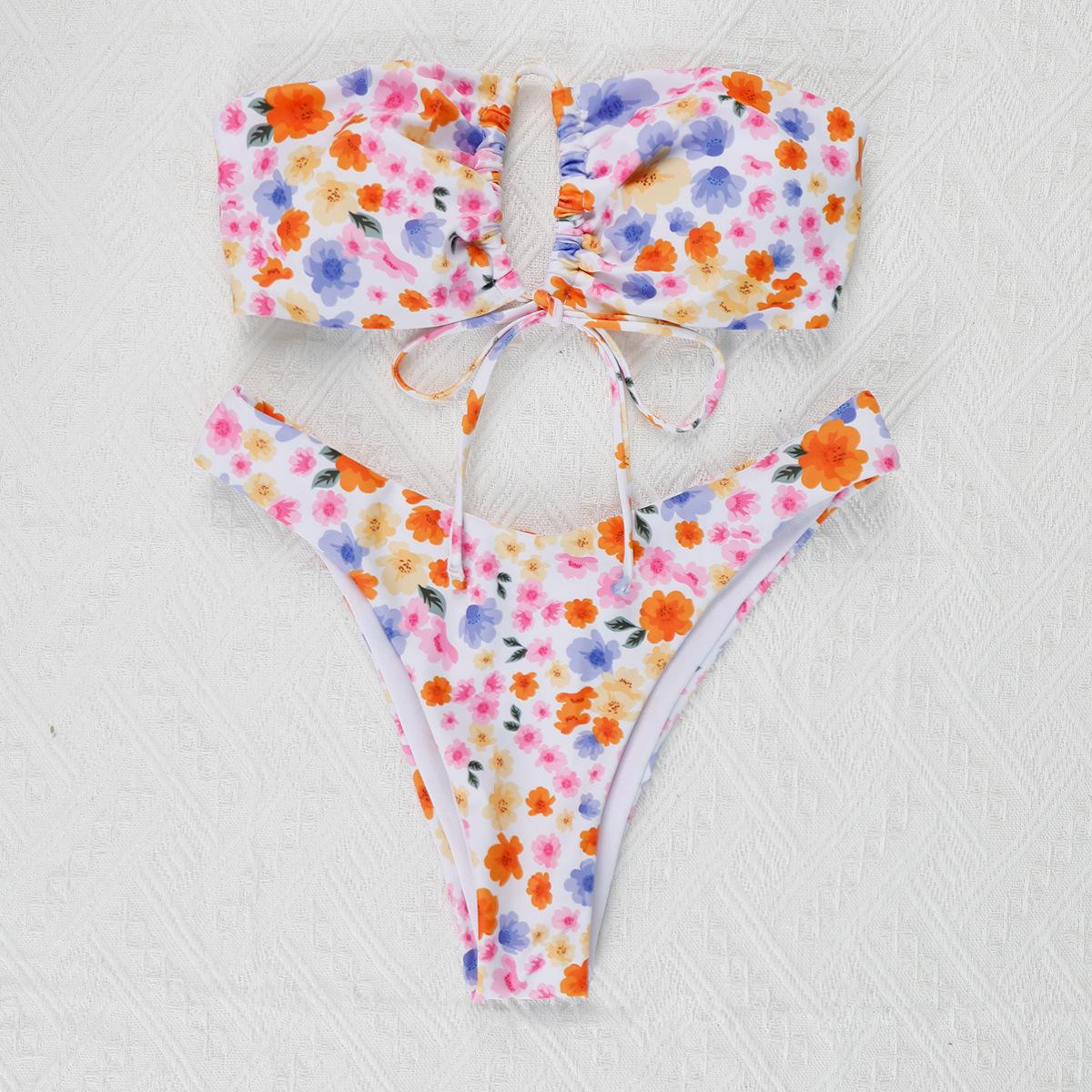 Traje de Baño de Exportación Transfronteriza para Mujer Bikini Floral con Top de Tubo Espalda Descubierta con Cordones Traje de Baño Dividido Traje de Baño Venta al por Mayor