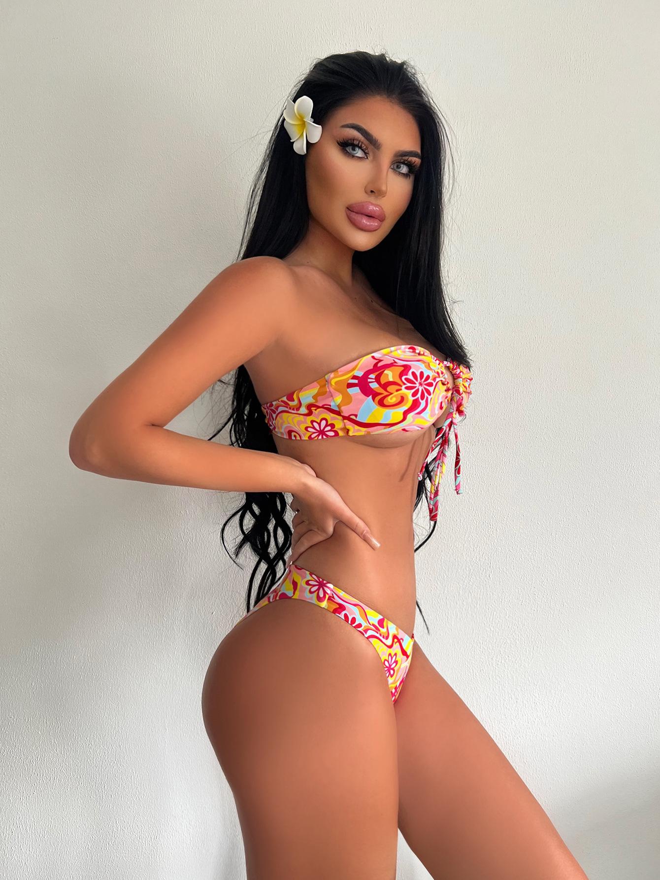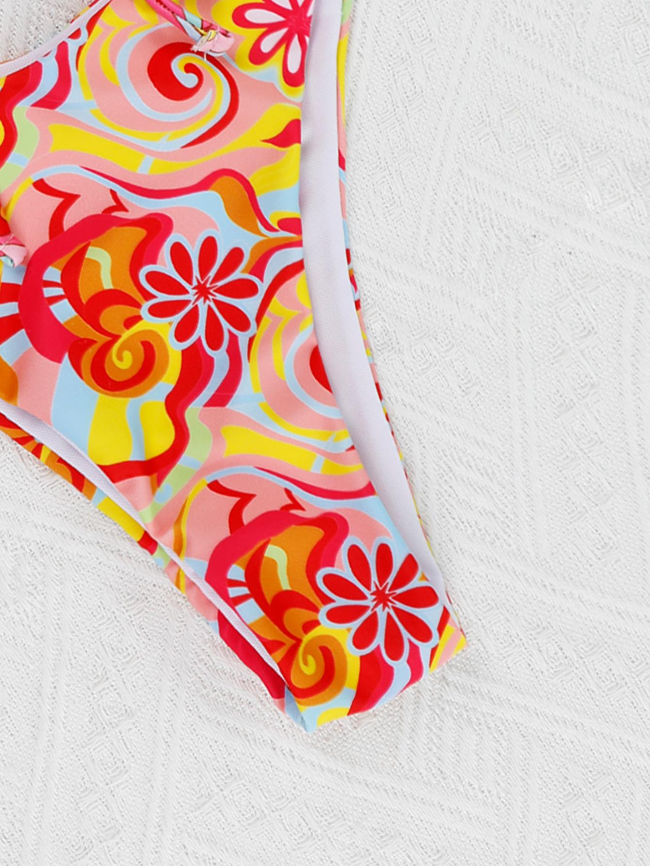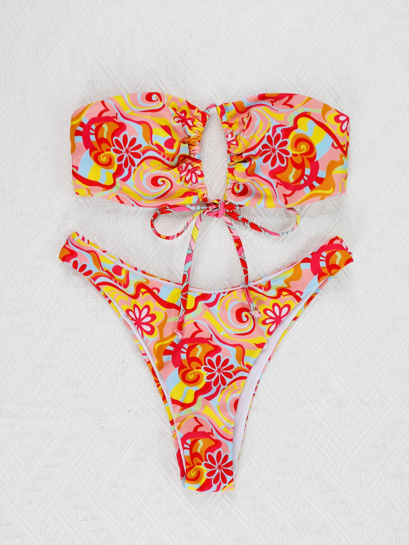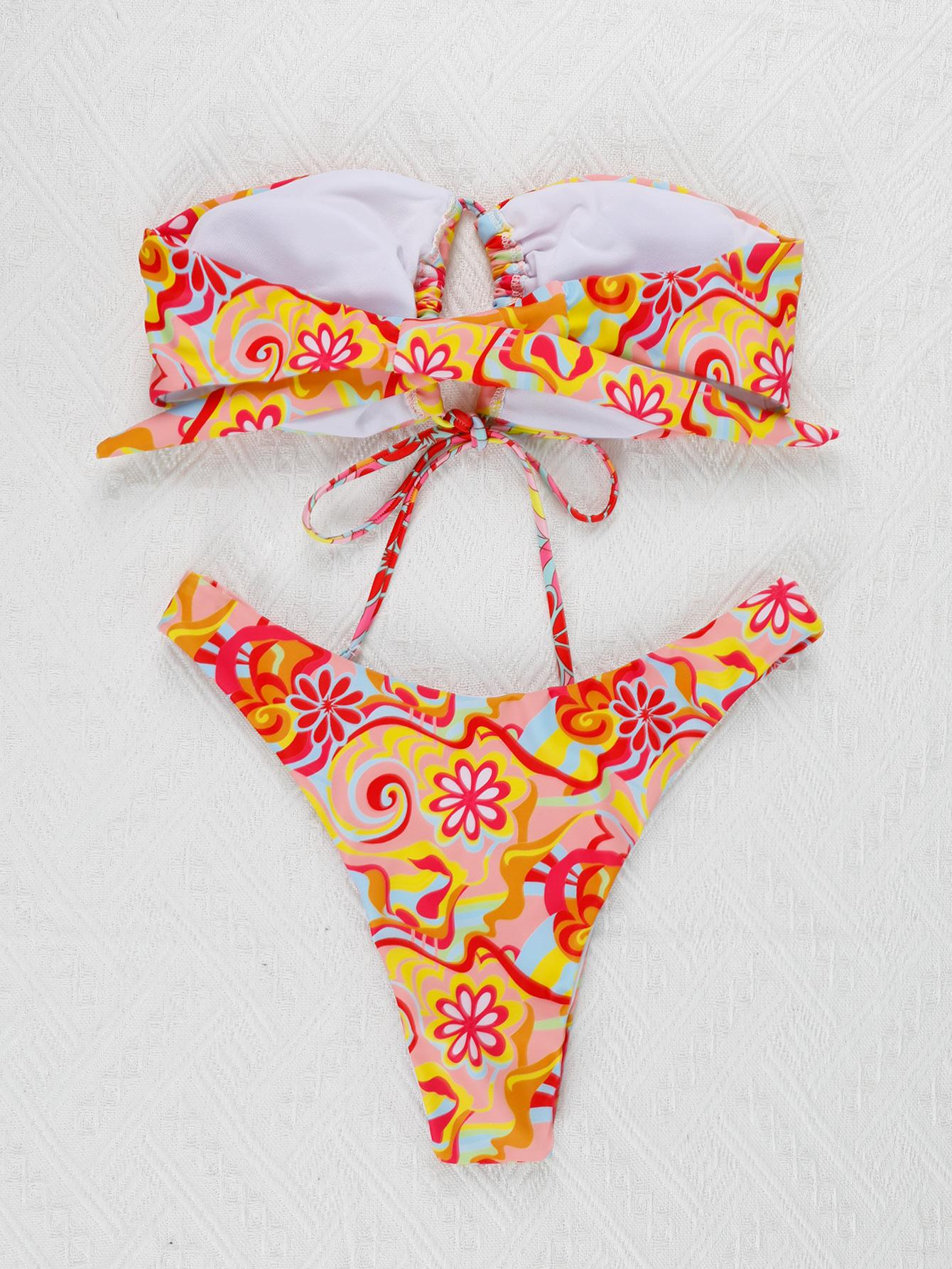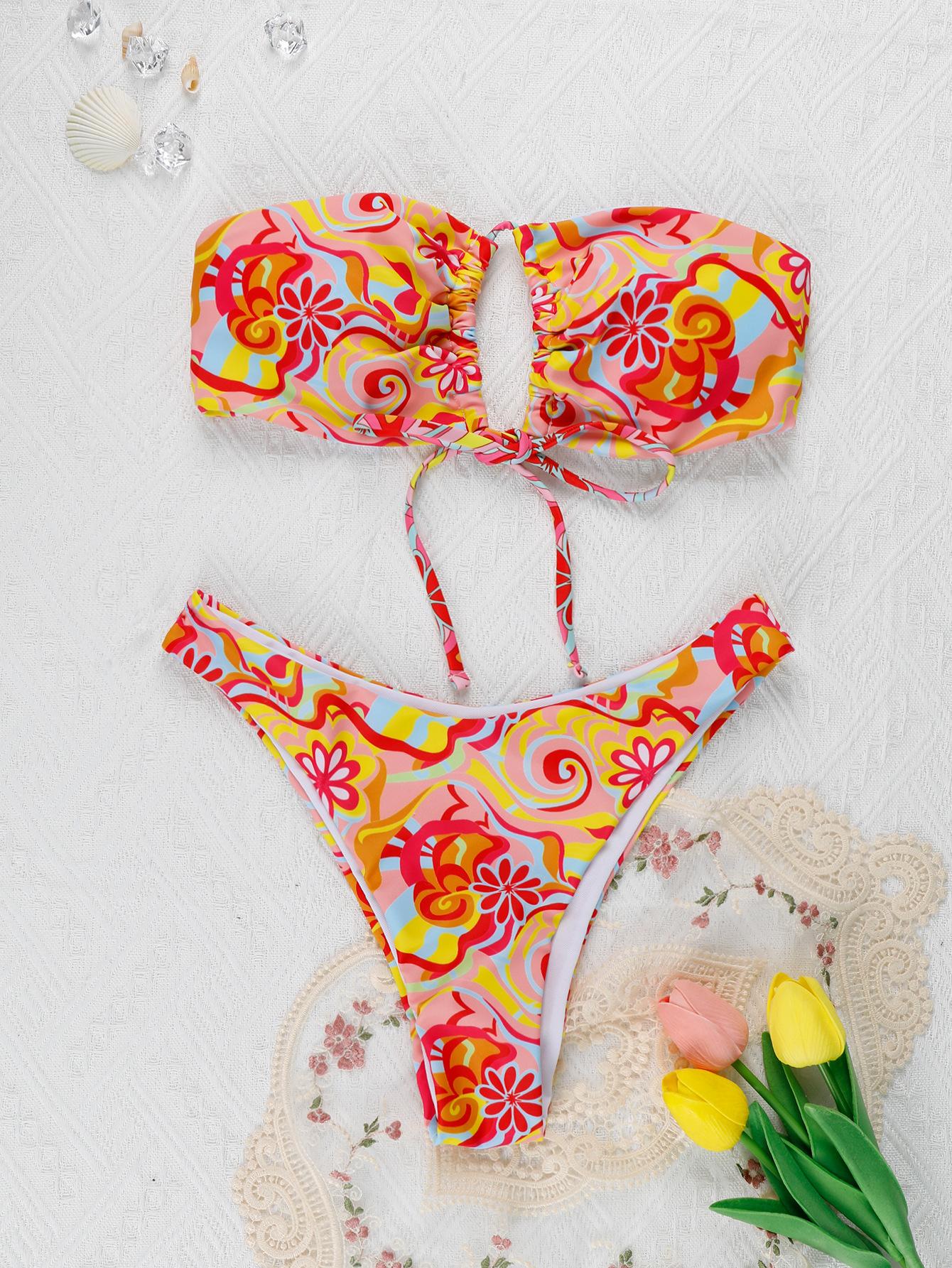 Traje de Baño de Exportación Transfronteriza para Mujer Bikini Floral con Top de Tubo Espalda Descubierta con Cordones Traje de Baño Dividido Traje de Baño Venta al por Mayor