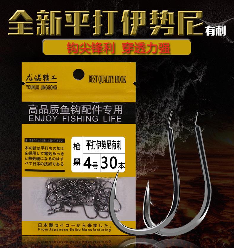Los anzuelos vienen en diferentes tamaños, formas y grosores. El grosor del anzuelo está relacionado con su tamaño. Normalmente, el tamaño del anzuelo es proporcional a su grosor; es decir, cuanto mayor sea el tamaño, más grueso será y mayor será su resistencia a la tracción. Por el contrario, cuanto menor sea el tamaño del anzuelo, más delgado será y menor será su resistencia a la tracción. Sin embargo, no todos los anzuelos pequeños son delgados y tienen poca resistencia. Sabemos que la fuerza de tracción depende principalmente del material del anzuelo. Cuanto mejor sea la calidad del alambre de acero, mayor será la resistencia a la tracción. Además, un ángulo razonable y científico del anzuelo también puede mejorar su resistencia a la tracción. Tomemos como ejemplo el anzuelo Ise-ni. El grosor de la punta del anzuelo es diferente, lo que hace que el anzuelo grueso y el delgado tengan funciones diferentes. Los anzuelos gruesos se utilizan principalmente para capturar peces más grandes. Por ejemplo, los peces carnívoros feroces como la carpa negra, la carpa herbívora, la carpa común, la carpa plateada y la carpa cabezona en agua dulce, o el besugo negro y el besugo rojo en agua salada, tienden a ser agresivos y poderosos. Si se pescan con anzuelos delgados, es fácil que se enderecen, se rompan y el pez escape. El carpín y el pargo son cautelosos al alimentarse, son pequeños, se resisten poco y tienen bocas pequeñas. El uso de anzuelos delgados puede ser eficaz. Las ventajas de los anzuelos delgados son su buena ocultación, su gran capacidad de perforación y su pequeño tamaño. Pueden usarse para capturar peces astutos en estanques con resultados ideales. Las ventajas de los anzuelos gruesos son su alta resistencia a la tracción y su dificultad para soltarlos después de capturar el pez. La desventaja es su baja capacidad de perforación, lo que puede provocar que los peces se vuelvan cautelosos y afectar la tasa de picadura. No son adecuados para pescar peces más pequeños.