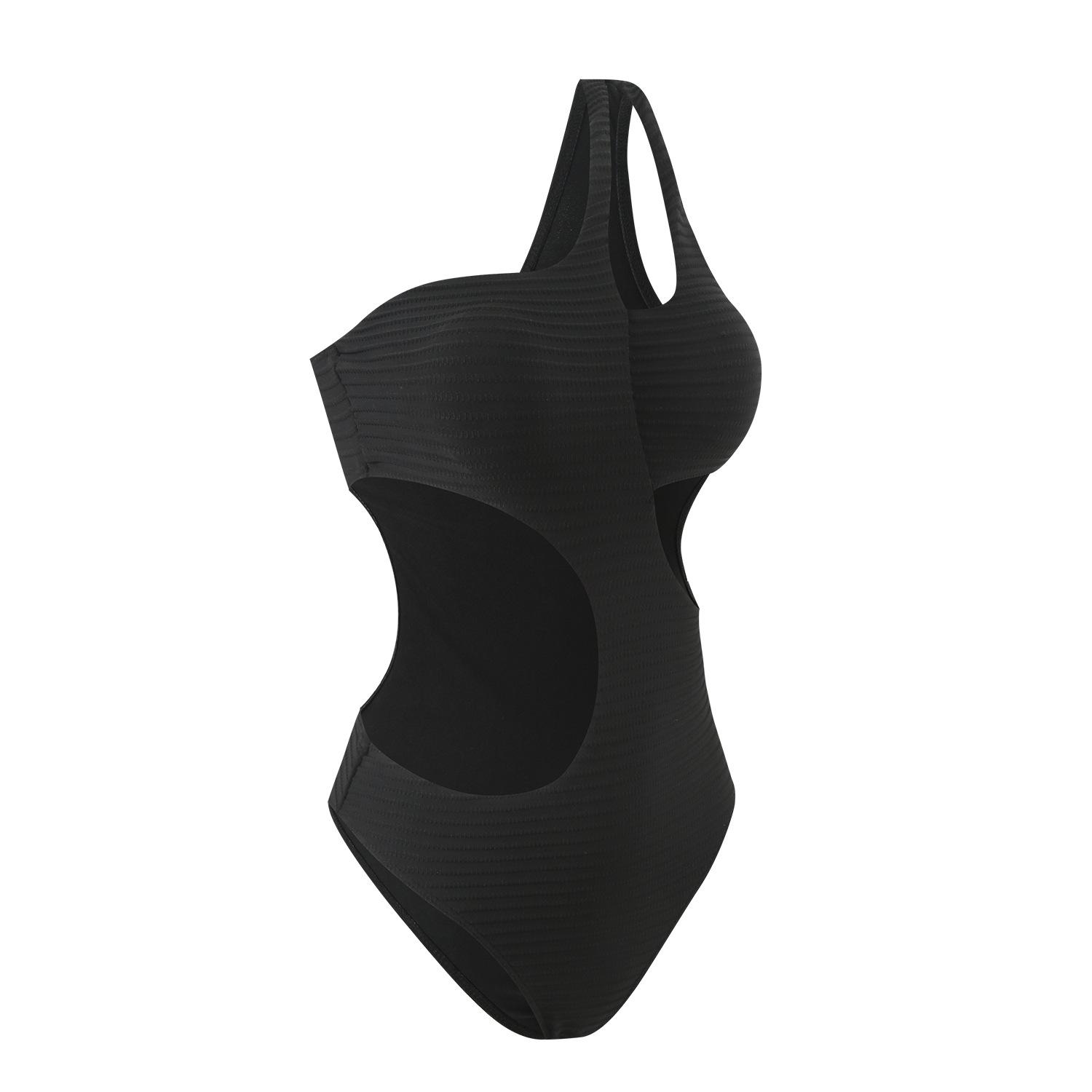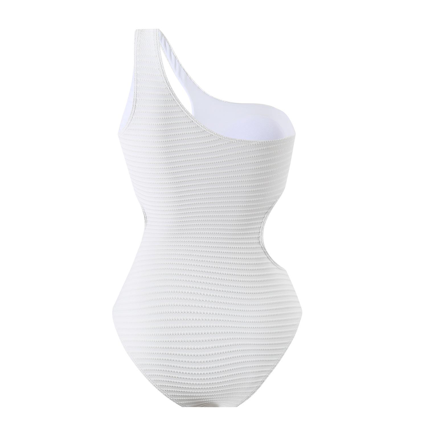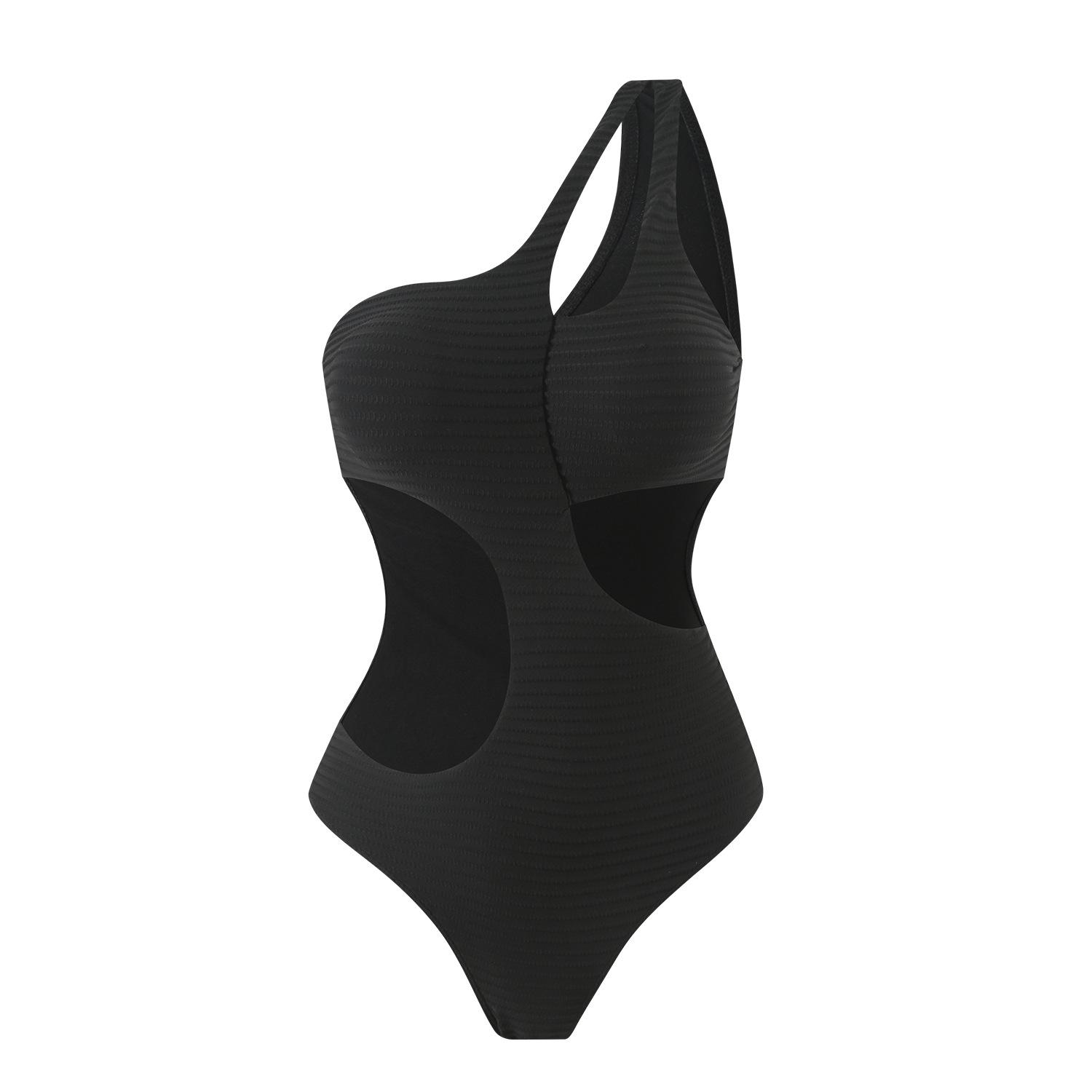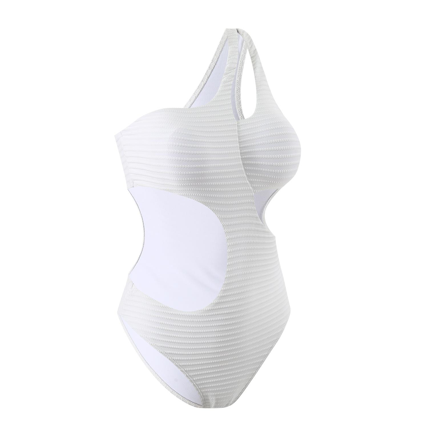 Traje de Baño Bikini Entero Sexy de Un Hombro con Recortes de Color Puro Nuevo Europeo y Americano 2025 Exportación Transfronteriza