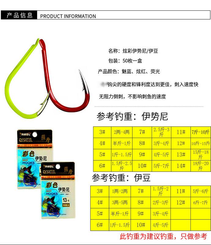 Samo Colorfulful Blue Iseni Hook Izu Maru Tiene Anzuelo de Pesca a Granel con Rebaba Anzuelo con Rebaba Afilado Carpa para Pesca Nocturna