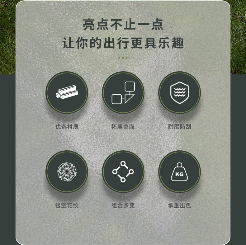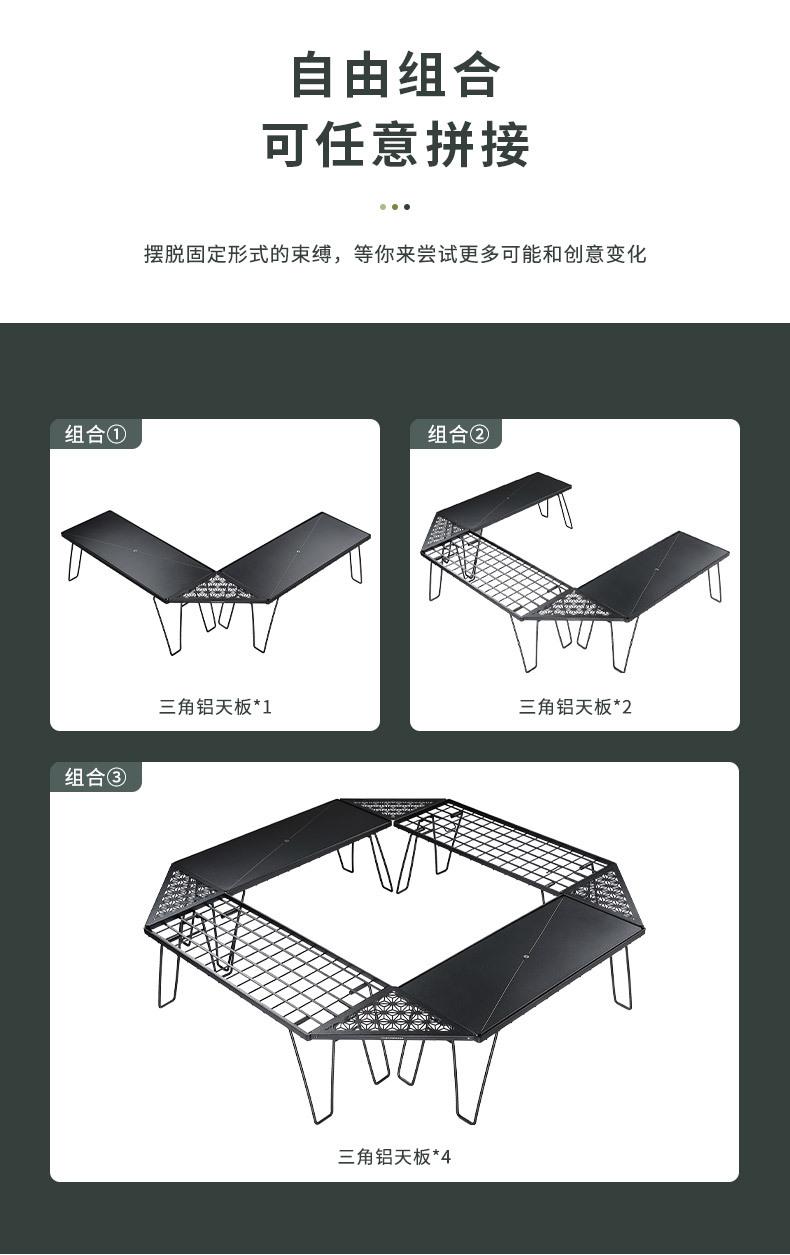 Koman Serie T-229 Aleación de Aluminio Recortado Estilo Camping Mesa Portátil para Exterior Plegable Accesorios Mesa Placa Triangular Cielo