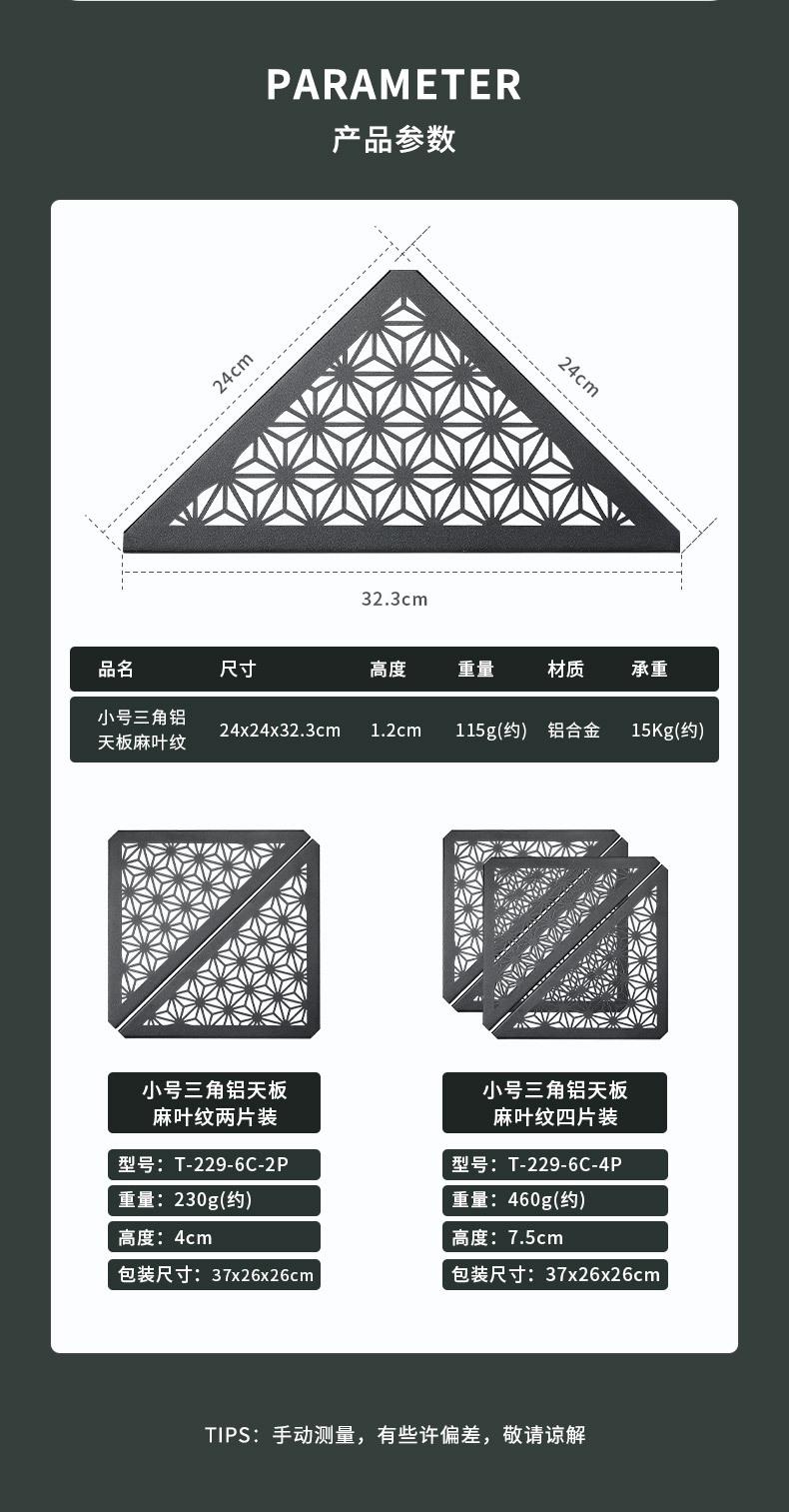 [T-229-6C-2P] Small size triangle aluminum skyboard hemp leaf pattern two pieces, [T-229-6C-4P] Small size tri...