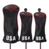 Funda de palo de madera de golf bordado de EE. UU. con mapa Funda de palo No. 1 funda protectora de madera para cabeza de pértiga 3/5 PU impermeable 3 pz/set