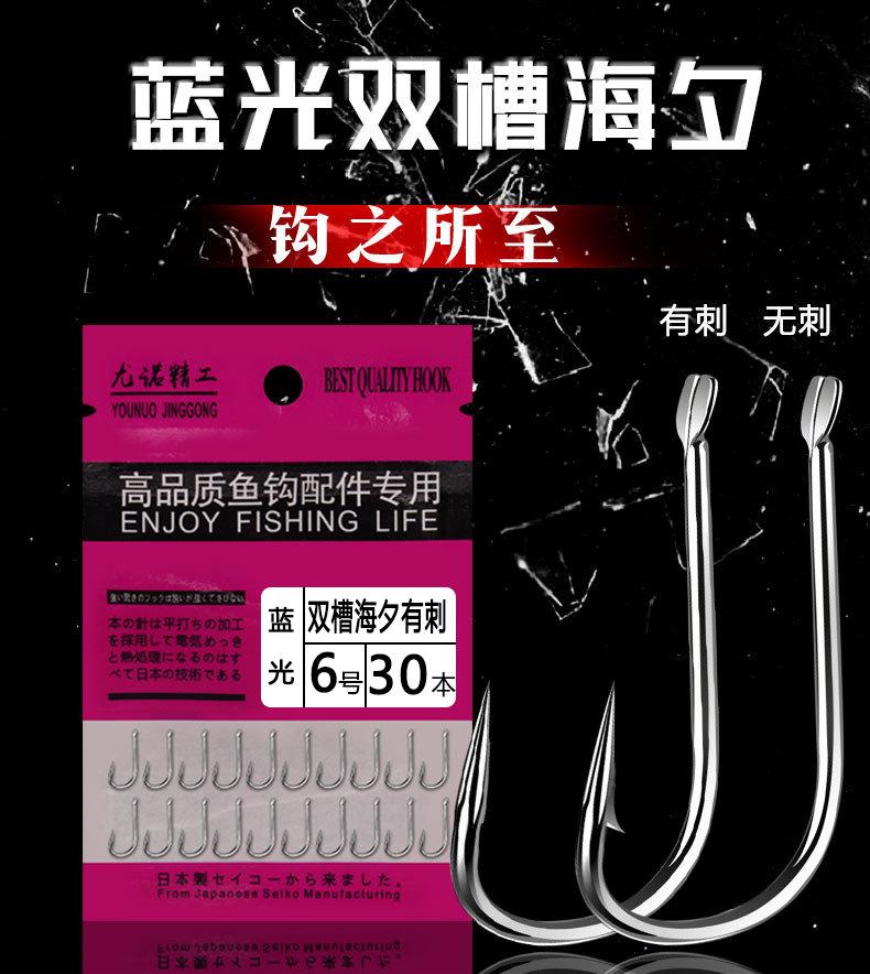 En estanques, lagos y embalses, se suelen utilizar anzuelos de bomba, combinados y de cuerda. Los anzuelos tipo Ise son los más comunes, al igual que los negros. Puede elegir anzuelos tipo Ise 7-12 según sus necesidades. También puede utilizar anzuelos tipo Stream 5-8. Por supuesto, si se utilizan correctamente los anzuelos más pequeños, la tasa de captura es mayor que con los anzuelos grandes. En la pesca marina, se suelen utilizar anzuelos grandes de mango largo. Dado que la mayoría de los peces marinos son carnívoros, cuando los depredadores comen el cebo con ferocidad, a menudo se tragan el cebo y el anzuelo juntos, lo que dificulta la pesca y la extracción del anzuelo. Por lo tanto, se recomienda utilizar anzuelos de pico de grúa de mango largo, como los Changhai n.º 312-315, Marusei n.º 12-17, etc.