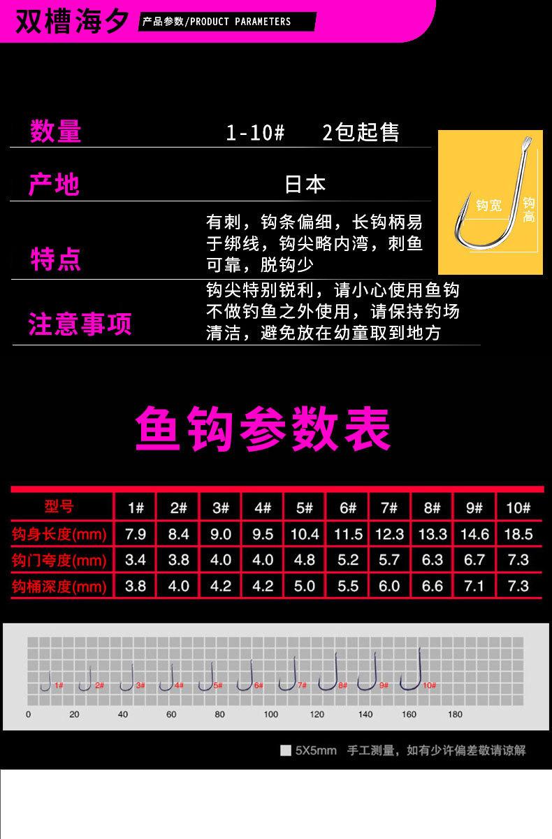 Los tipos representativos de anzuelos de mango corto incluyen los de forma Maru, Ise-ni, Maru-sode y Turtle, etc. Se utilizan principalmente para pescar en aguas poco profundas, en zonas de pesca con una profundidad de agua de 2 metros o menos. Dado que la tasa de mordida de los anzuelos de mango corto es mayor que la de los anzuelos de mango largo, se utilizan en una gama más amplia. Muchos pescadores los reprocesan y sueldan un anzuelo (anzuelo ascendente) con una ranura para atar la línea en el ojo del anzuelo para pescar peces de agua dulce. La diferencia entre los anzuelos de mango largo y los de mango corto es que los primeros se utilizan principalmente para pescar peces de aguas profundas, como carpas, carpas negras y carpas herbívoras. Los segundos se utilizan principalmente para pescar carpas crucianas, doradas y sargos en aguas poco profundas, etc.