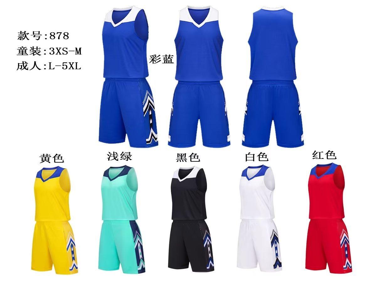 Traje de baloncesto 878, ropa para adultos y niños, uniforme de equipo estampado para hombres con bolsillos en ambos lados, tallas 3XS-5XL