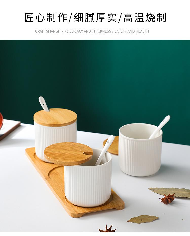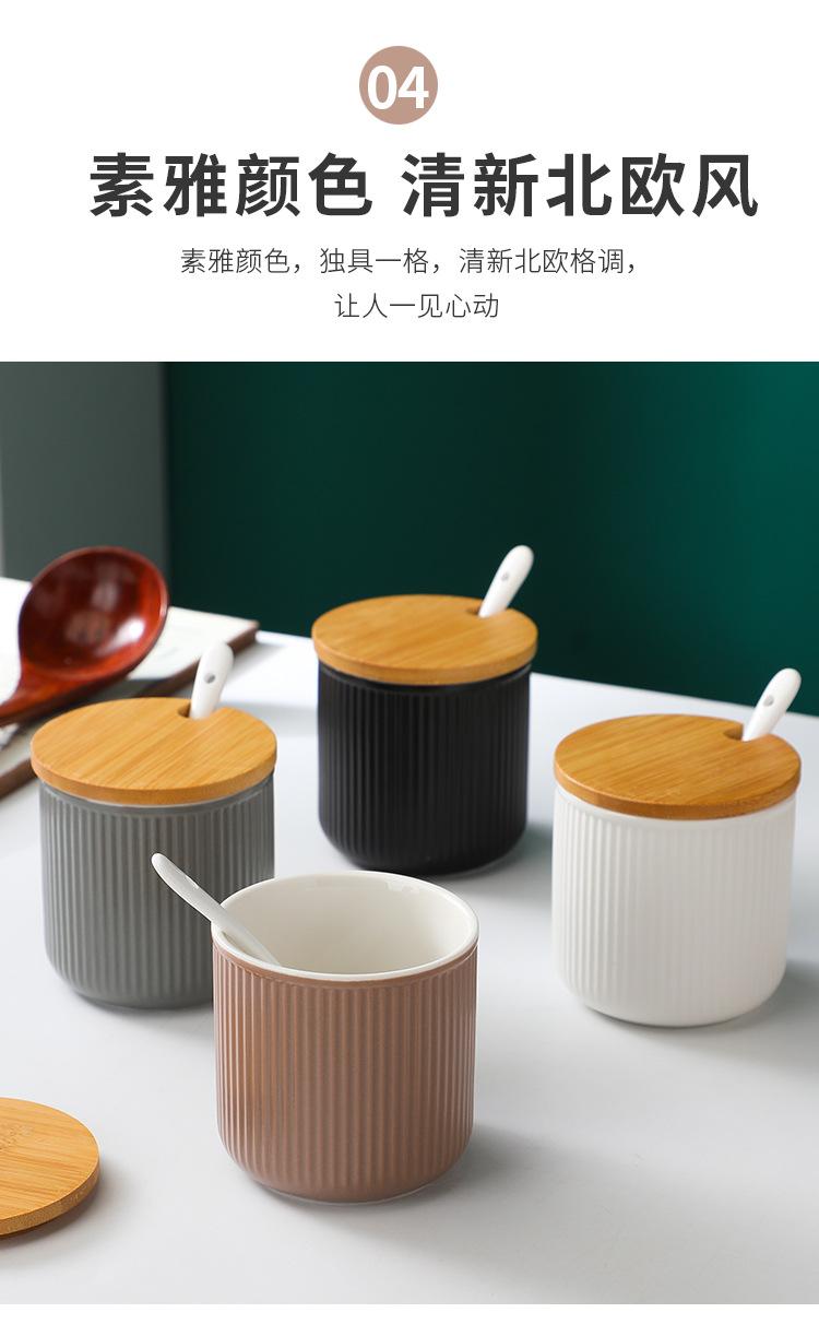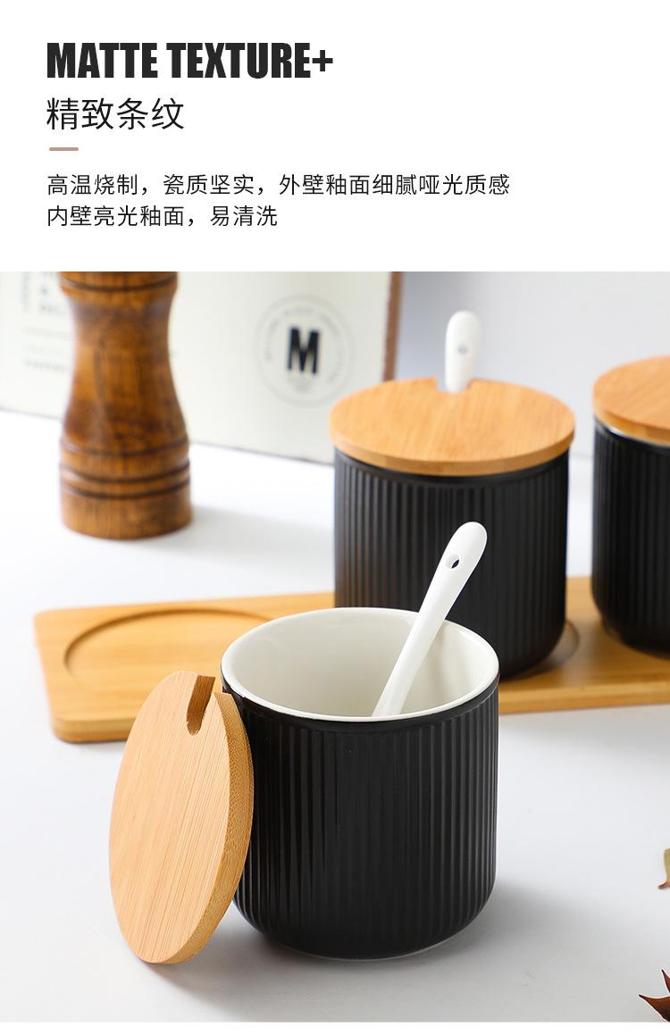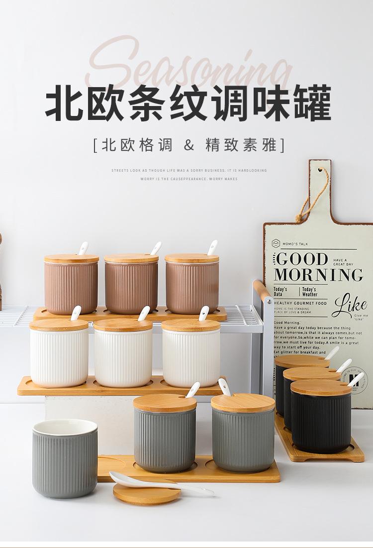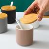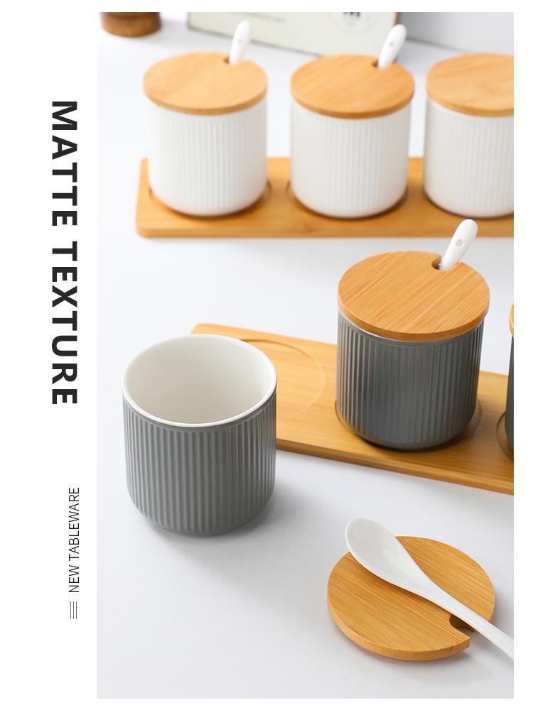Tarro de Condimentos Rayado de Cerámica Escandinava Juego Combinado de Cajas de Condimentos Tarro de Condimentos de Cocina Tarro de Sal Caja de Condimentos para el Hogar