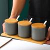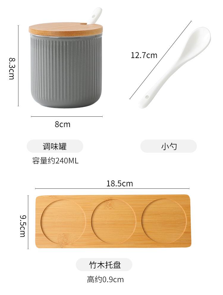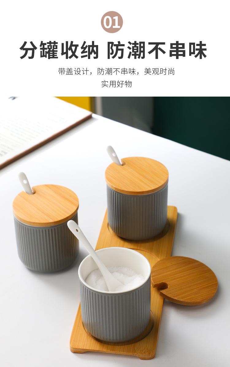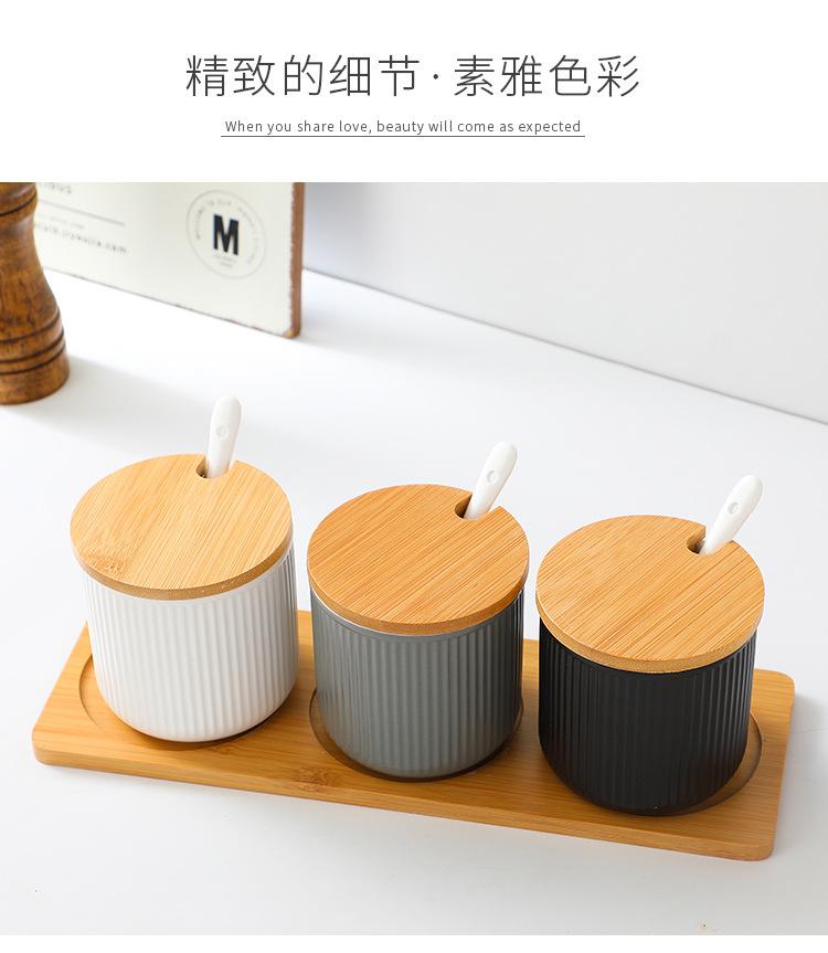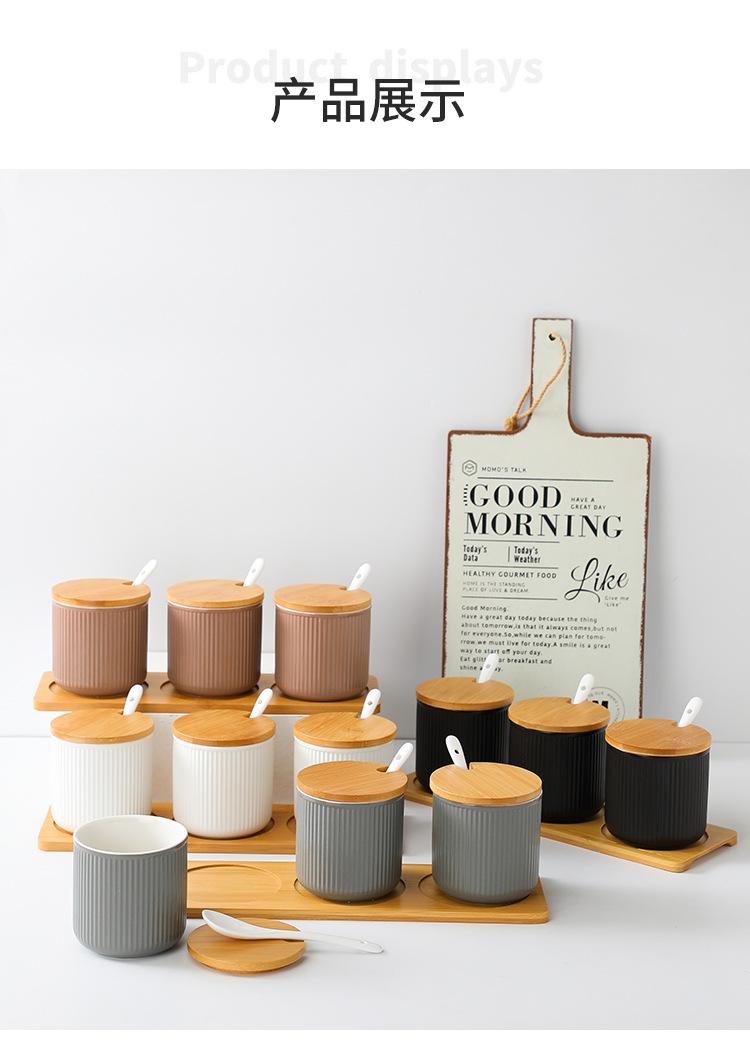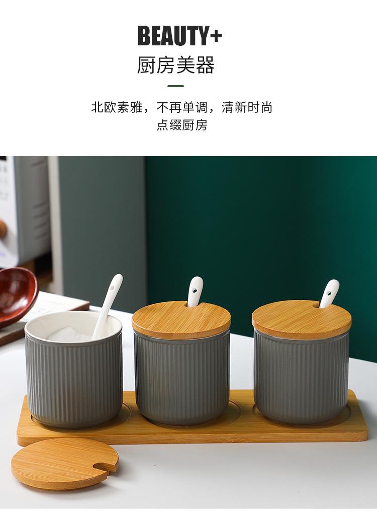 Tarro de Condimentos Rayado de Cerámica Escandinava Juego Combinado de Cajas de Condimentos Tarro de Condimentos de Cocina Tarro de Sal Caja de Condimentos para el Hogar