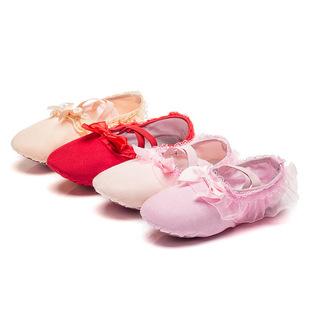 Venta directa de fábrica, zapatos de baile con lazo de encaje gratis para niños, zapatos de ballet de entrenamiento de suela suave para mujeres