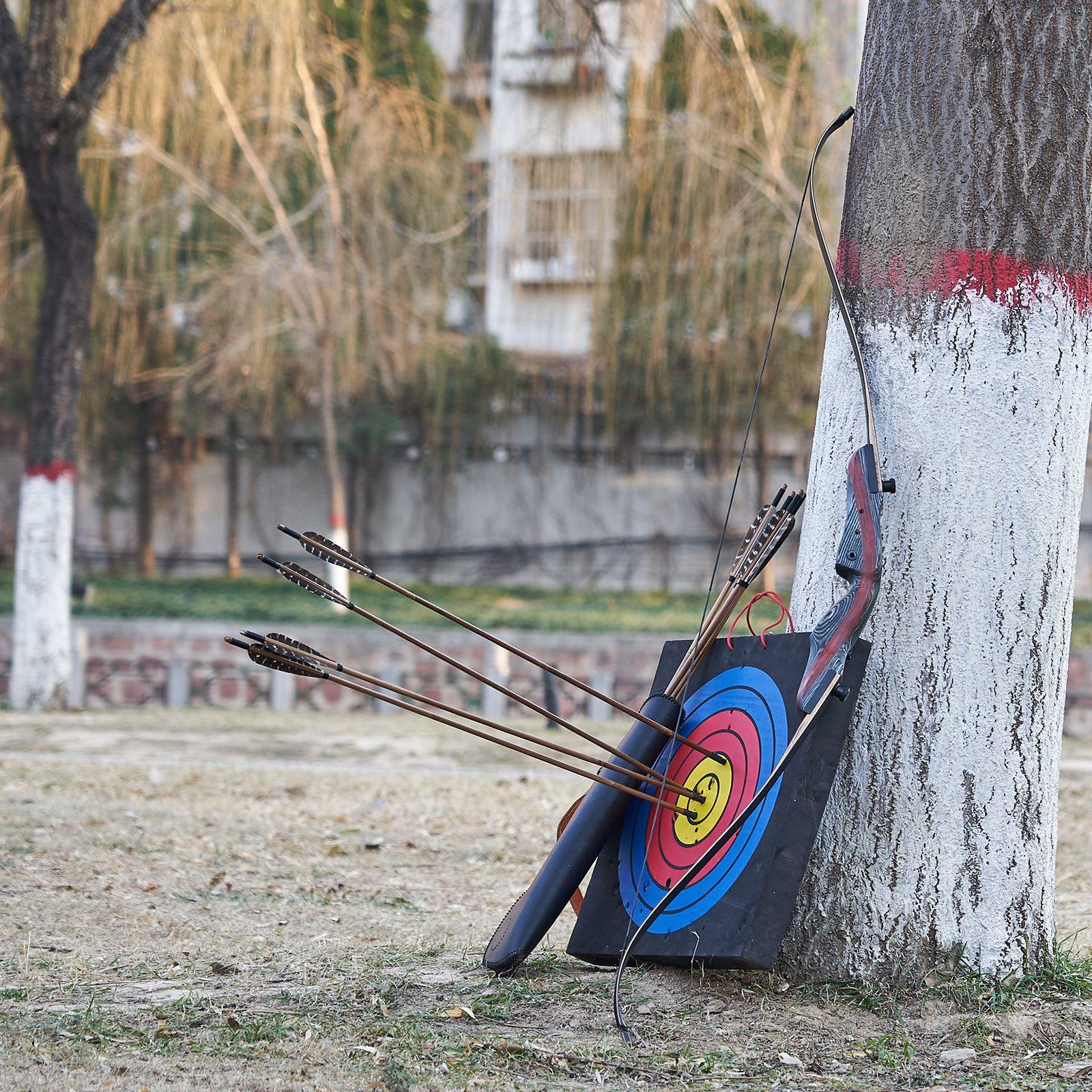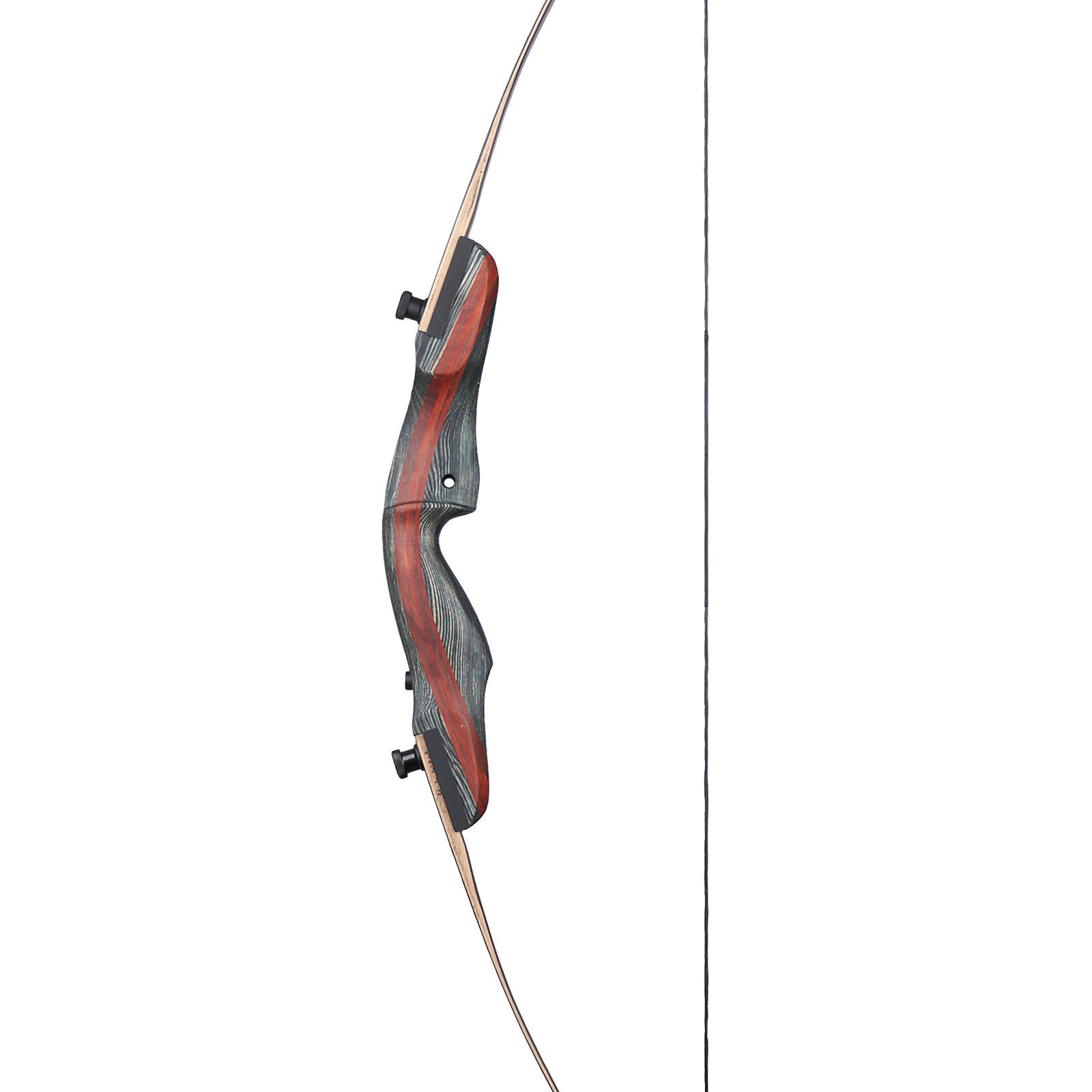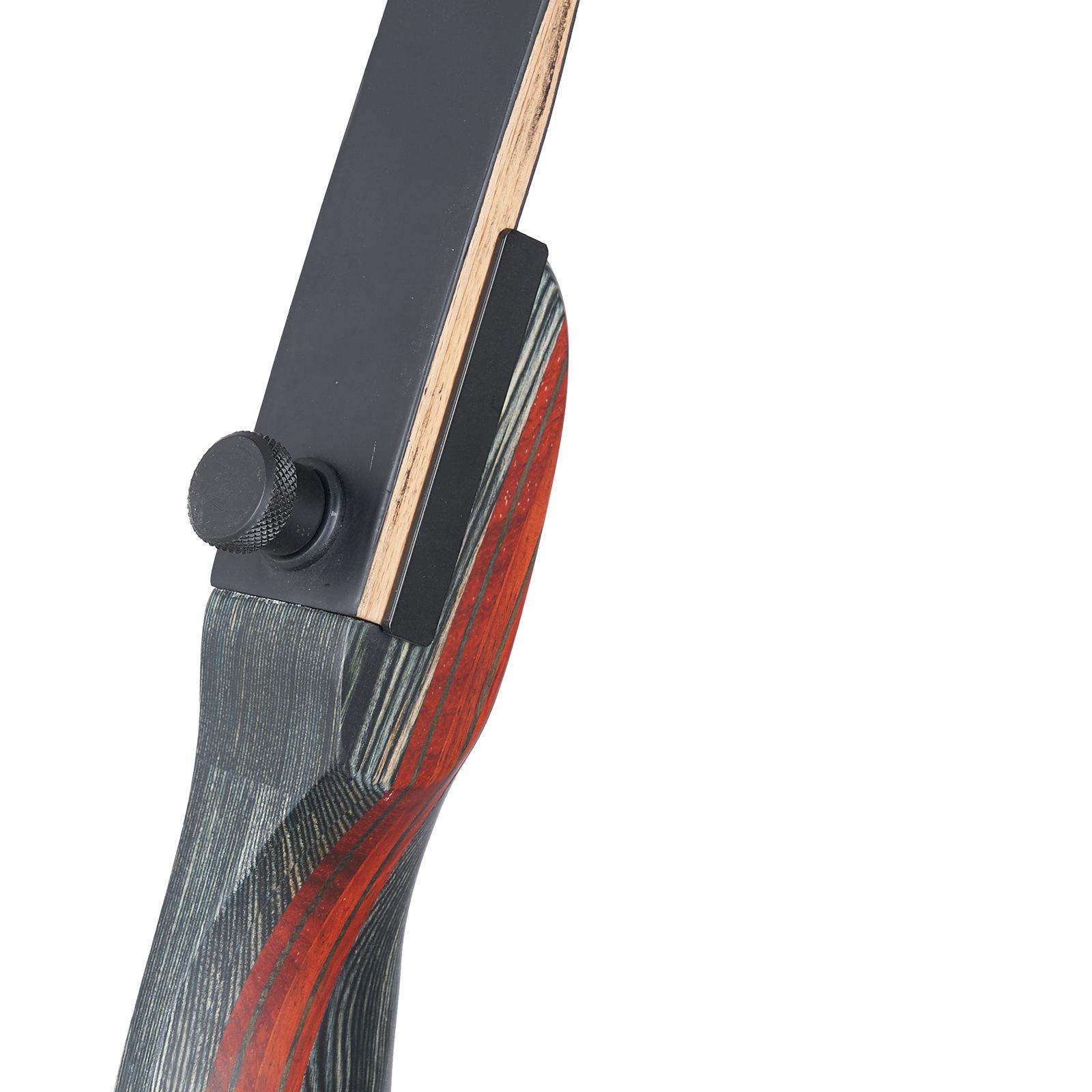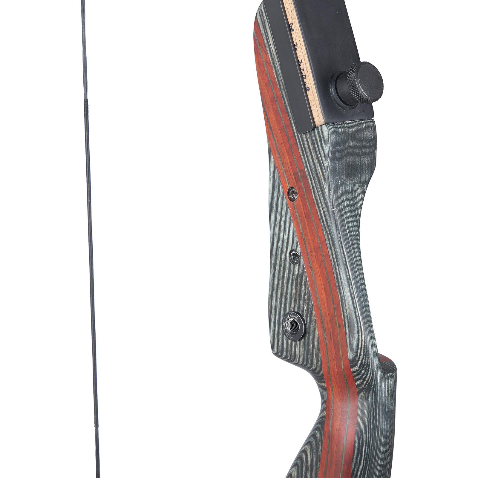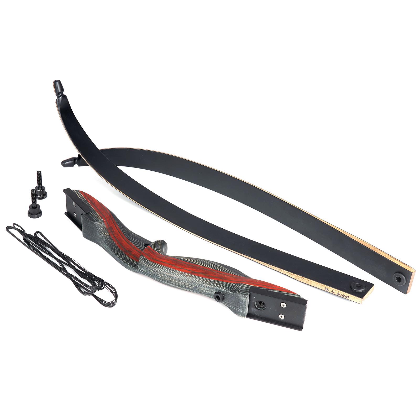 Material: Empuñadura de arco de madera técnica laminada, pala de arco laminada de fibra de vidrio de arce, cuerda de arco de Dyneema