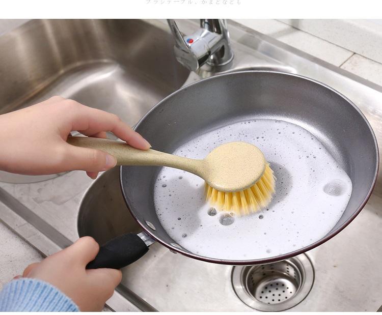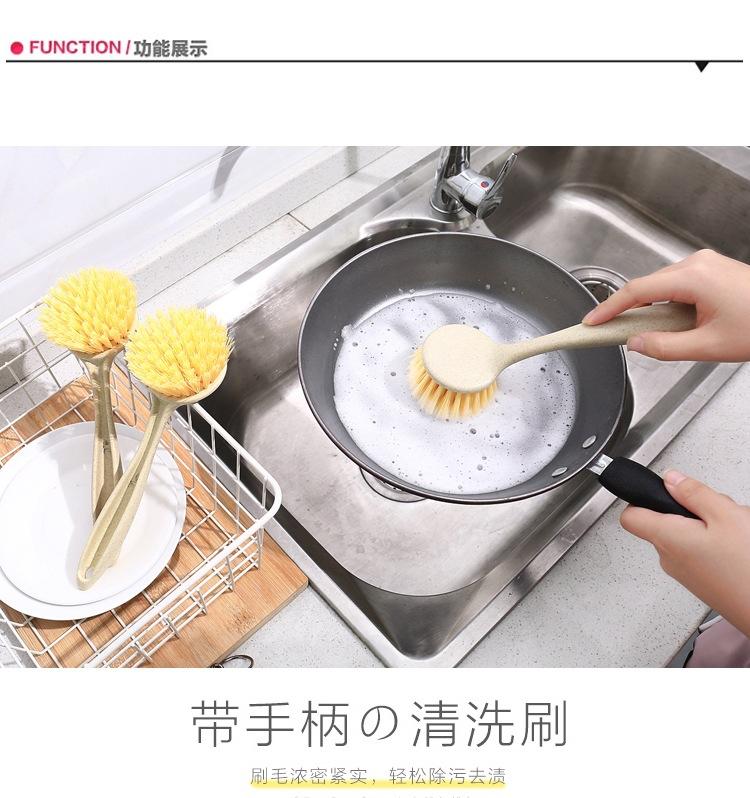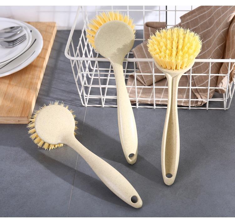 Compra Cepillo para ollas de paja de trigo con mango largo y antiadherente para colgar directamente de fábrica. al por mayor en Joom.pro