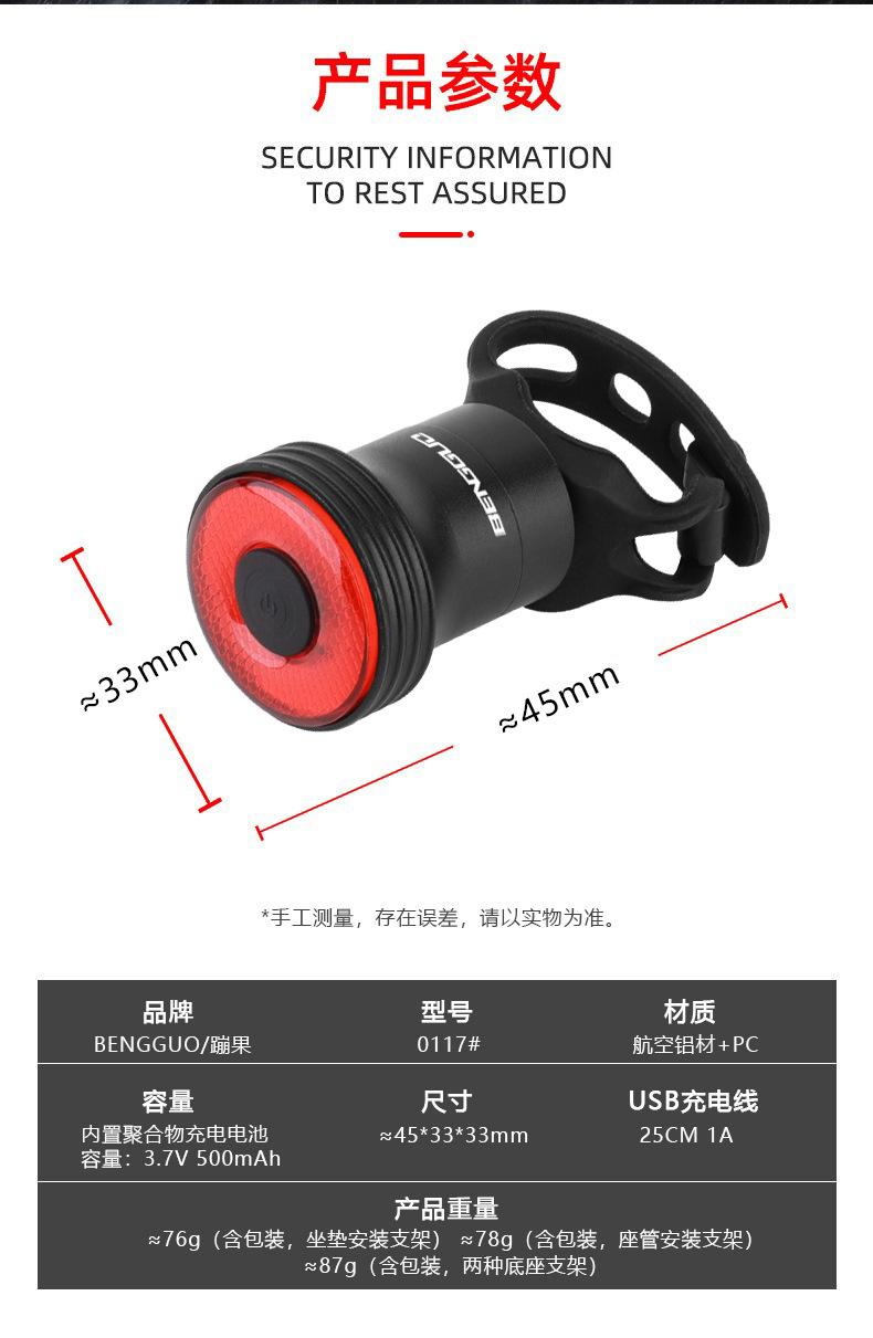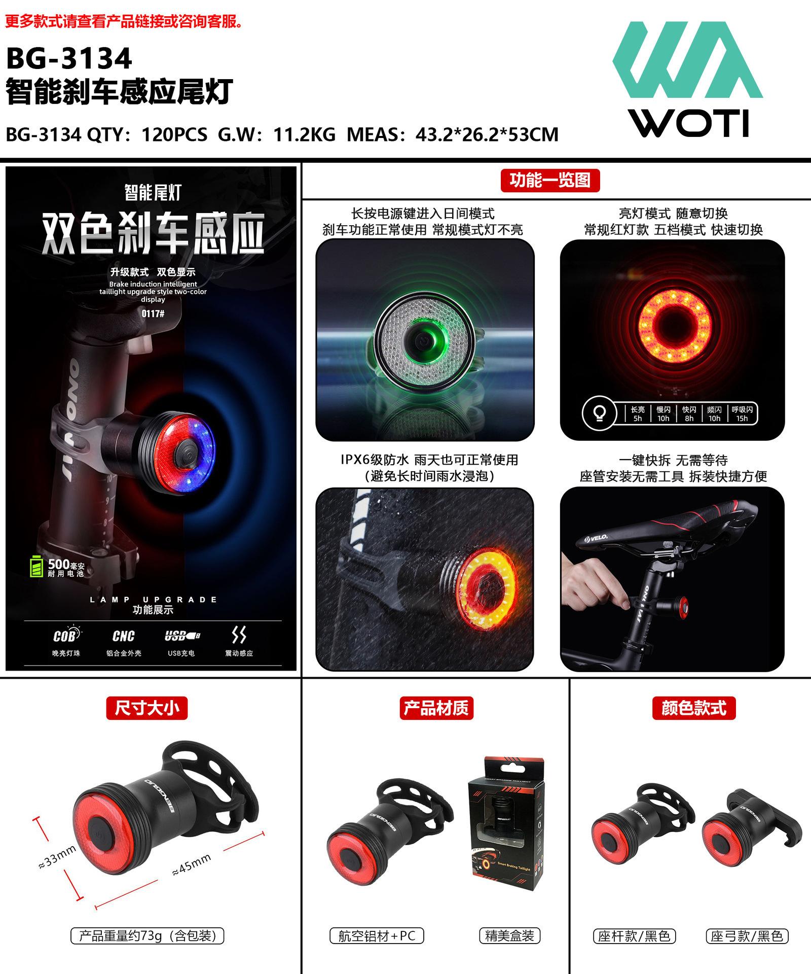 Luz trasera inteligente de freno de bicicleta luz trasera de advertencia de freno por inducción luz de bicicleta para ciclismo nocturno luz trasera de carga para ciclismo