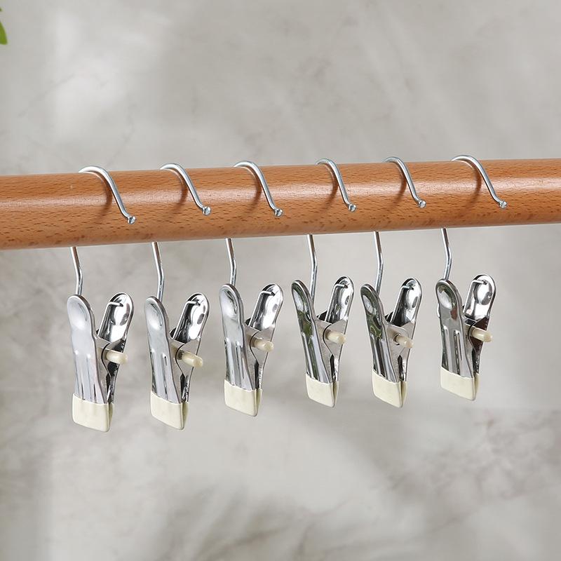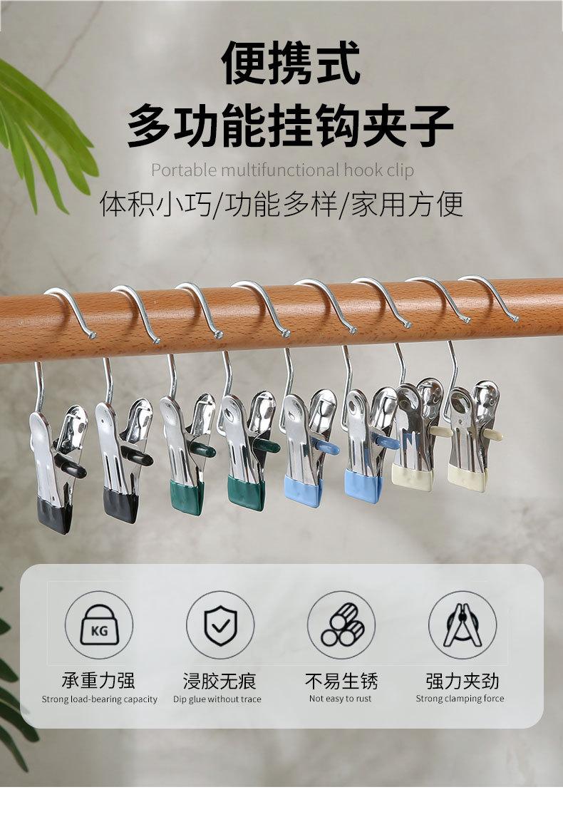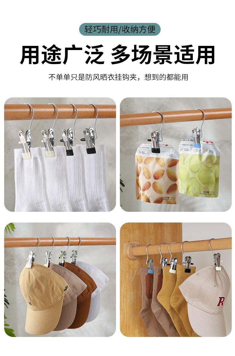Pinzas para ropa de acero inoxidable para el hogar sin marcas, clips de gancho multifuncionales anti-viento fuerte, clips universales para calcetines para snacks