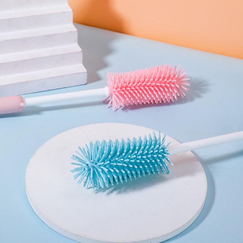 Cepillo de Silicona para Botella Multifuncional Cepillo Limpiador de Vasos Portátil con Mango Largo Cepillo para Lavar Vasos Dos en Uno Cepillo de Silicona para Botella al Por Mayor
