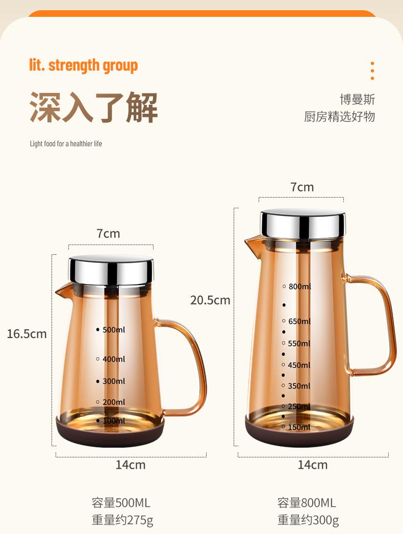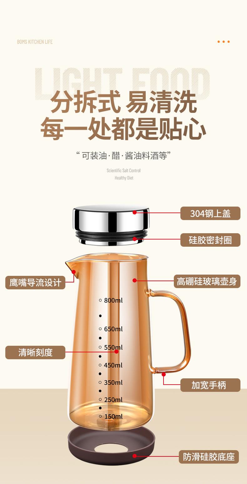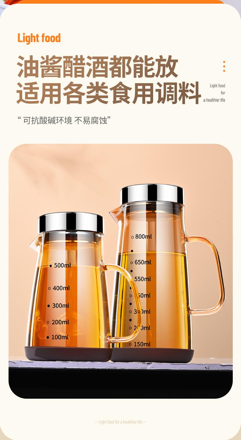Compra 2024 Nueva olla de aceite de vidrio de borosilicato de alta calidad con escala, botella de condimento especial de cocina, botella de aceite, olla de aceite de cocina para el hogar al por mayor en Joom.pro