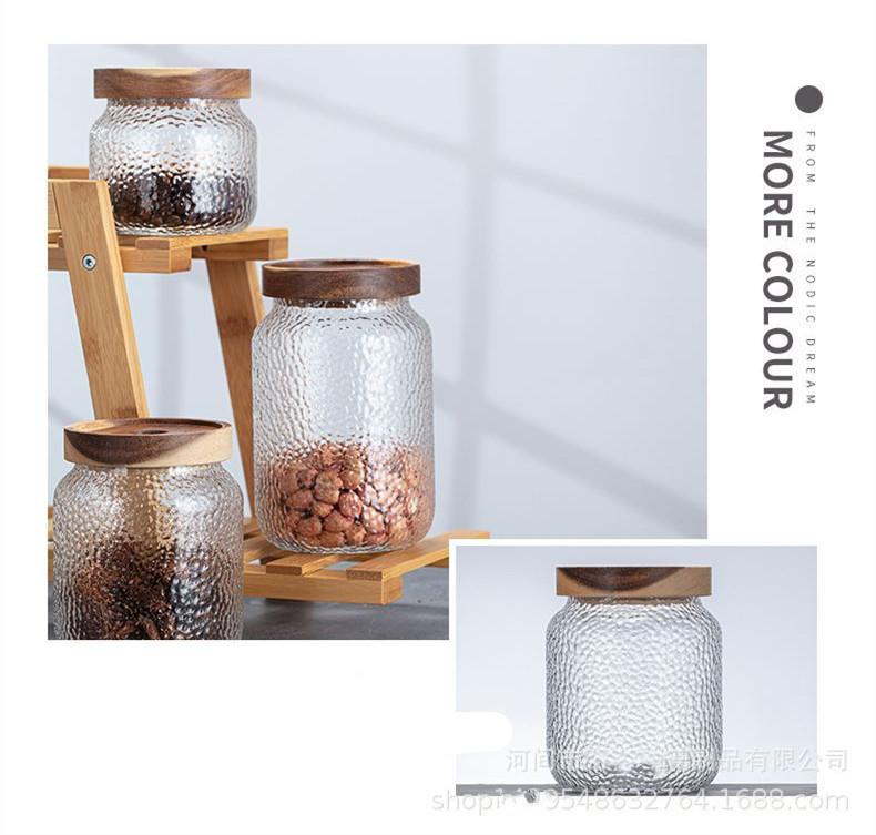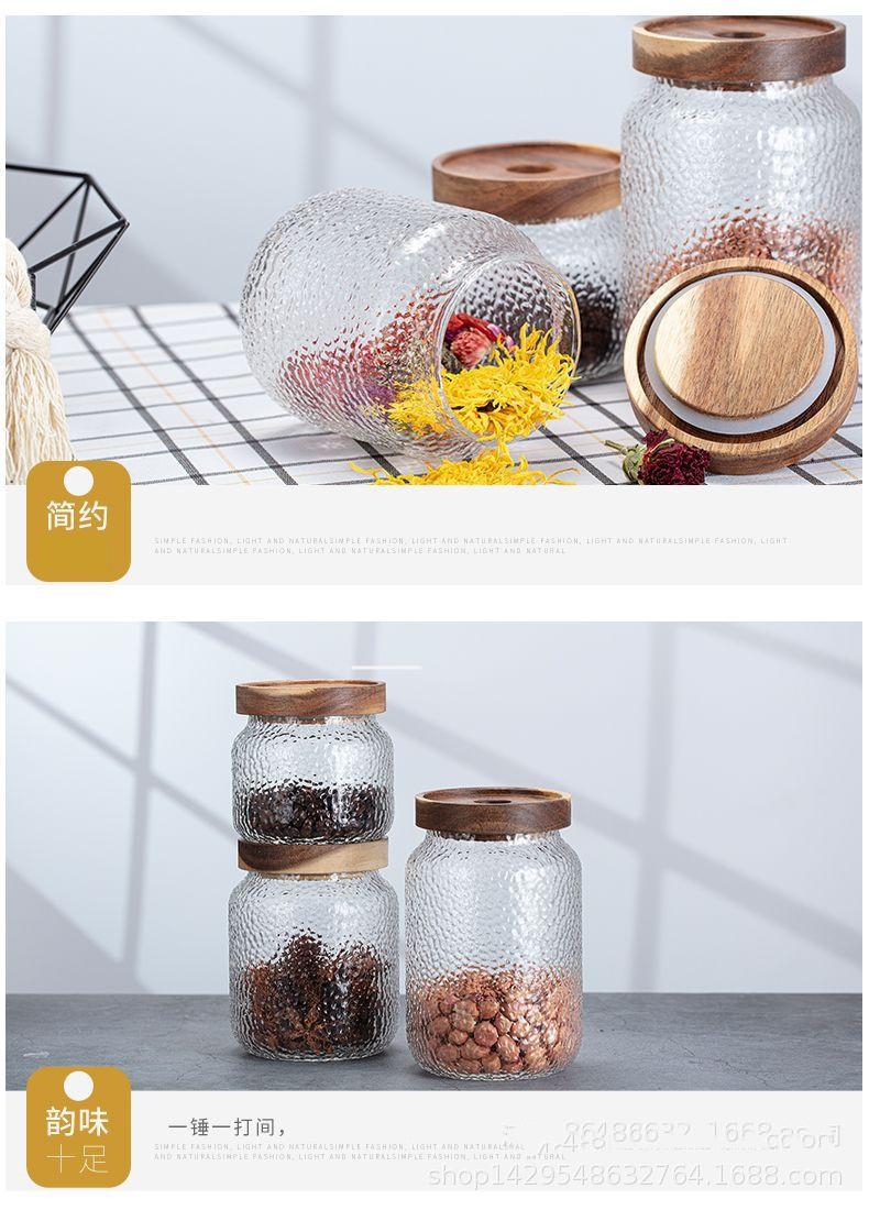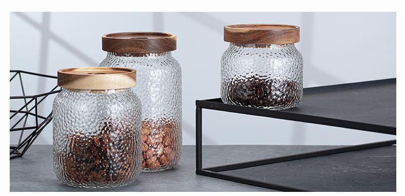 Tarro de vidrio de borosilicato transparente con tapa de madera de acacia, sellado, para té perfumado de grano grueso, nuevo estilo