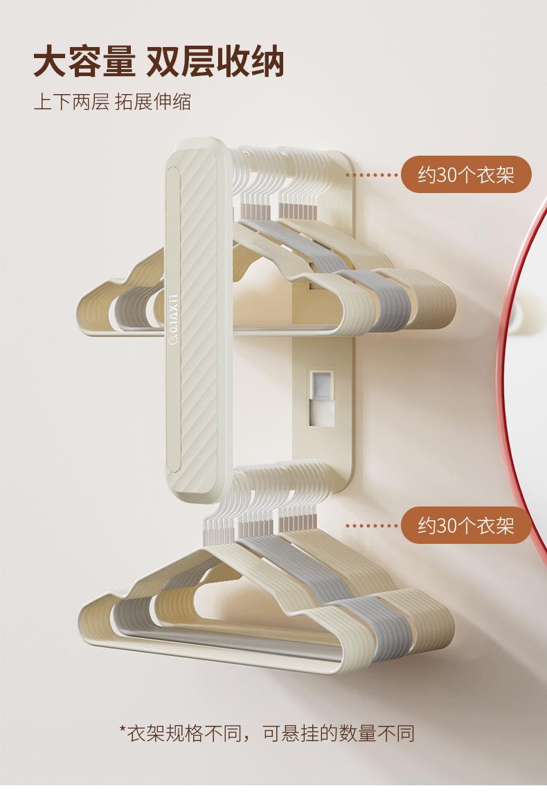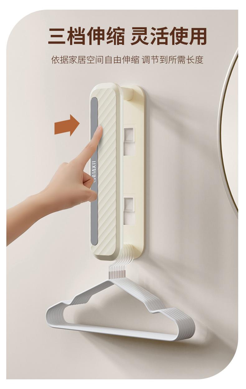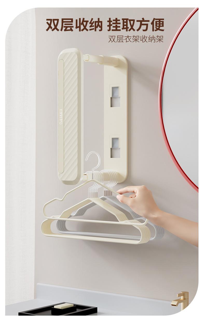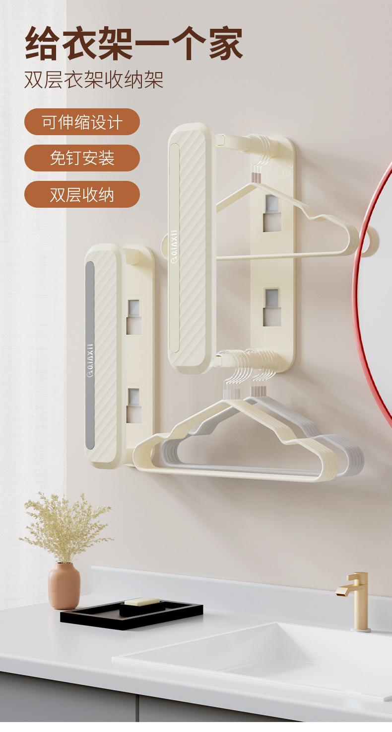 Punto de venta: Almacenamiento de perchas, instalación sin perforaciones, almacenamiento de doble capa, diseño retráctil, no más ropa colgada, resistente al agua y a la humedad, no hay que preocuparse por que se caiga