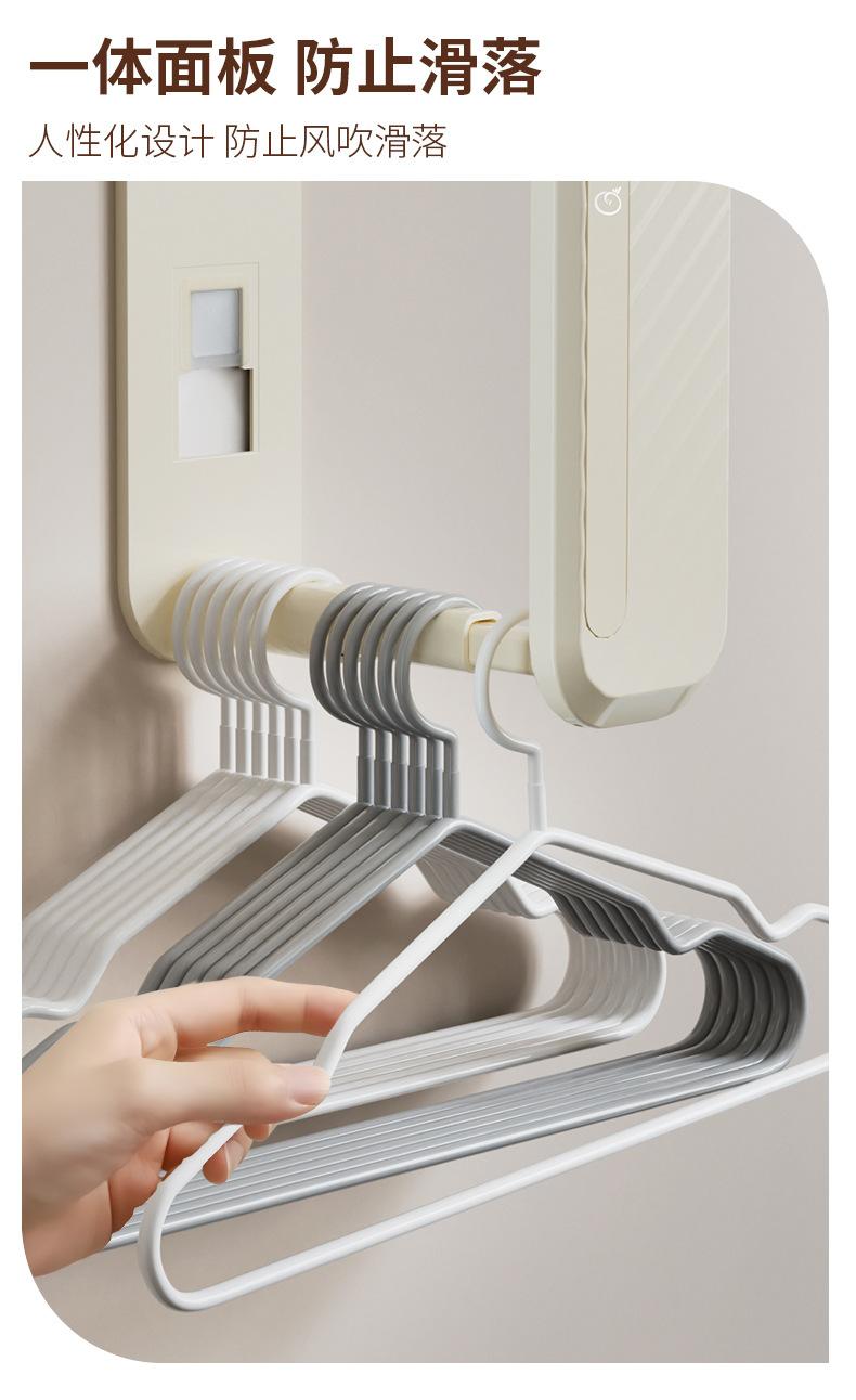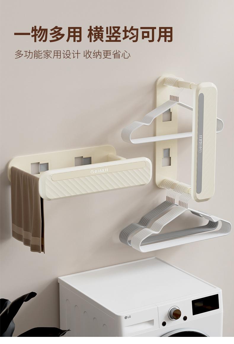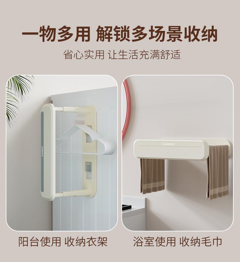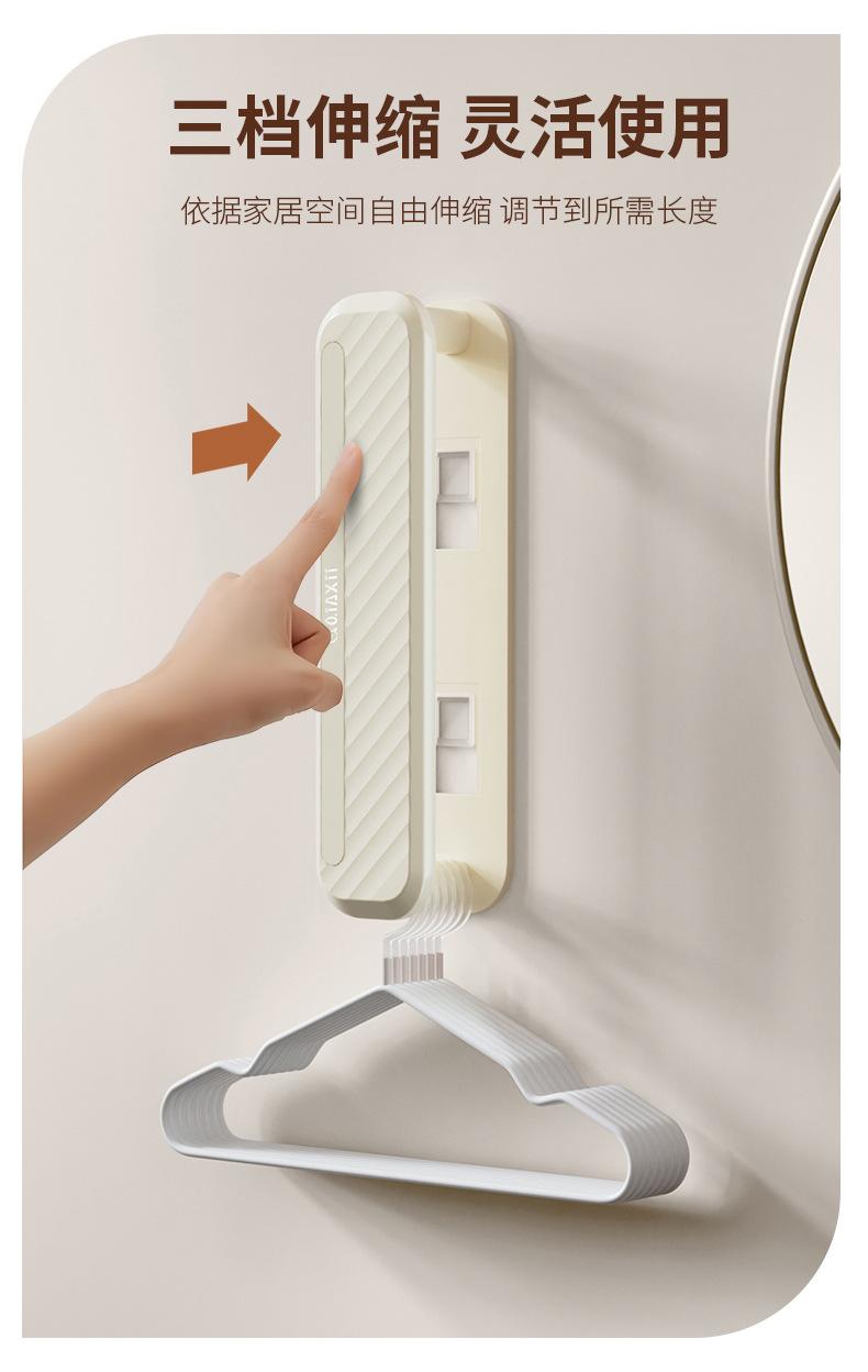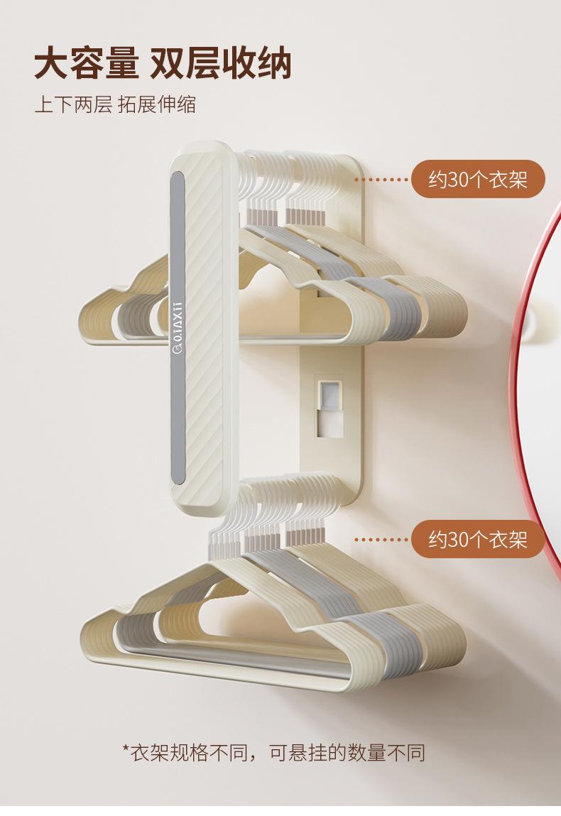 Punto de venta: Almacenamiento de perchas, instalación sin perforaciones, almacenamiento de doble capa, diseño retráctil, no más ropa colgada, resistente al agua y a la humedad, no hay que preocuparse por que se caiga