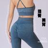 2023 nuevos trajes de yoga sin costuras transfronterizos europeos y americanos, trajes de fitness deportivos al aire libre para mujeres lavados con arena, levantamiento de caderas y espalda hermosa