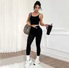 Pantalones deportivos de nueve puntos con cintura alta y hermosos glúteos, camiseta deportiva de manga larga con espalda hermosa, traje de yoga fitness para mujer, transfronterizos europeos y americanos