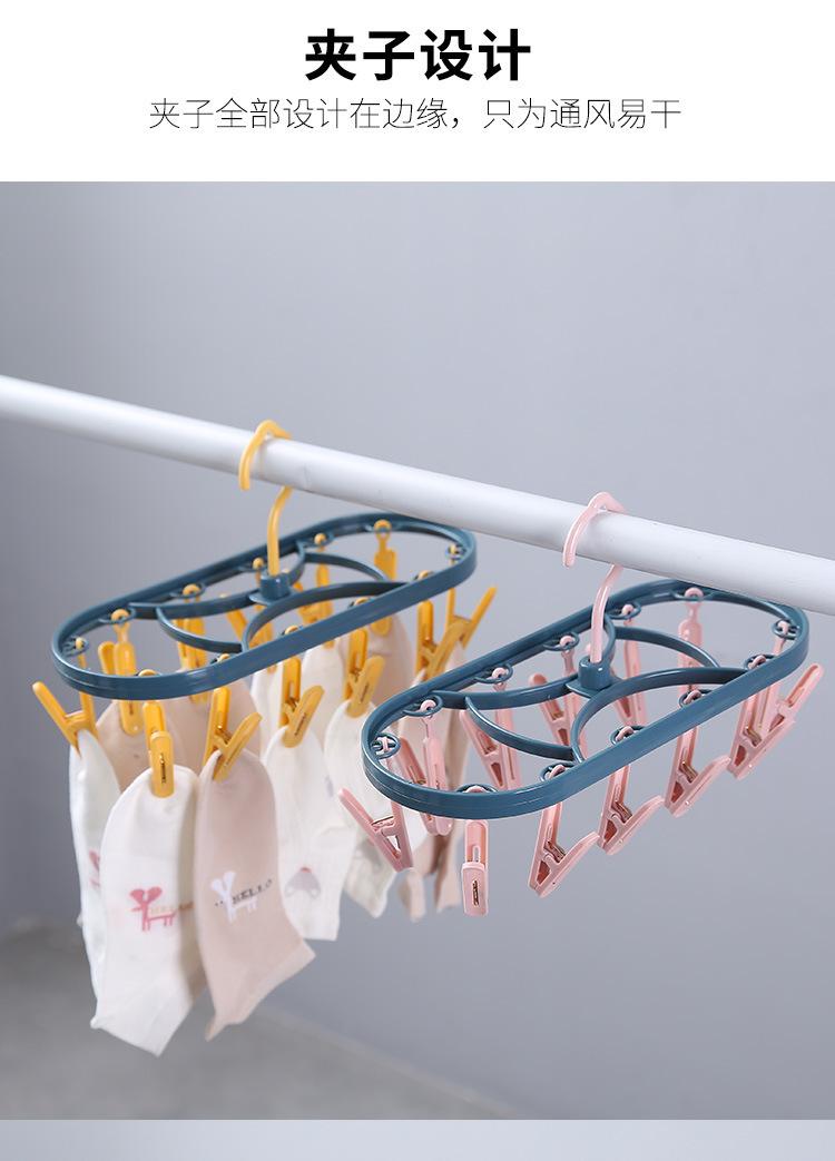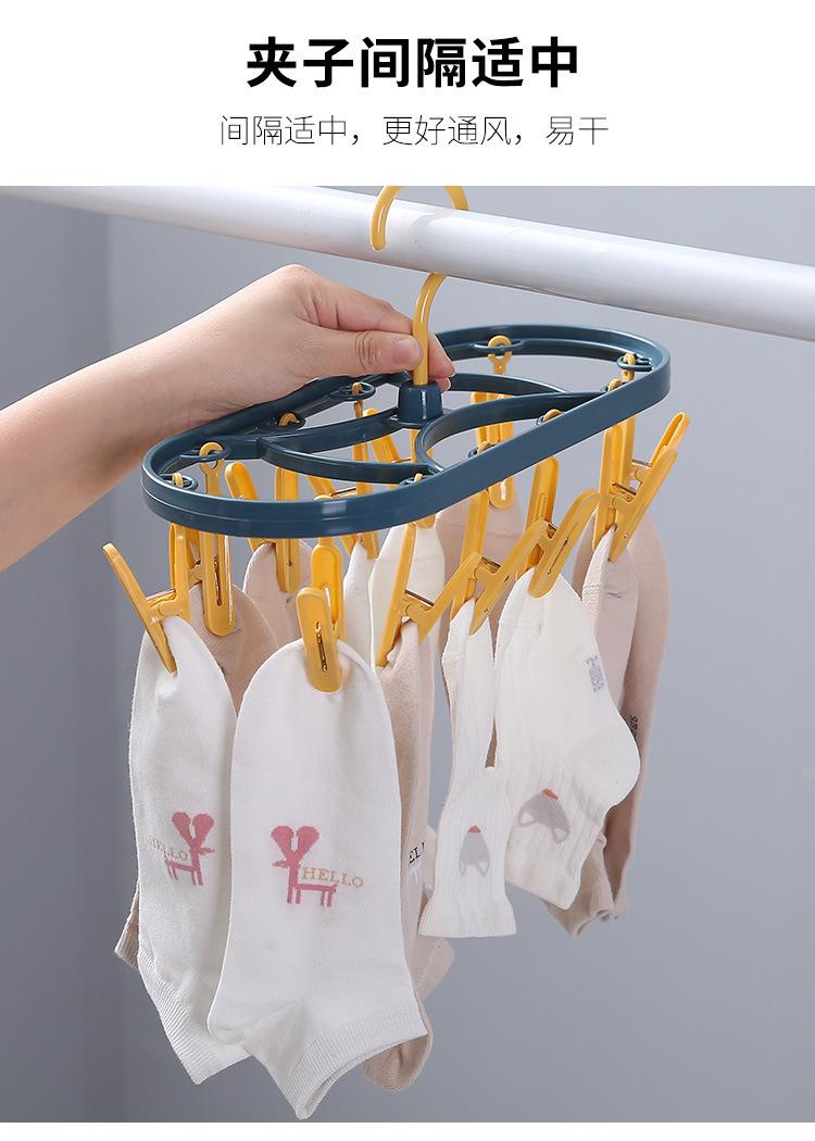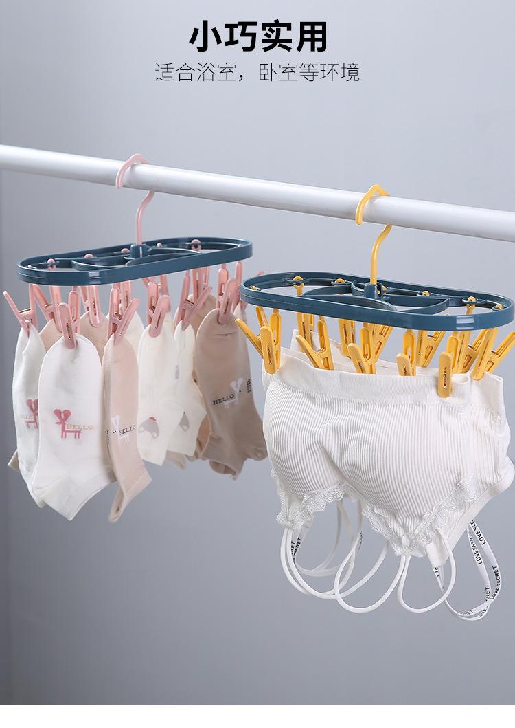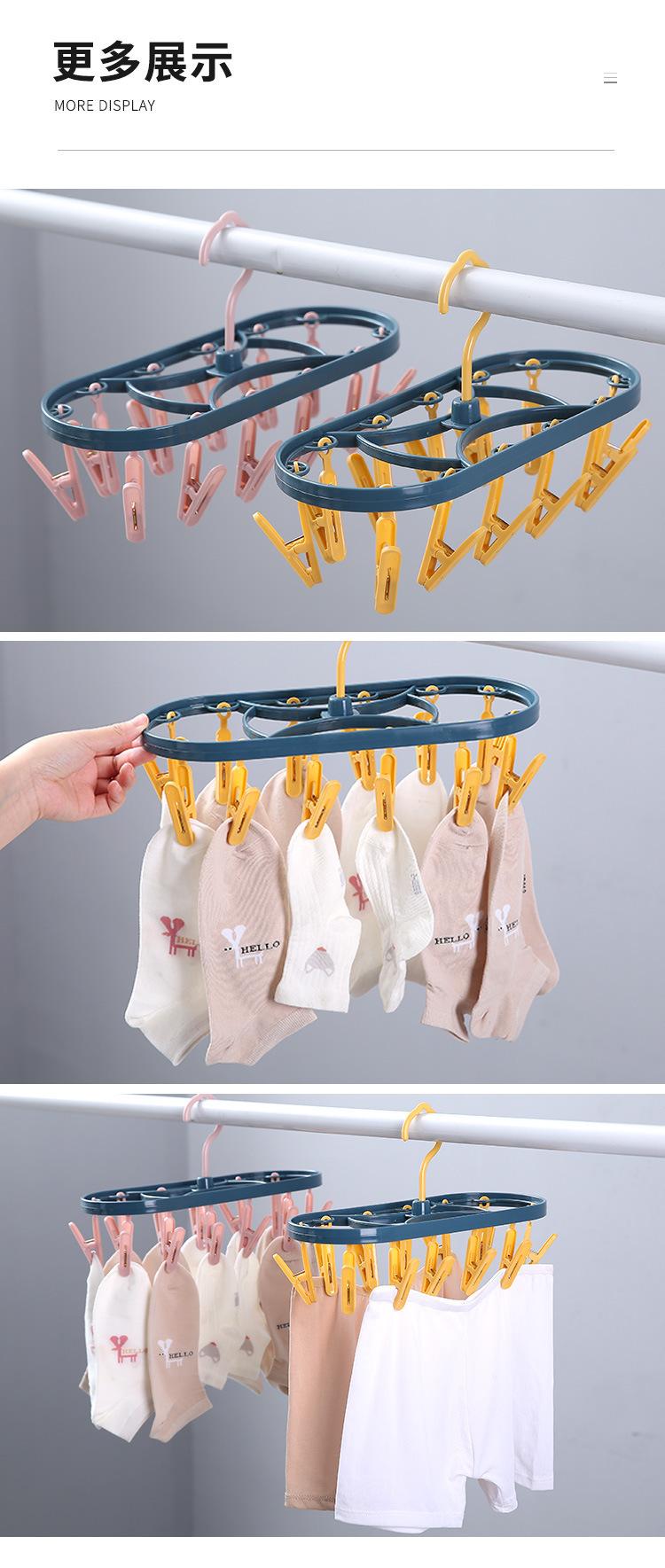 Percha de ropa de 12 pinzas, resistente al viento, multifuncional, de plástico, para secar ropa interior y calcetines, sencilla y sencilla.