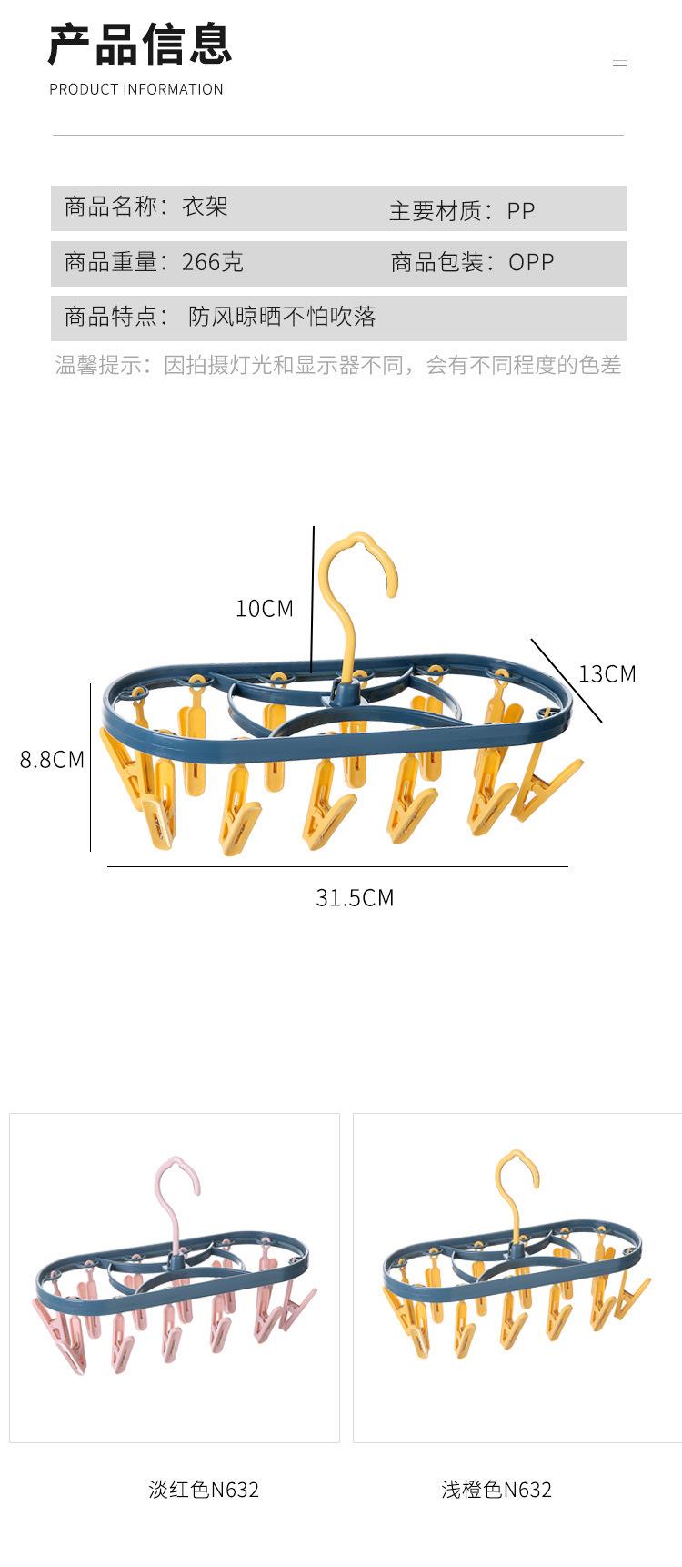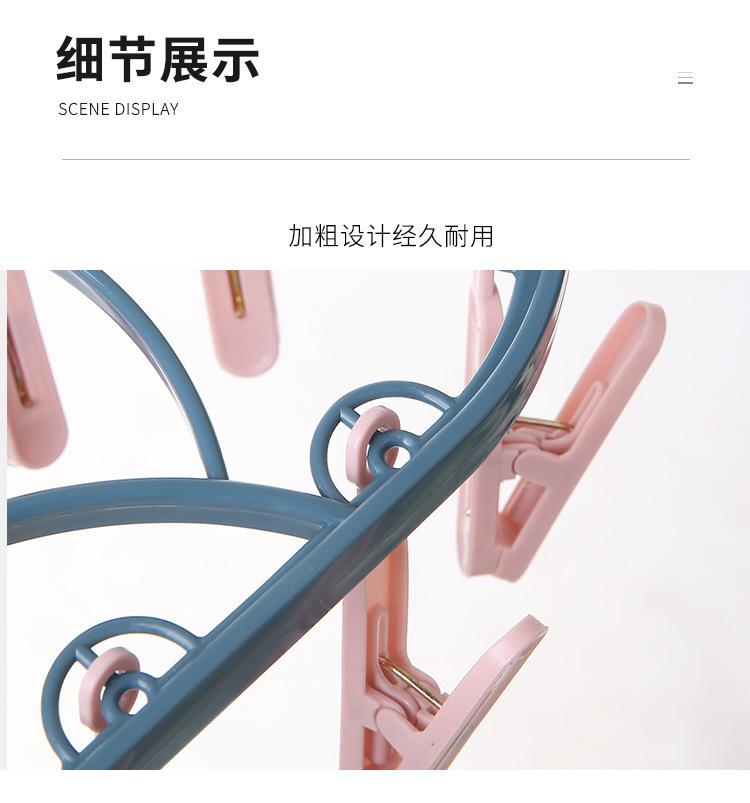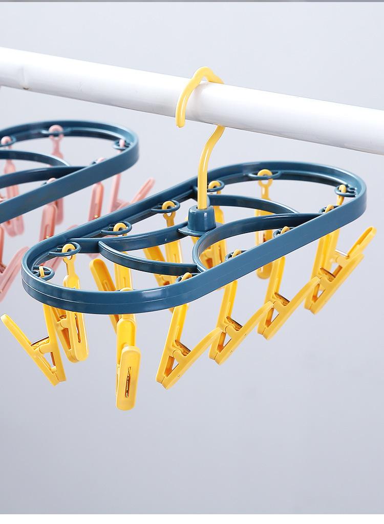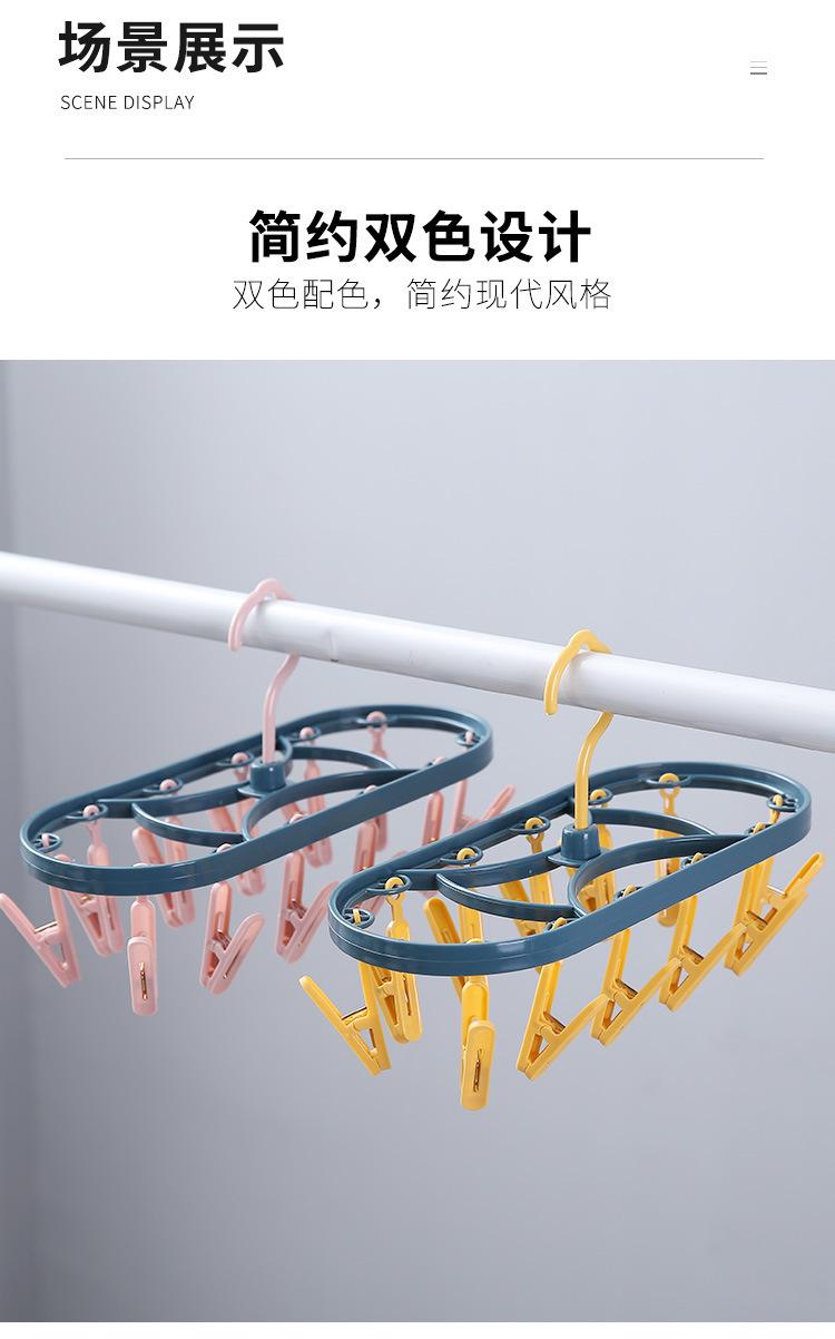 Percha de ropa de 12 pinzas, resistente al viento, multifuncional, de plástico, para secar ropa interior y calcetines, sencilla y sencilla.