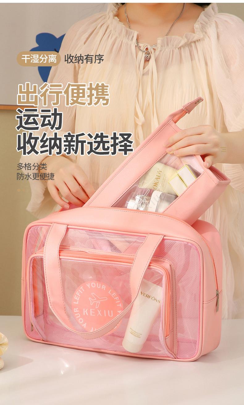 Bolsa de lavado de PVC transparente, portátil, para hombro, seca y húmeda, separada, para natación, fitness, baño, bolsa impermeable, bolsa de almacenamiento de maquillaje