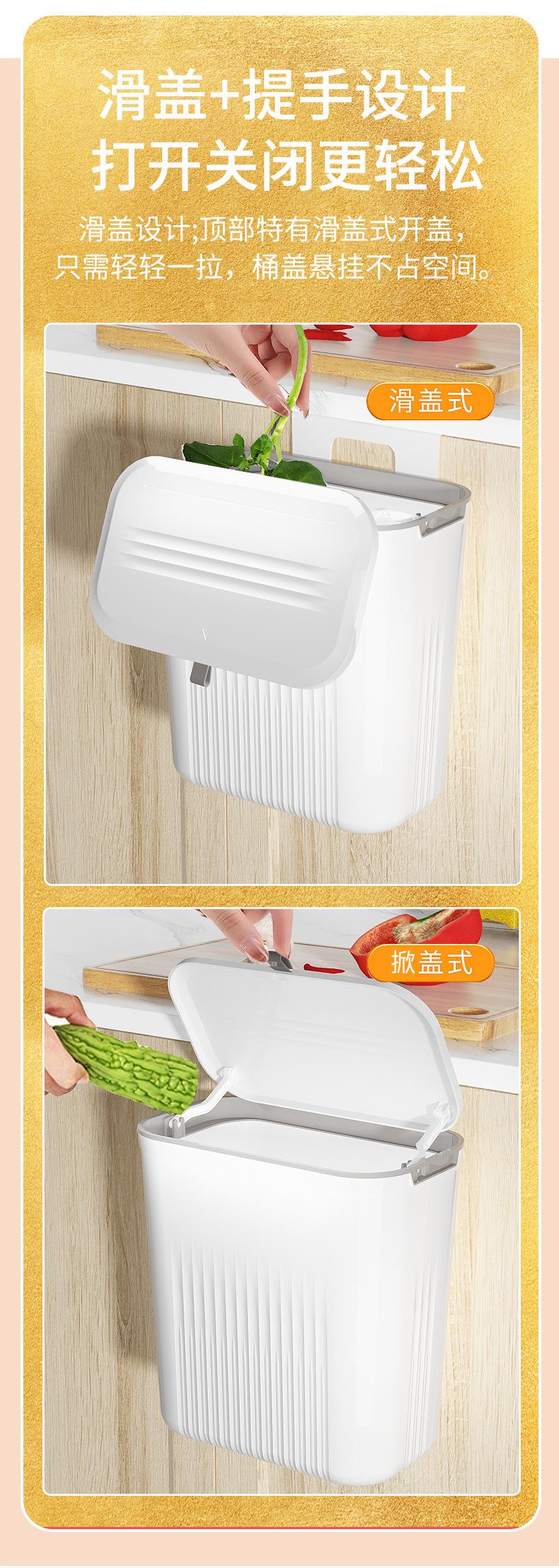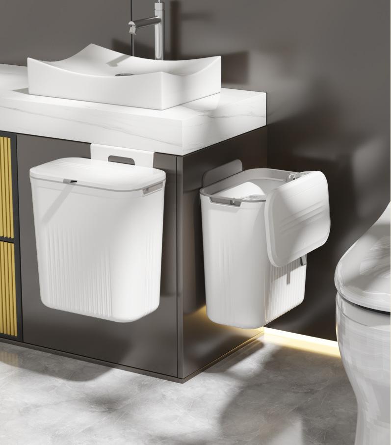 Papelera de cocina para el hogar, cesta de basura gruesa montada en la pared, tapa de inodoro, papelera para colgar en la puerta del armario