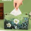 Caja de pañuelos con pintura al óleo para el hogar, la sala de estar, el automóvil, caja de pañuelos ligera de estilo lujoso, caja de pañuelos de alta gama, servilleta creativa de cuero de alta calidad