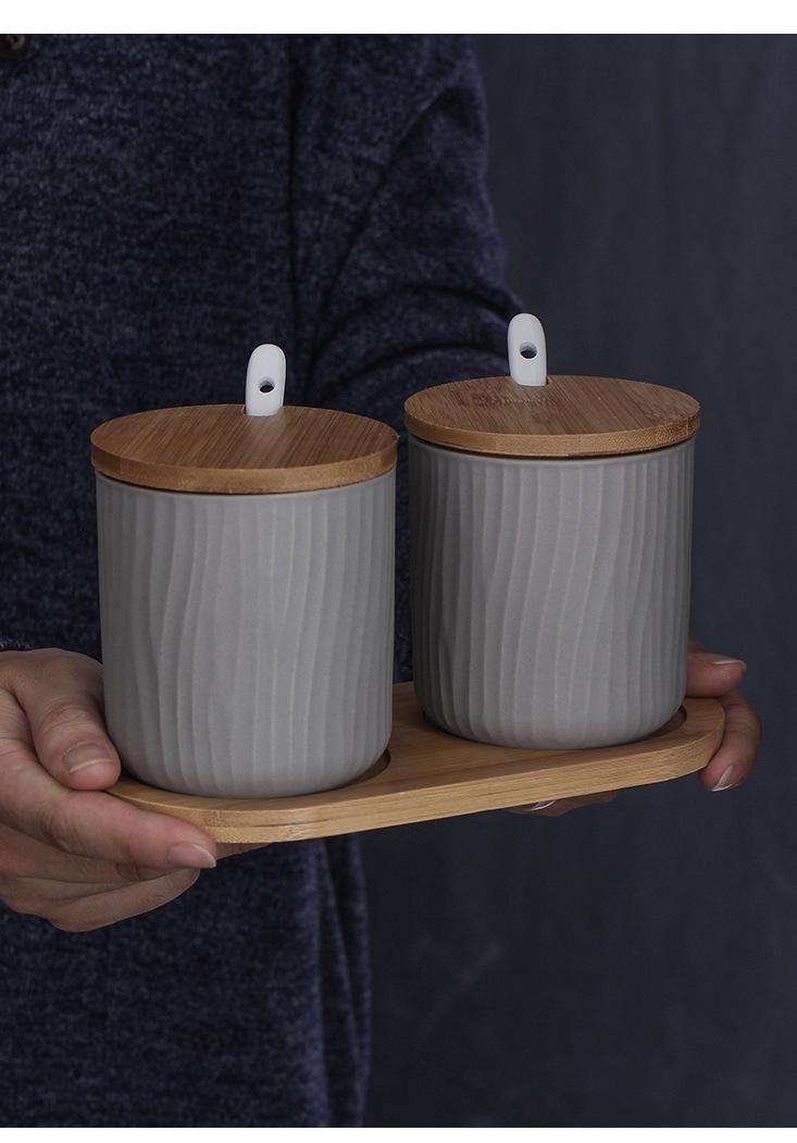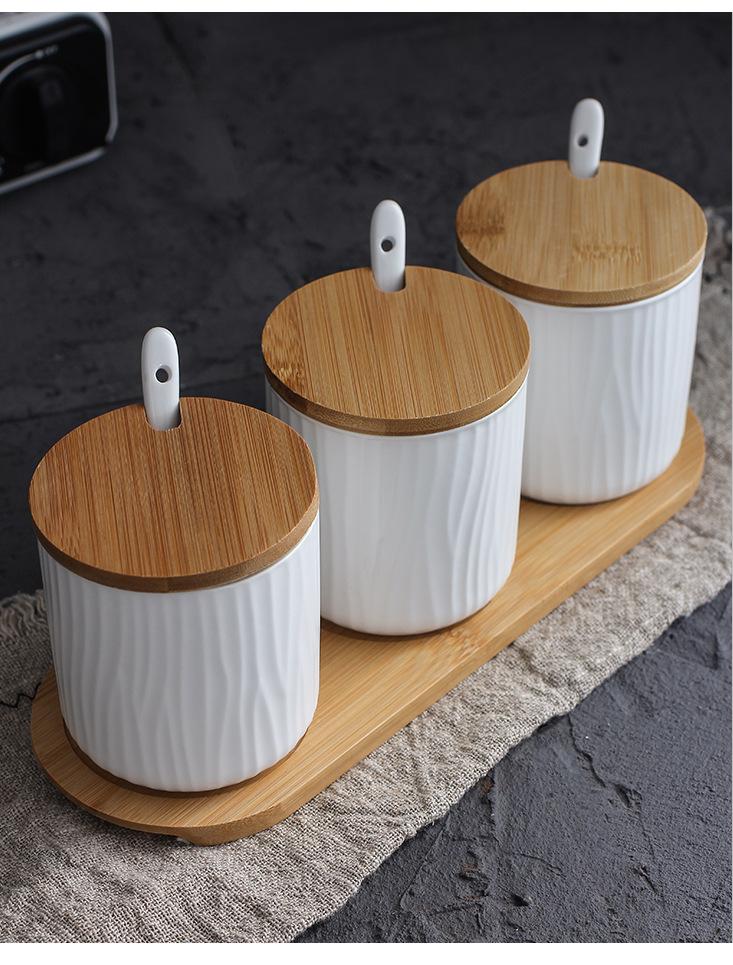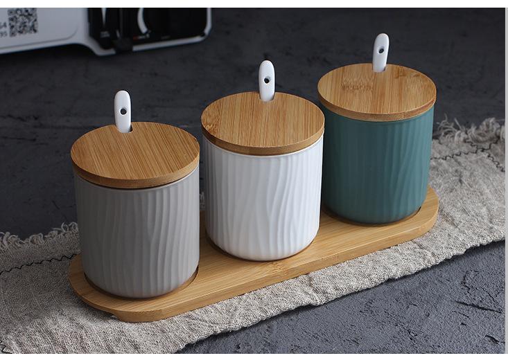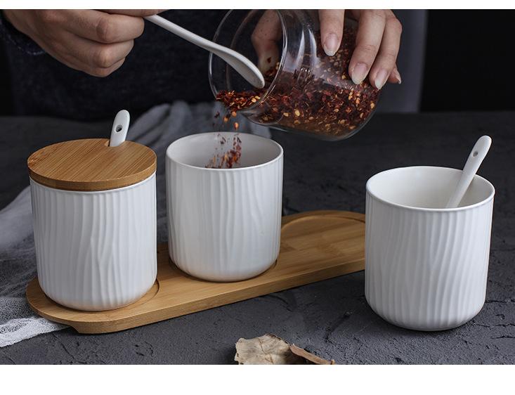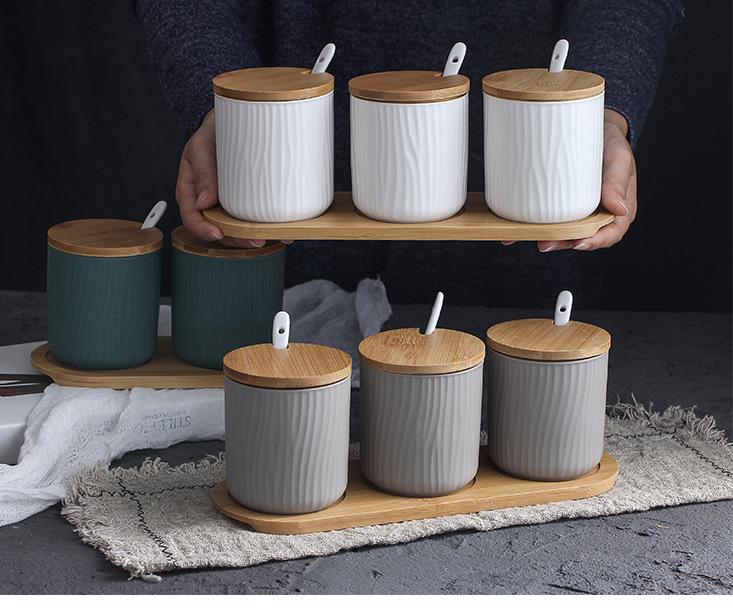 Juego de Tres Piezas de Tarro de Condimentos Escandinavo de Cerámica Botella de Condimentos Creativa Juego de Caja de Condimentos Botella de Condimentos de Cocina Tarro de Especias Doméstico