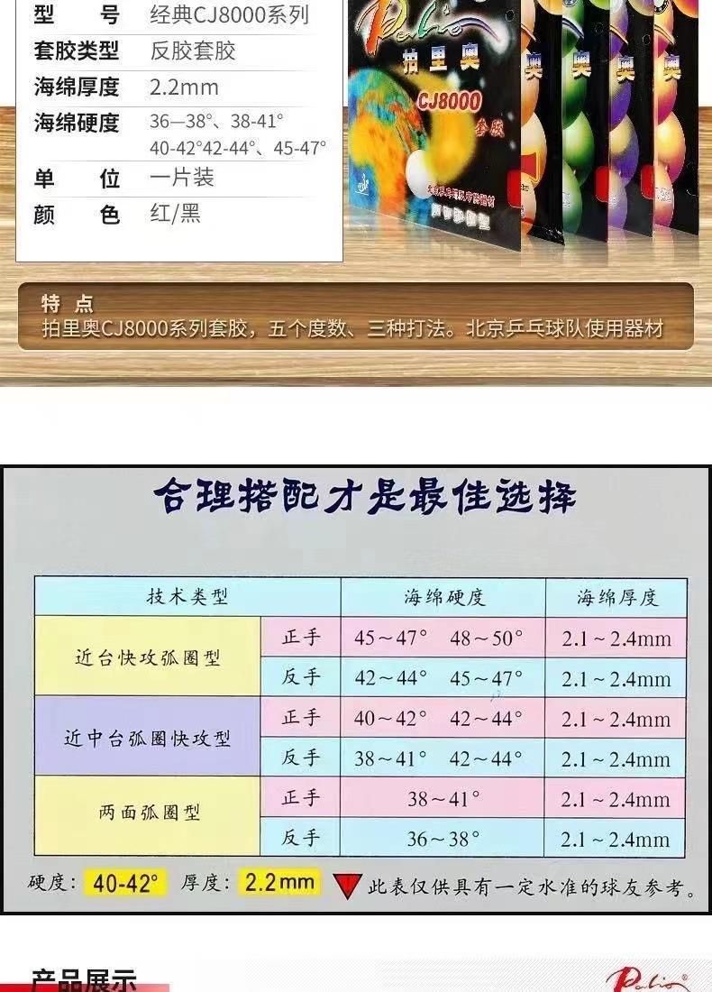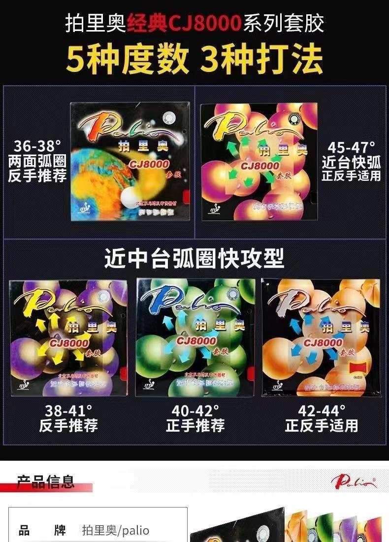 Juego de gomas para raqueta de tenis de mesa palio CJ8000, goma de doble cara, arco de tenis de mesa, pegamento inverso