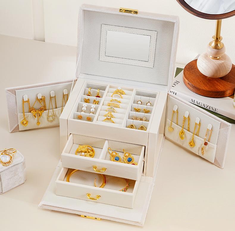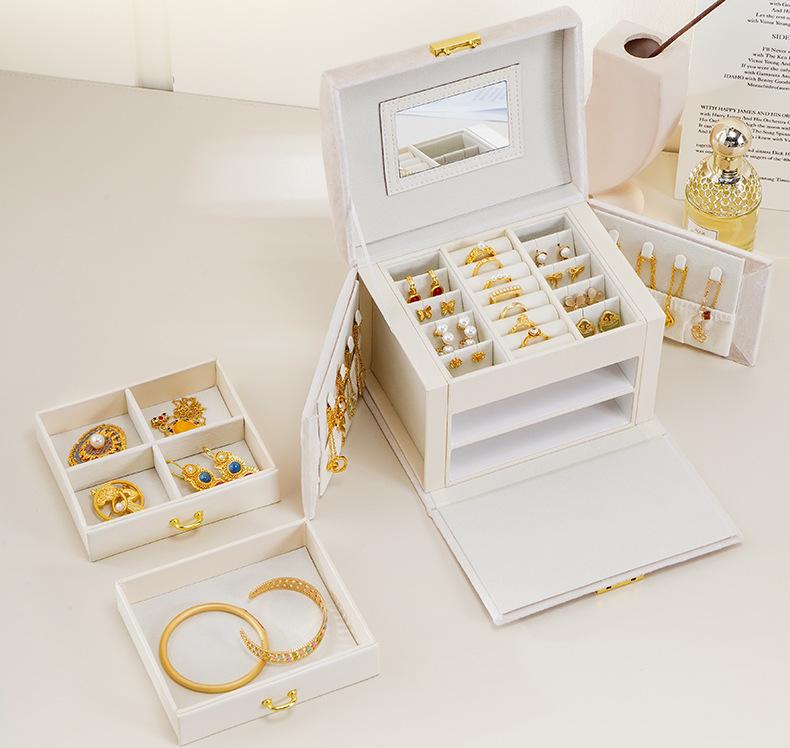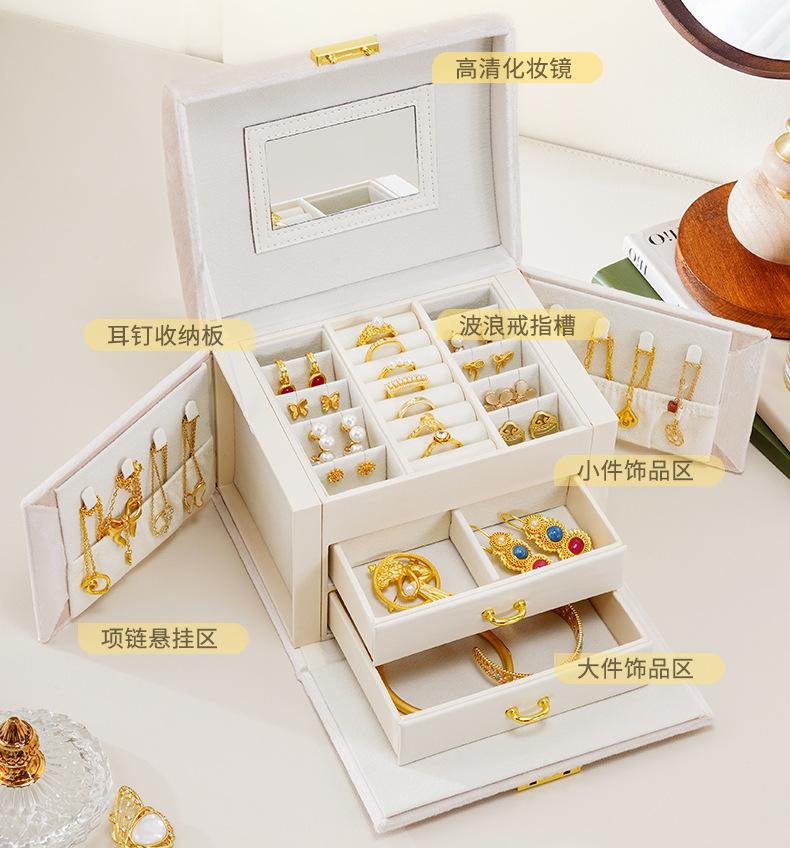 Compra Caja de almacenamiento de joyas de franela de gran capacidad y múltiples capas de Amazon, portátil, con anillo de bloqueo, collar, pendientes, joyero al por mayor en Joom.pro
