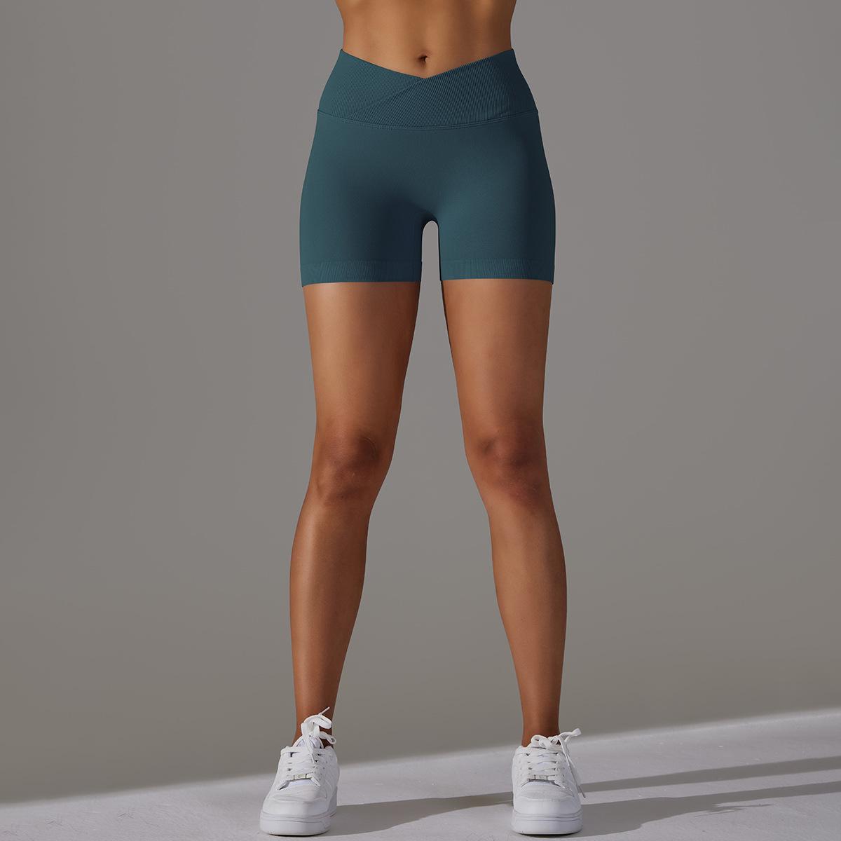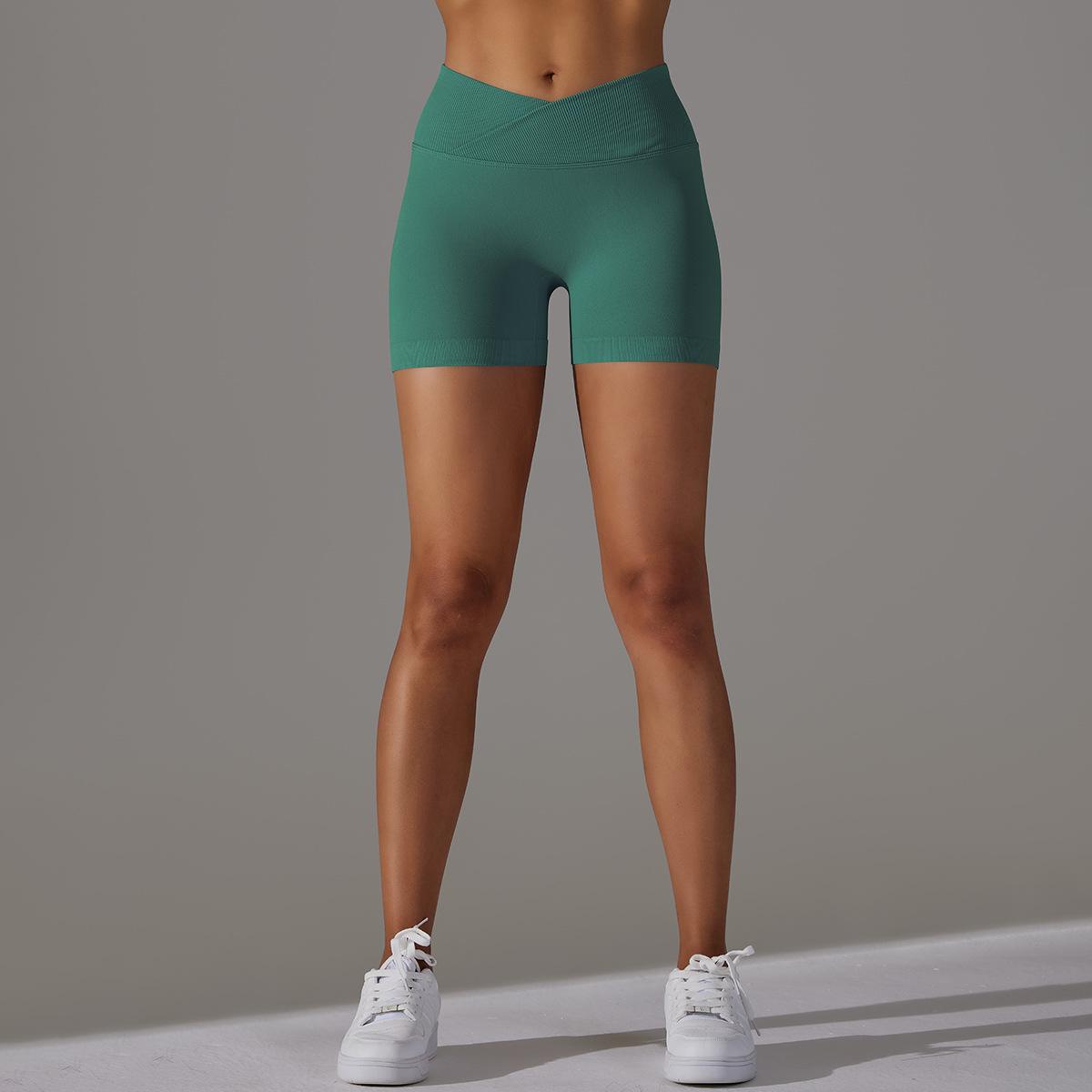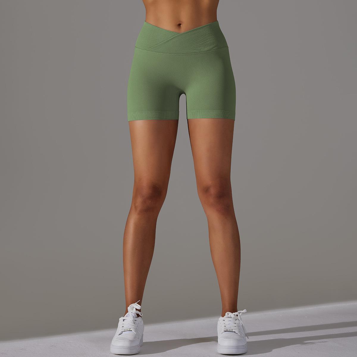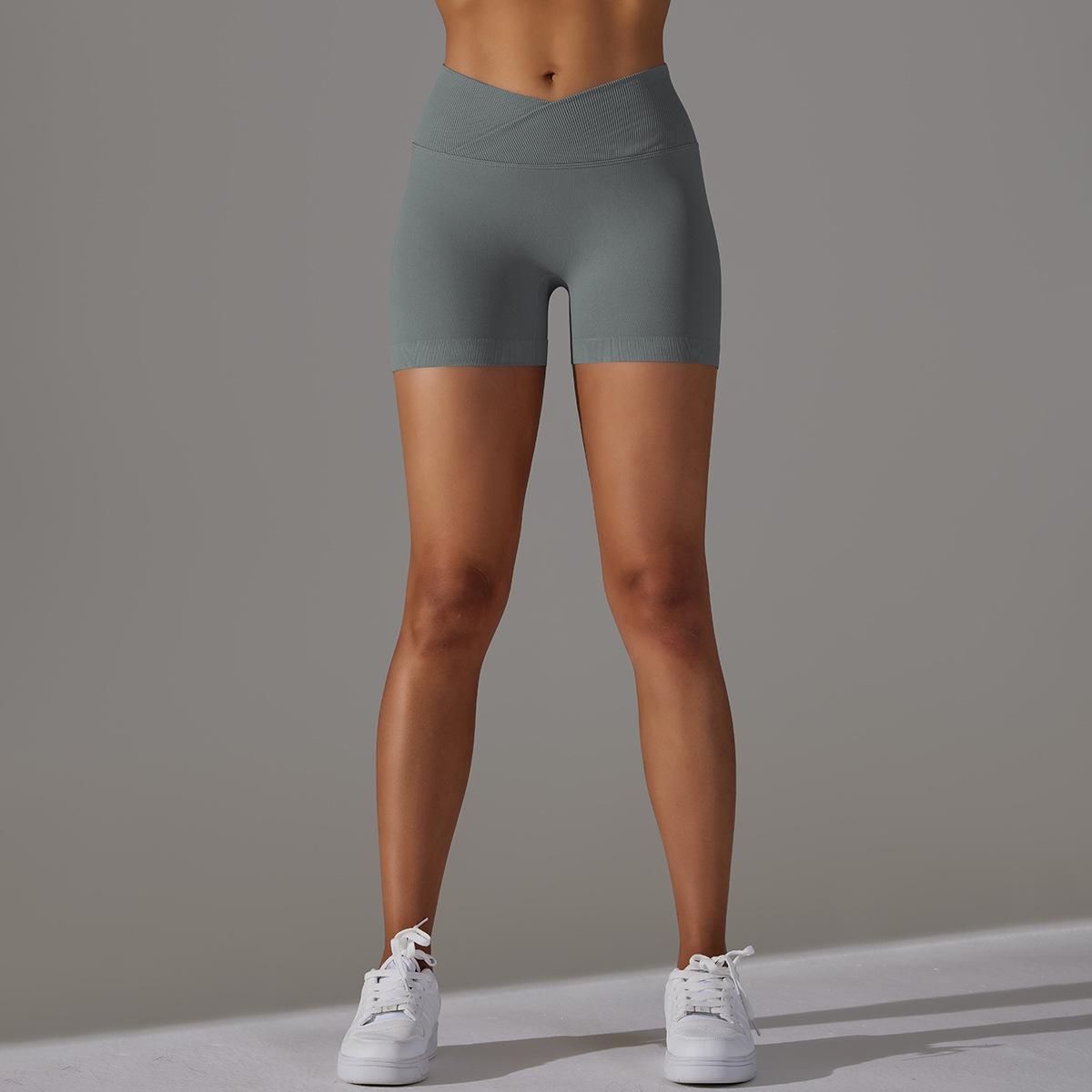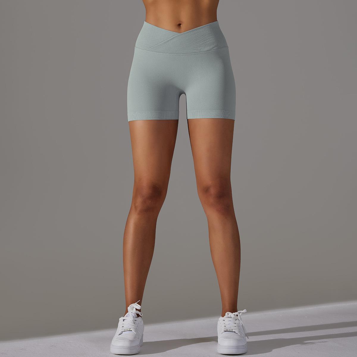 Pantalones de Fitness sin Costuras Transfronterizos Amigables con la Piel Shorts Levanta Glúteos de Cintura Cruzada Pantalones de Yoga Ajustados de Tres Puntos de Cintura Alta con Glúteos de Durazno