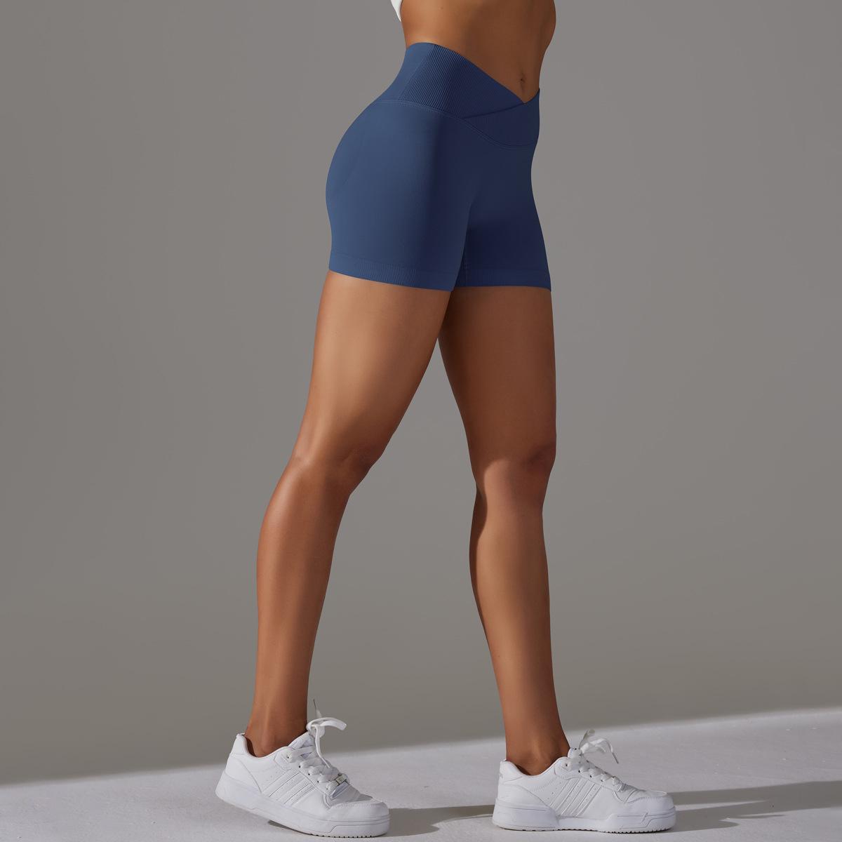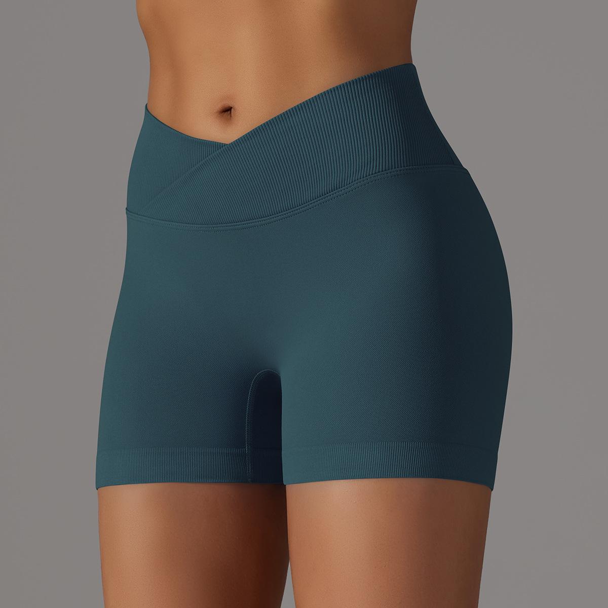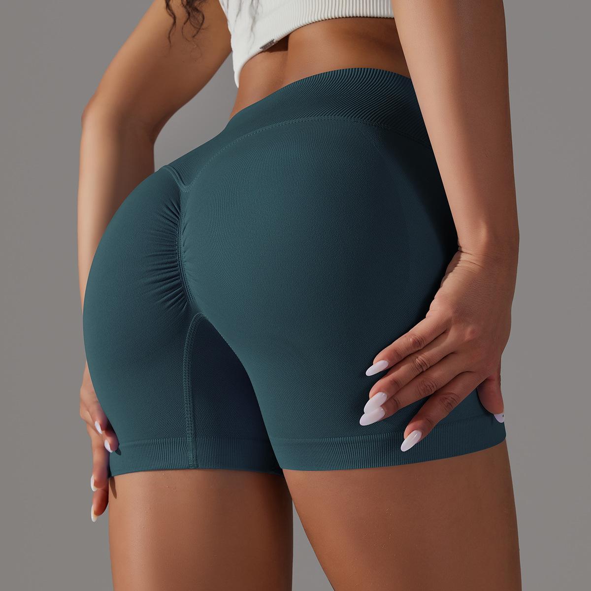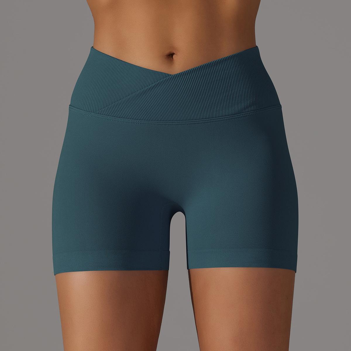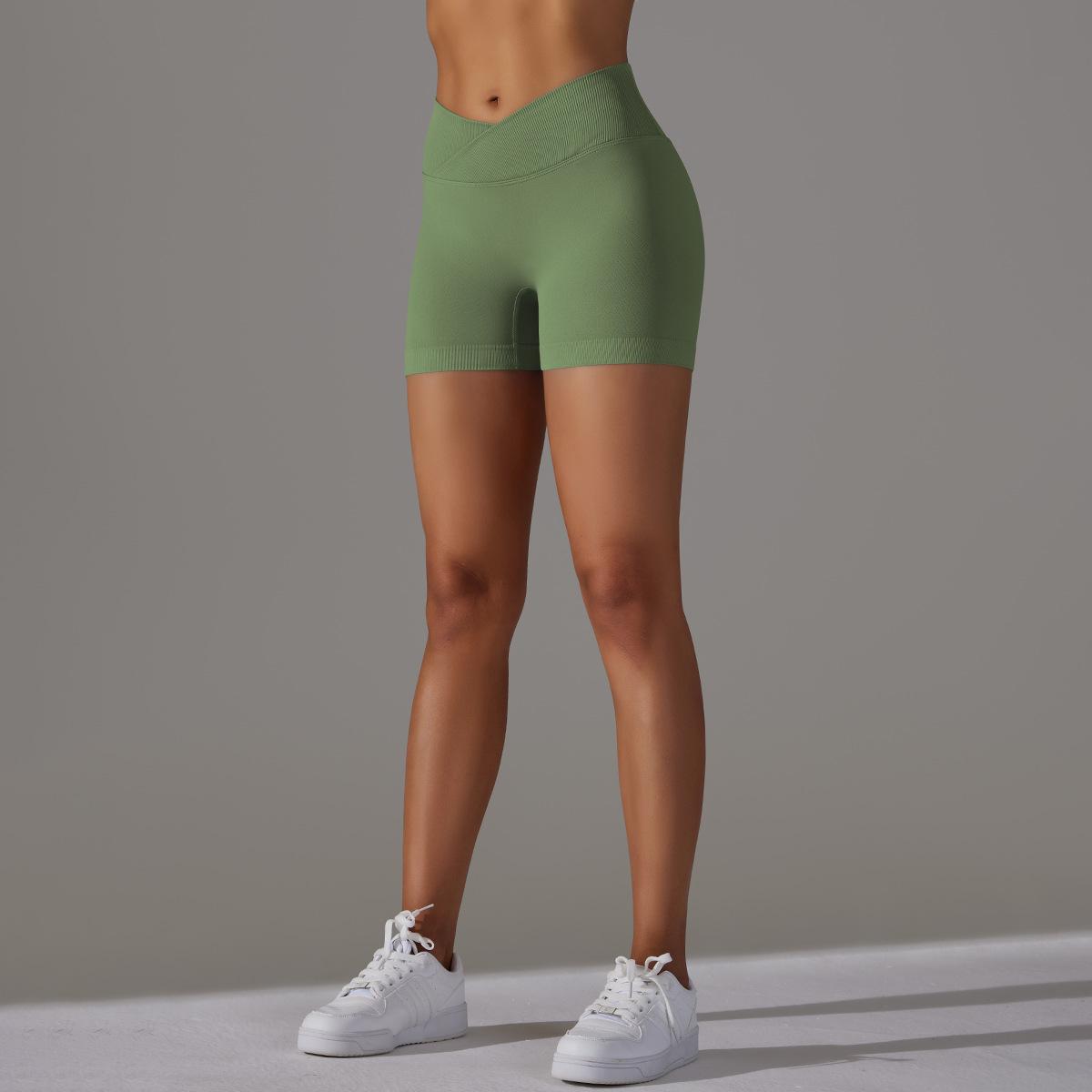 Pantalones de Fitness sin Costuras Transfronterizos Amigables con la Piel Shorts Levanta Glúteos de Cintura Cruzada Pantalones de Yoga Ajustados de Tres Puntos de Cintura Alta con Glúteos de Durazno