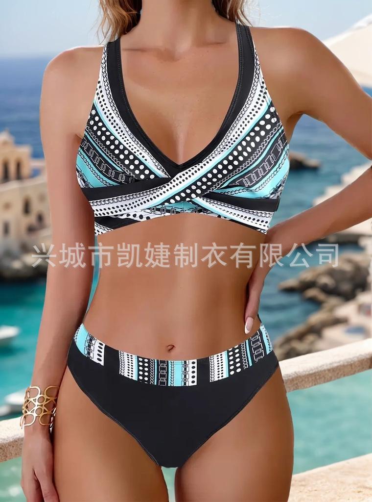 Bikini estampado multicolor para mujer, traje de baño sexy de tres piezas, novedad de 2024