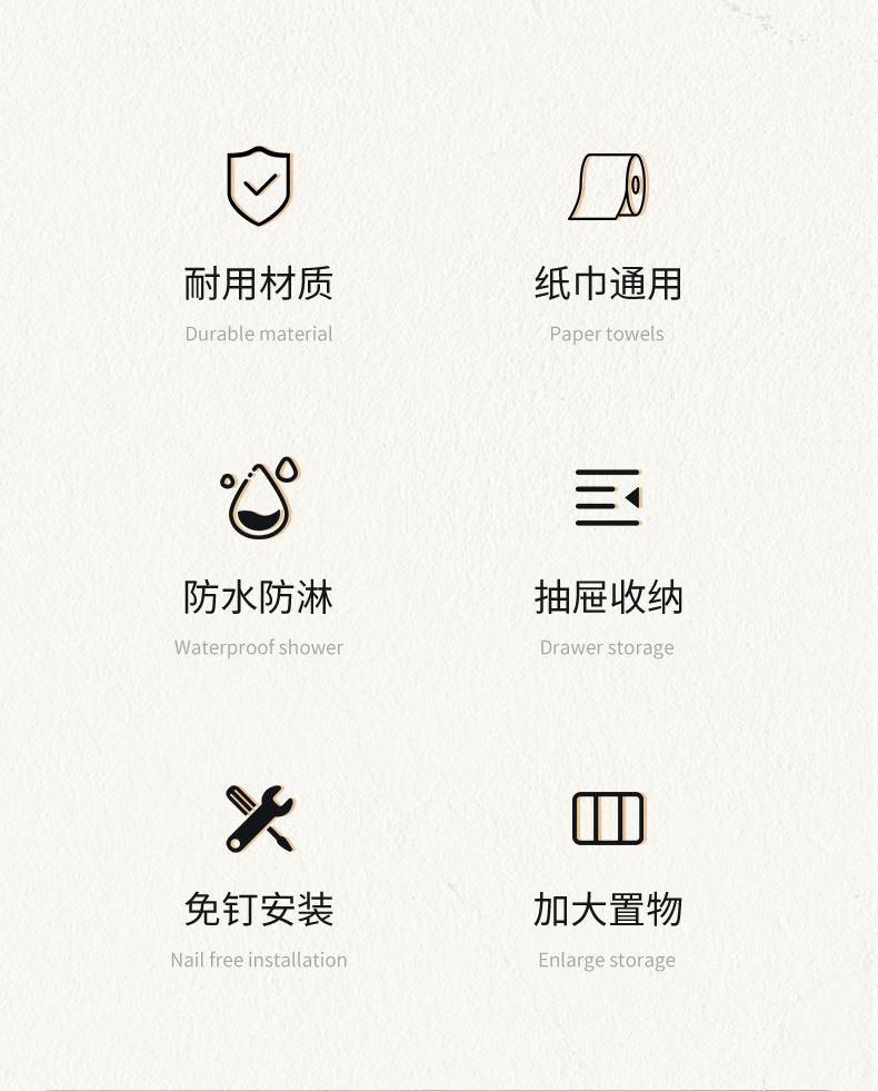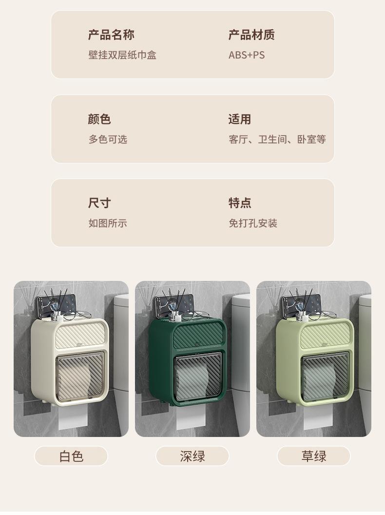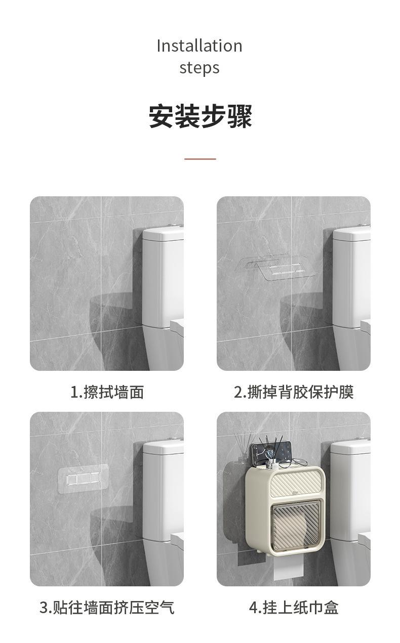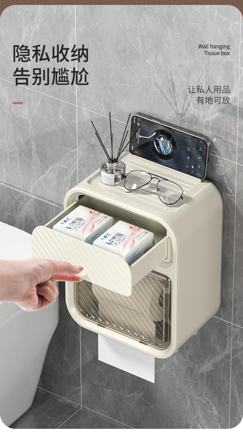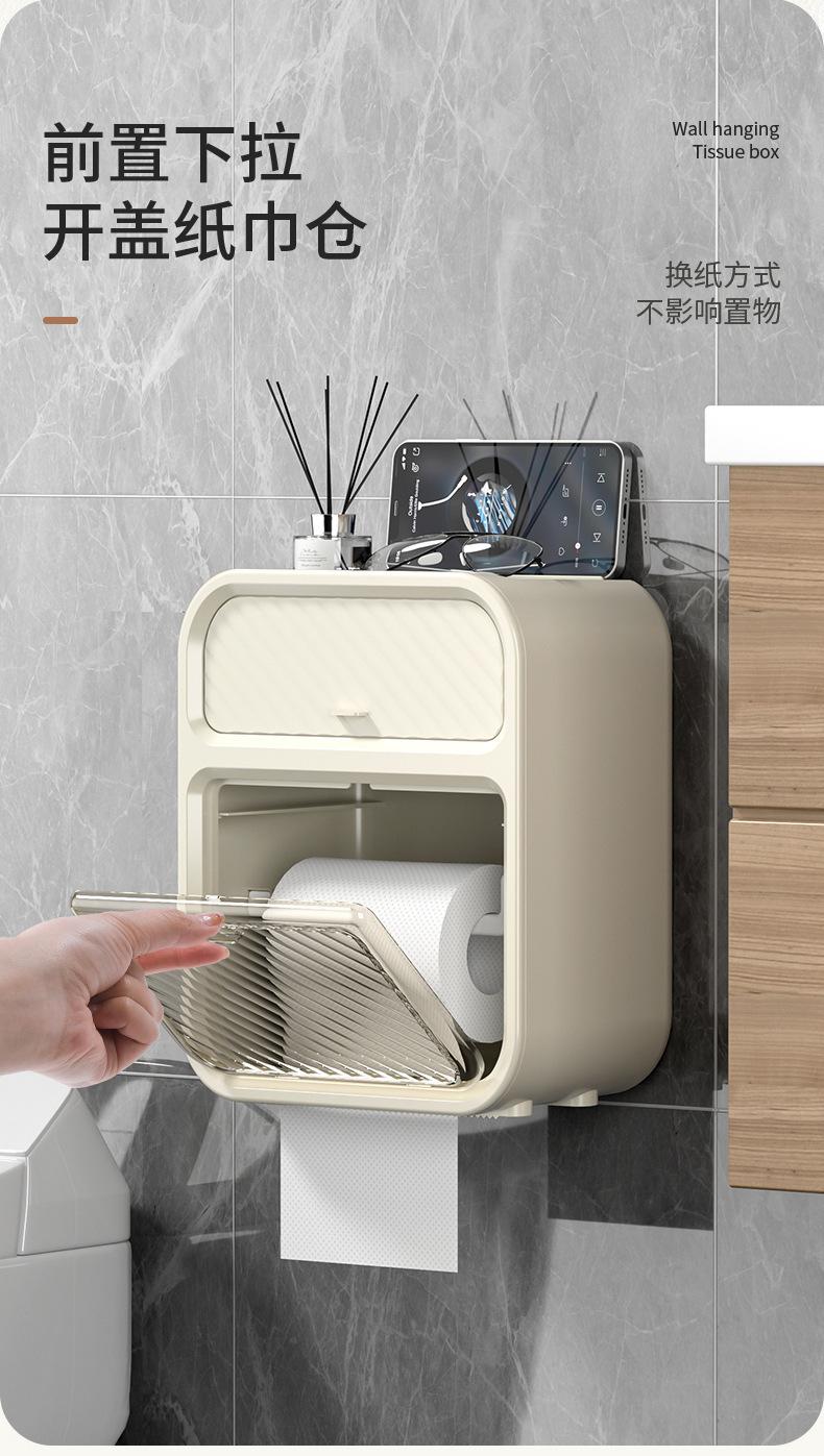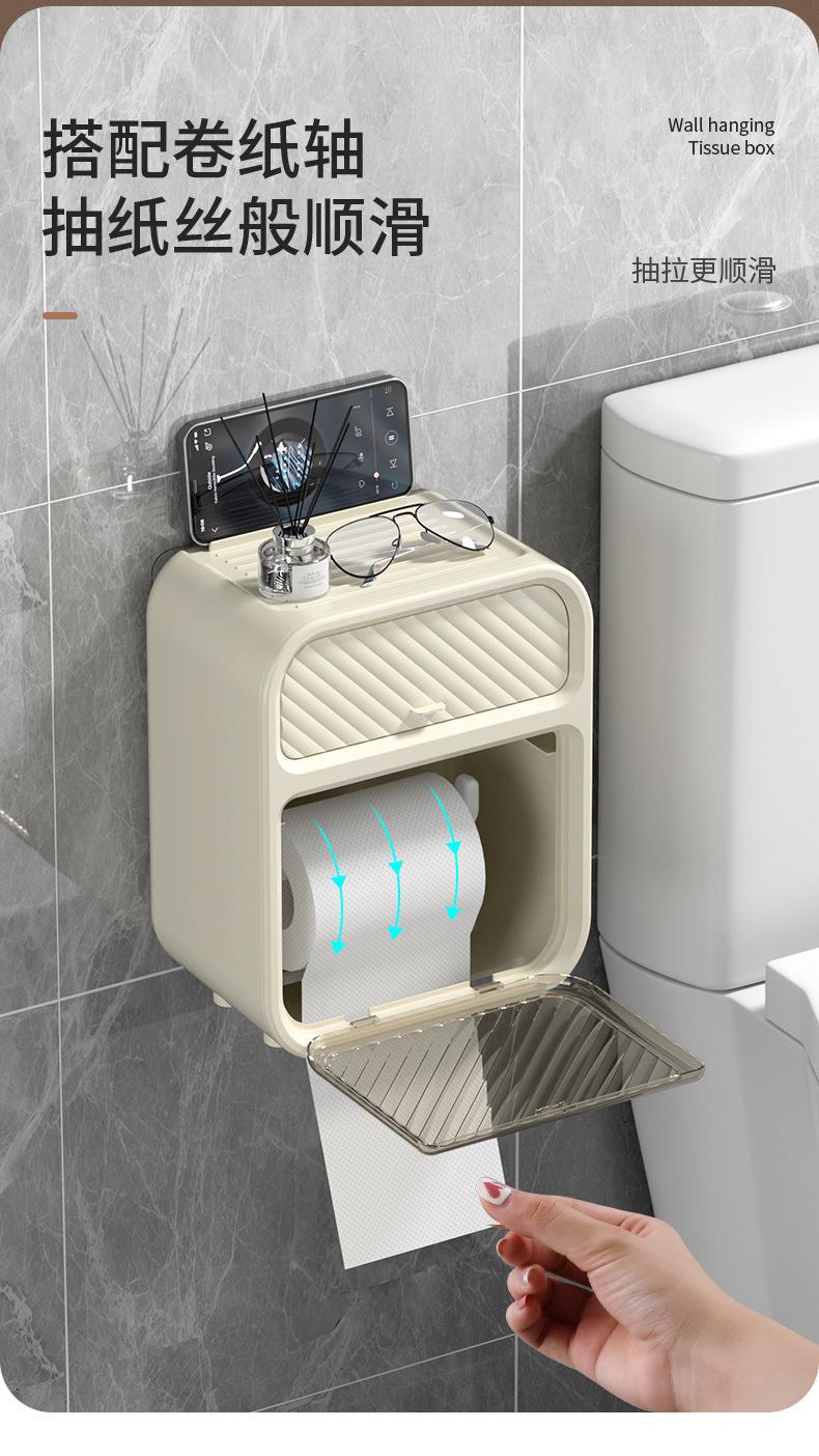 Caja de papel higiénico para pared, resistente al agua, sin perforaciones, para rollos de papel higiénico, estante para almacenamiento de papel