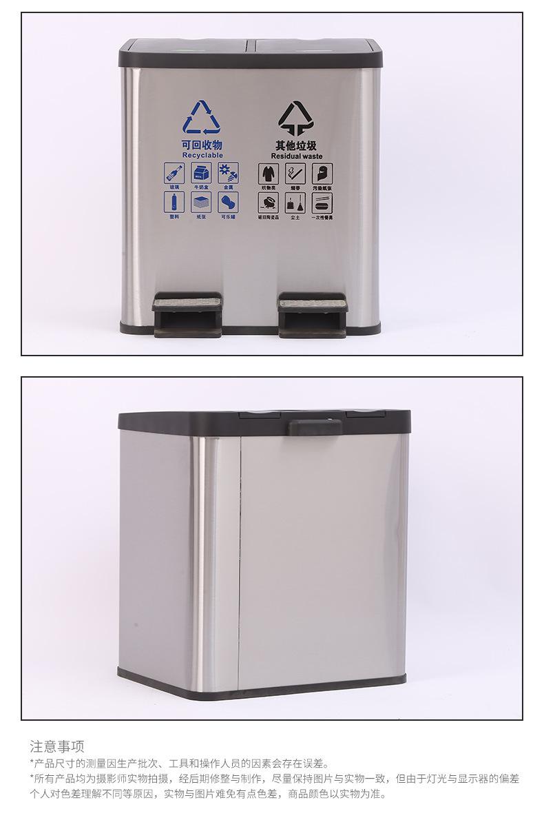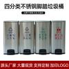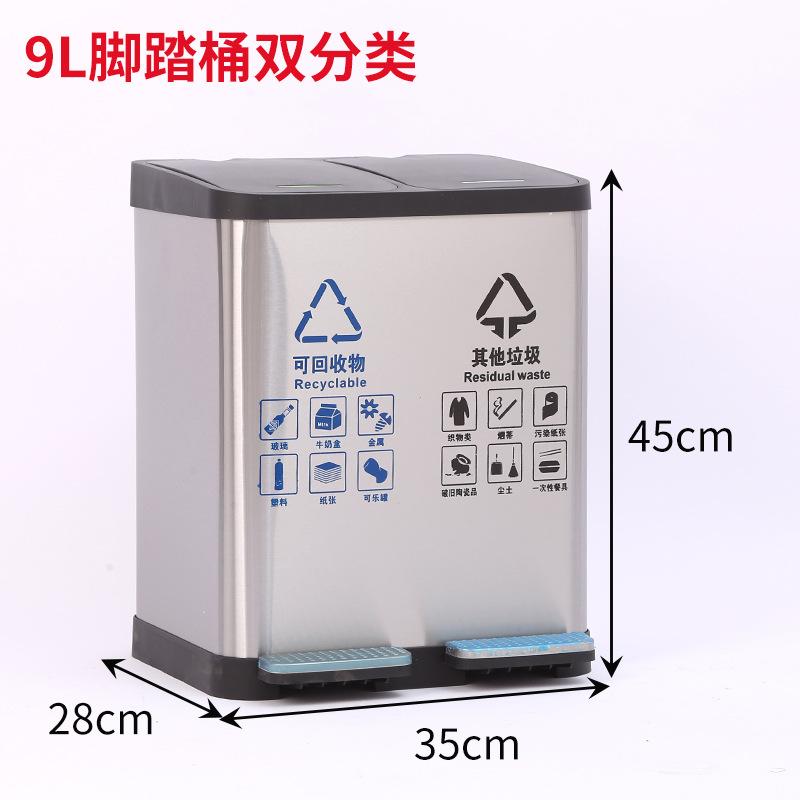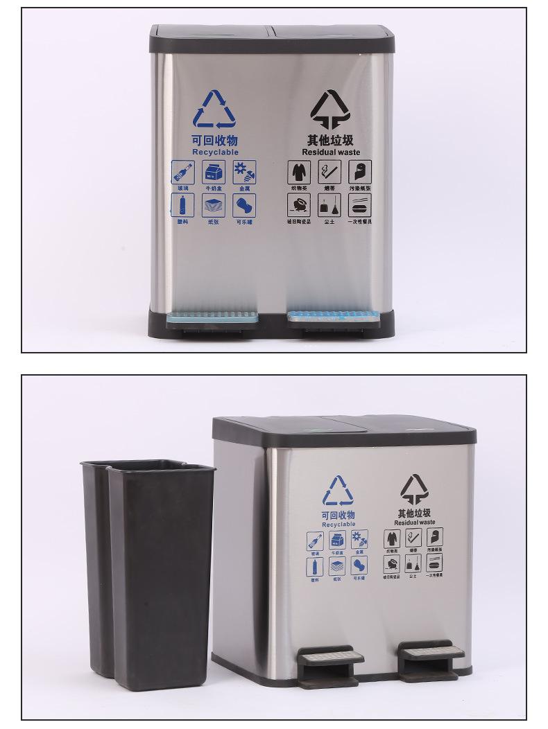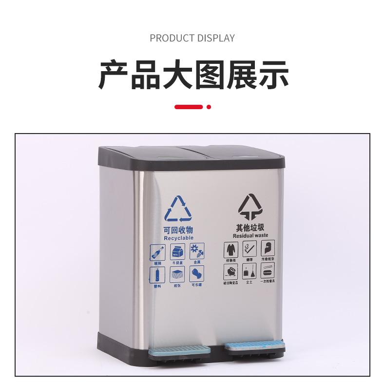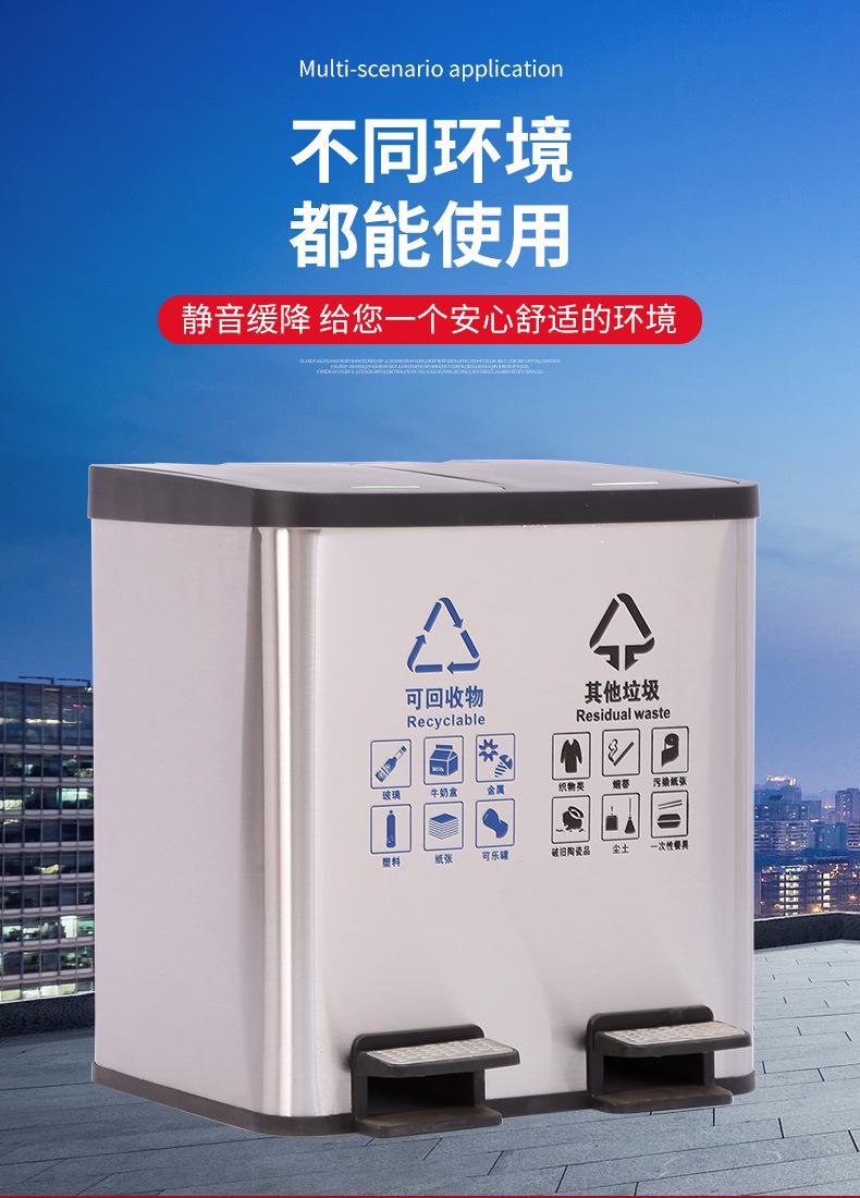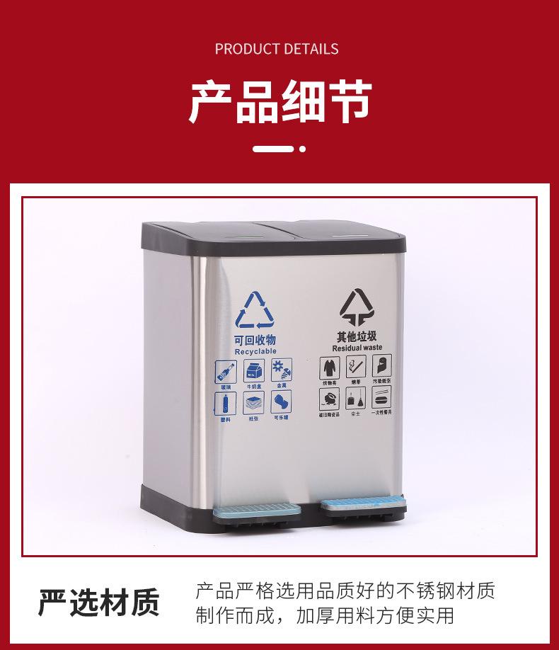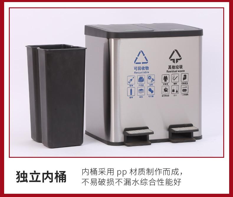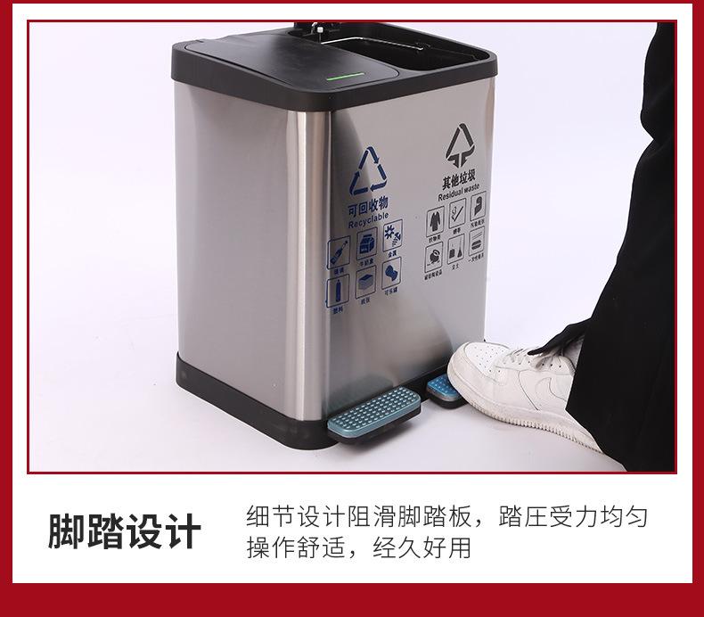 Contenedor de basura clasificado de acero inoxidable para oficinas públicas, centros comerciales, pedal grande con tapa, contenedor de basura cuadrado comercial