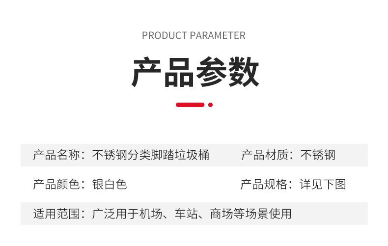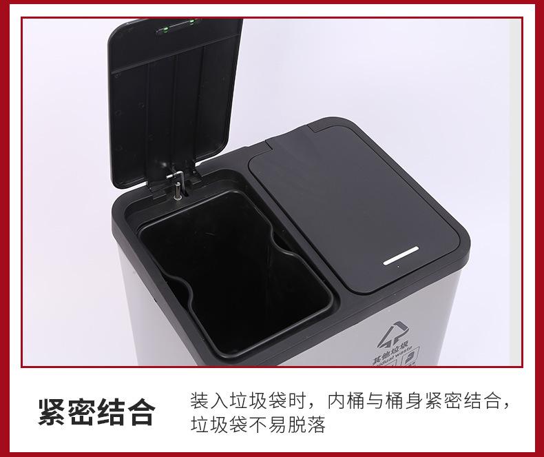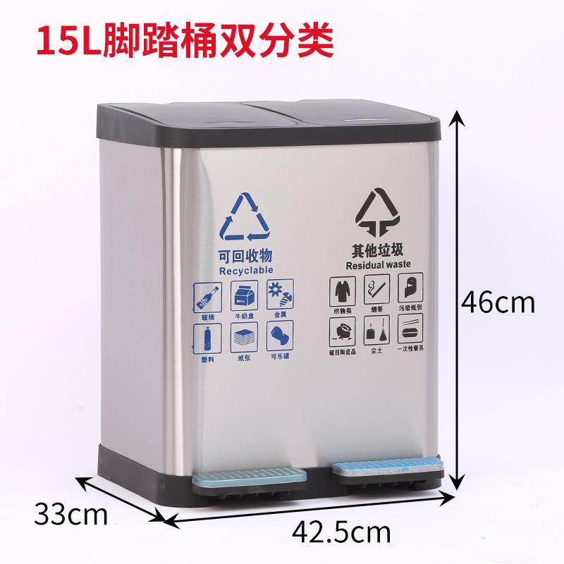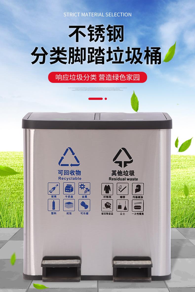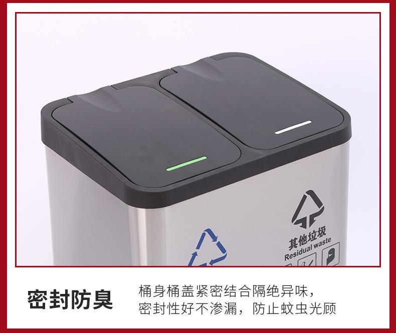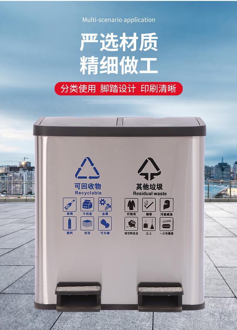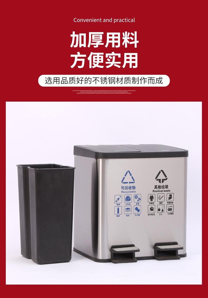 Contenedor de basura clasificado de acero inoxidable para oficinas públicas, centros comerciales, pedal grande con tapa, contenedor de basura cuadrado comercial