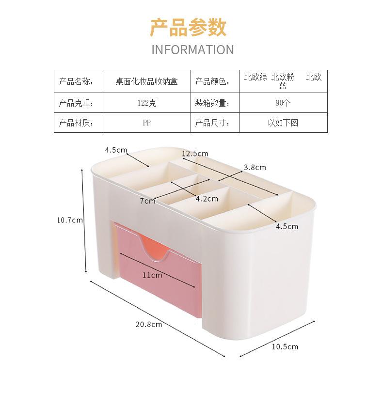 Caja de almacenamiento de cosméticos multifuncional con múltiples compartimentos y cajones, caja de almacenamiento de escritorio de gran capacidad con acabado de artículos diversos de belleza