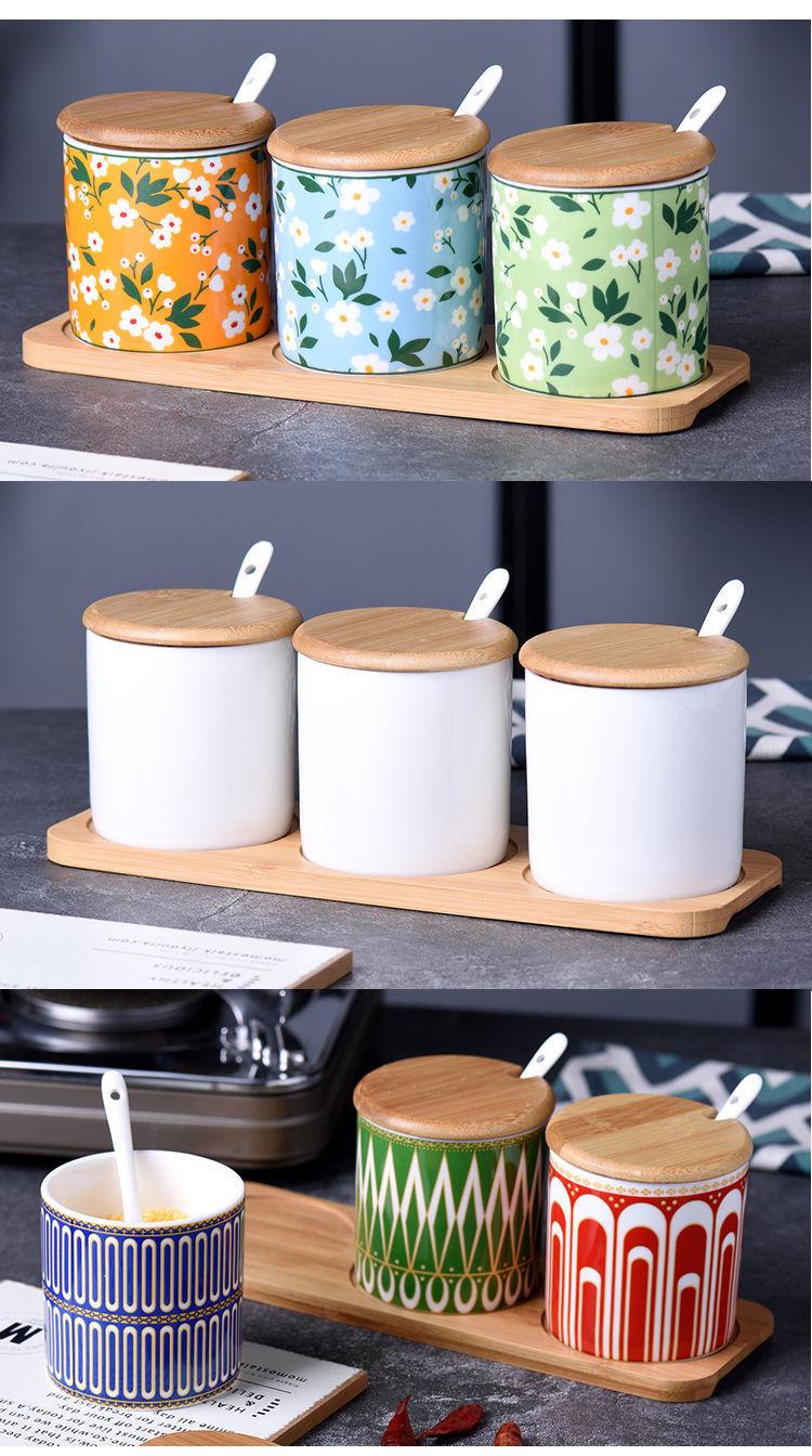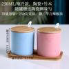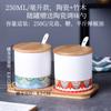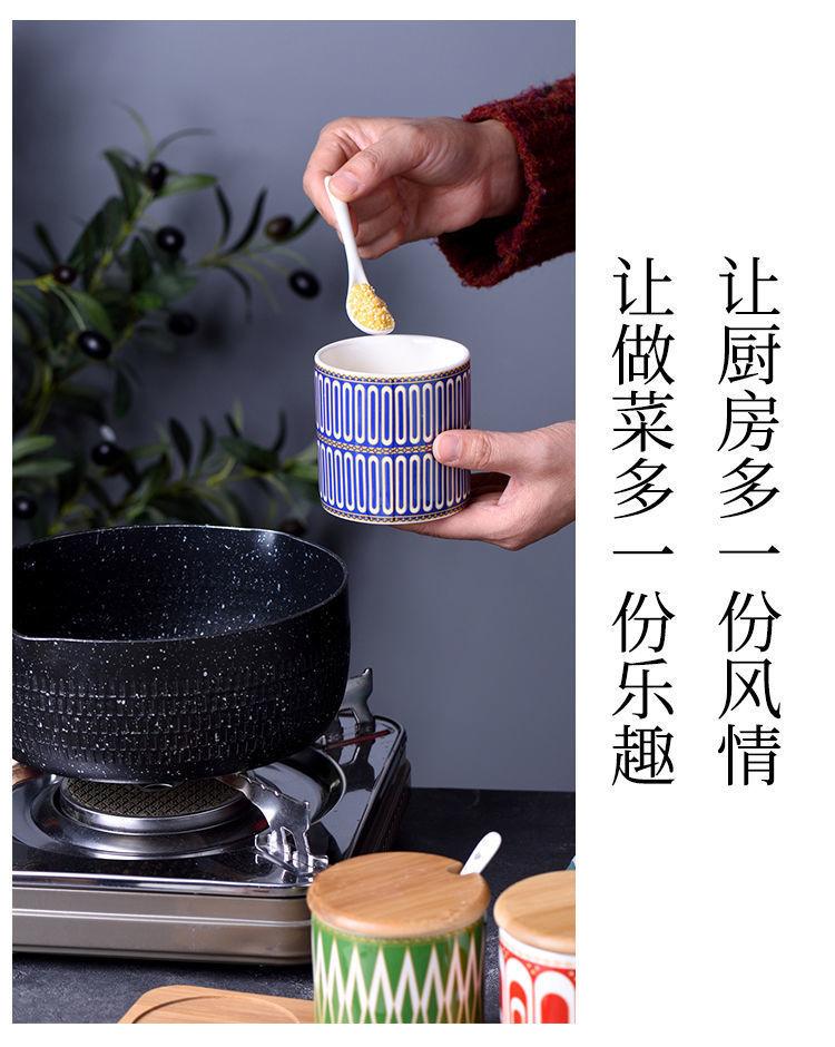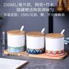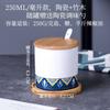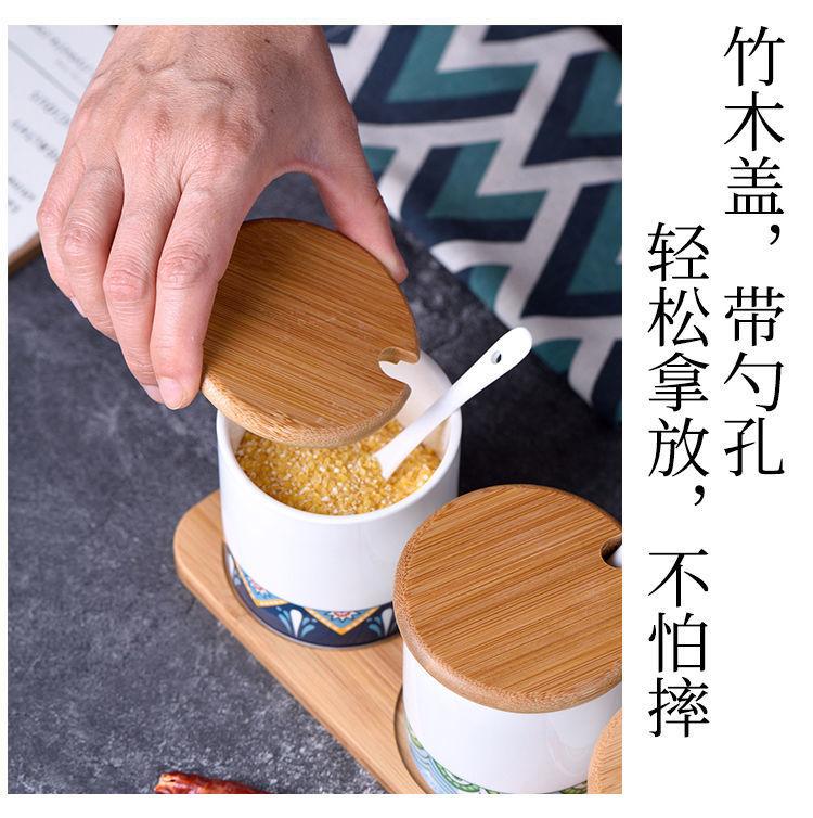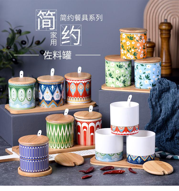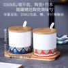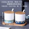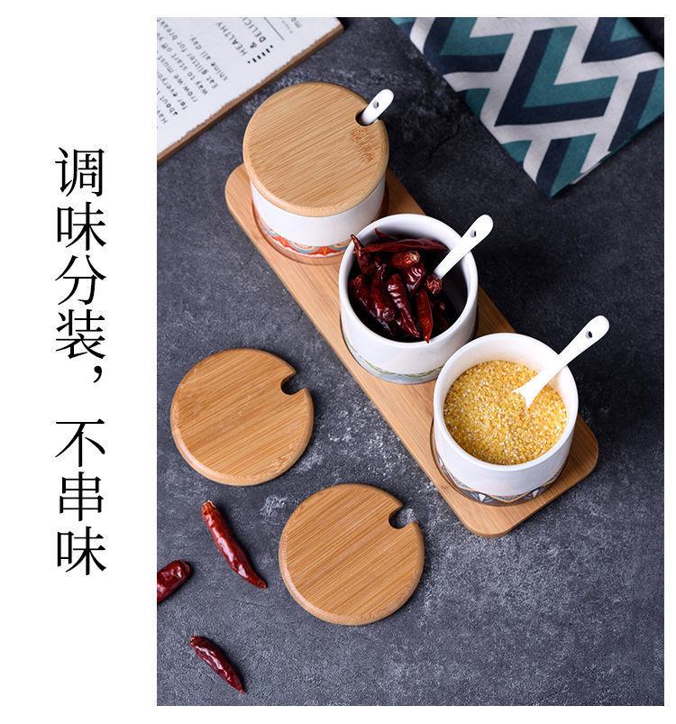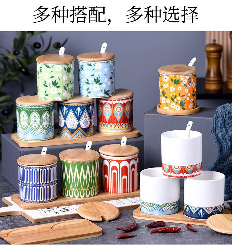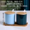 Tarro de condimento con tapa de madera de bambú de estilo étnico, para restaurante de fideos japoneses, tarro de sal, tarro de chile, tarro de azúcar, caja de condimentos de cerámica con cuchara