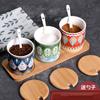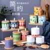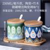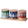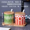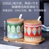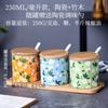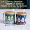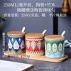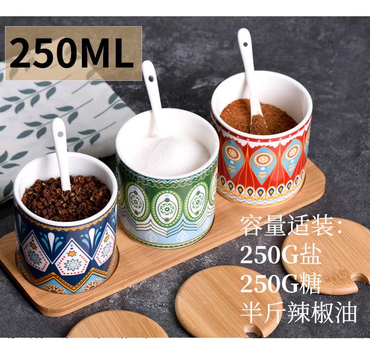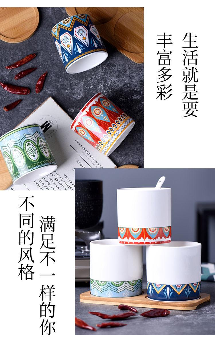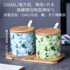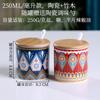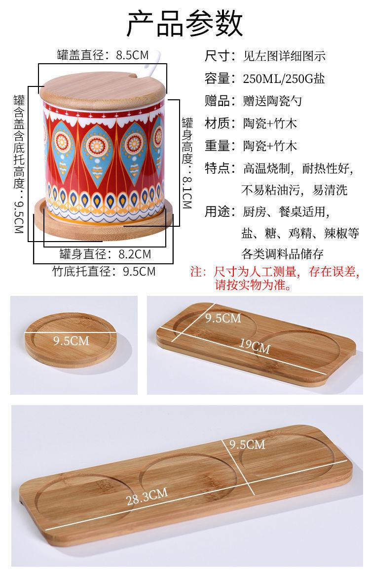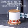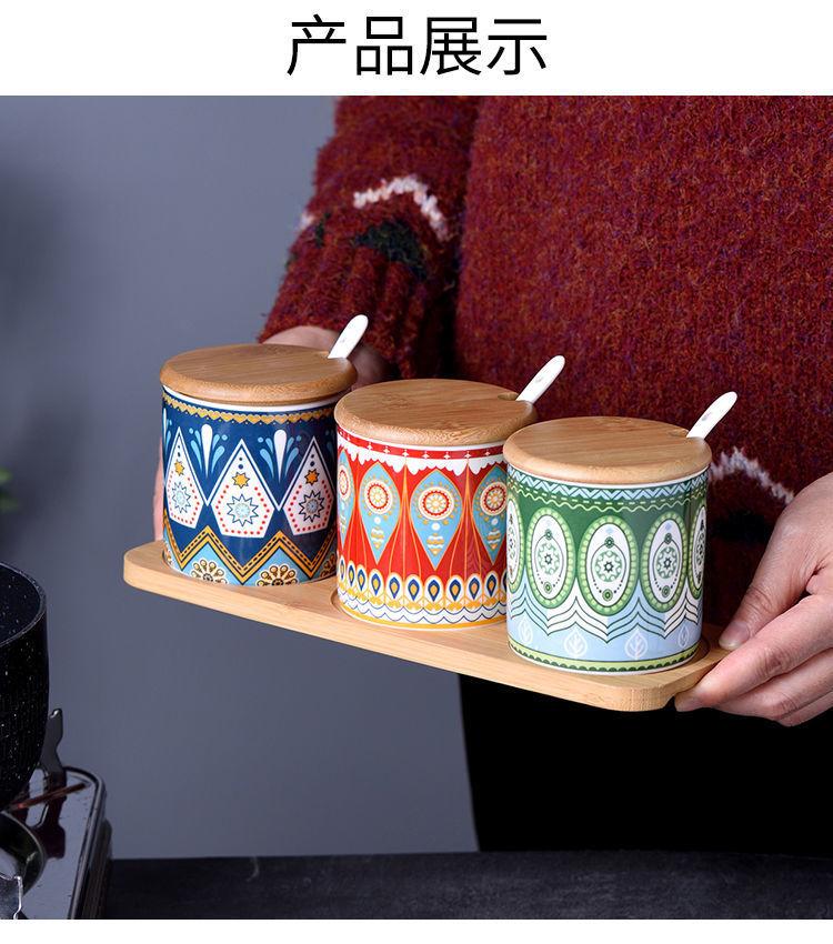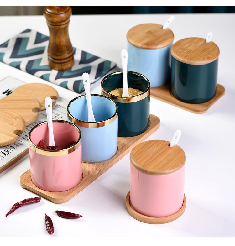 Tarro de condimento con tapa de madera de bambú de estilo étnico, para restaurante de fideos japoneses, tarro de sal, tarro de chile, tarro de azúcar, caja de condimentos de cerámica con cuchara