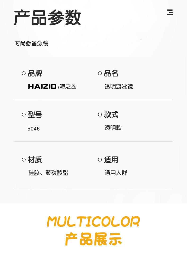 | | | Gafas de natación unisex con galvanoplastia HD, antivaho, impermeables, para carreras y buceo. | | 11,00 ¥ Vendido: 325 | | | | | | Gafas de natación para adultos transfronterizas para hombres y mujeres, gafas HD impermeables y antivaho con tapones para los oídos, gafas de natación al por mayor | | 10,00 ¥ Vendidos: 414 | | | | | | Gafas de natación para adultos con marco grande y amplio campo de visión, gafas de natación galvanizadas transparentes impermeables y antivaho para hombres y mujeres, fabricantes de gafas de natación con protección para los ojos al por mayor | | 7,50 ¥ Vendido: 3592 | |