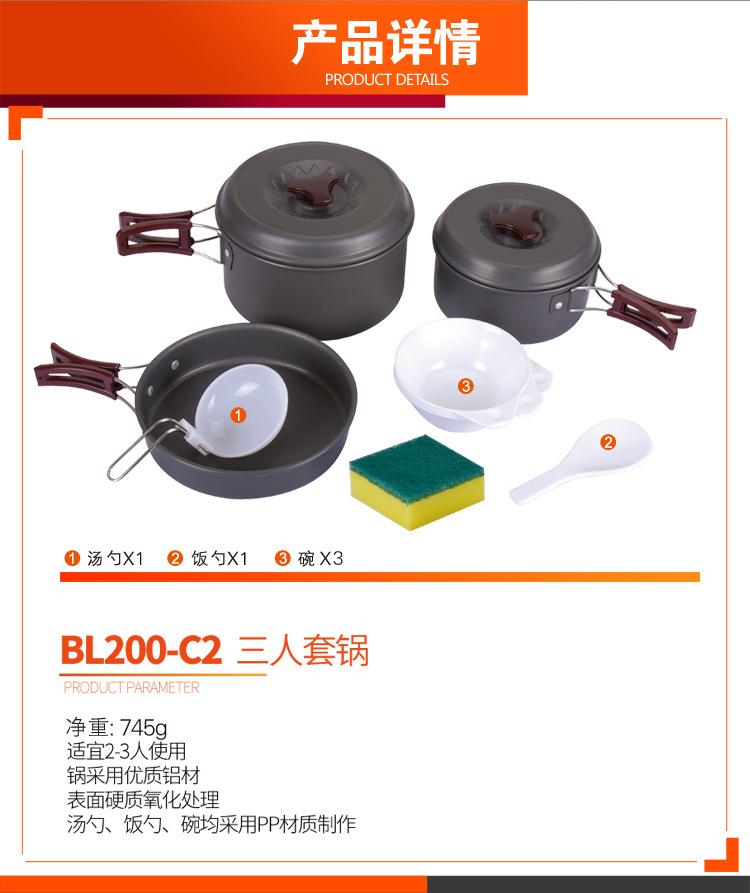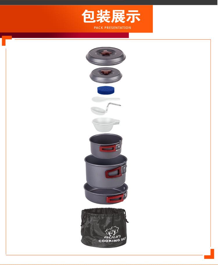 Juego de ollas para exteriores Bulin, utensilios de cocina para acampar, hervidor, estufa de cartas, equipo portátil, vajilla de campo, olla para acampar