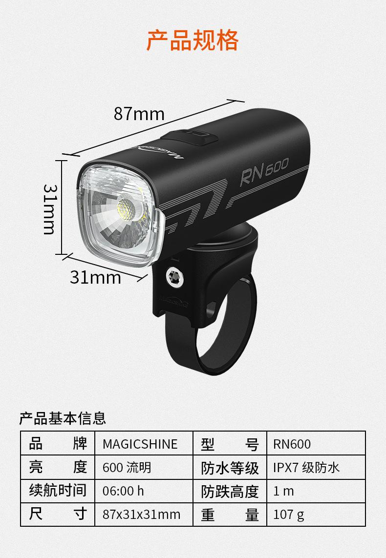 MAGICSHINE Mai Jixuan - Luz de bicicleta nocturna, linterna frontal de carga potente, linterna para bicicleta RN600